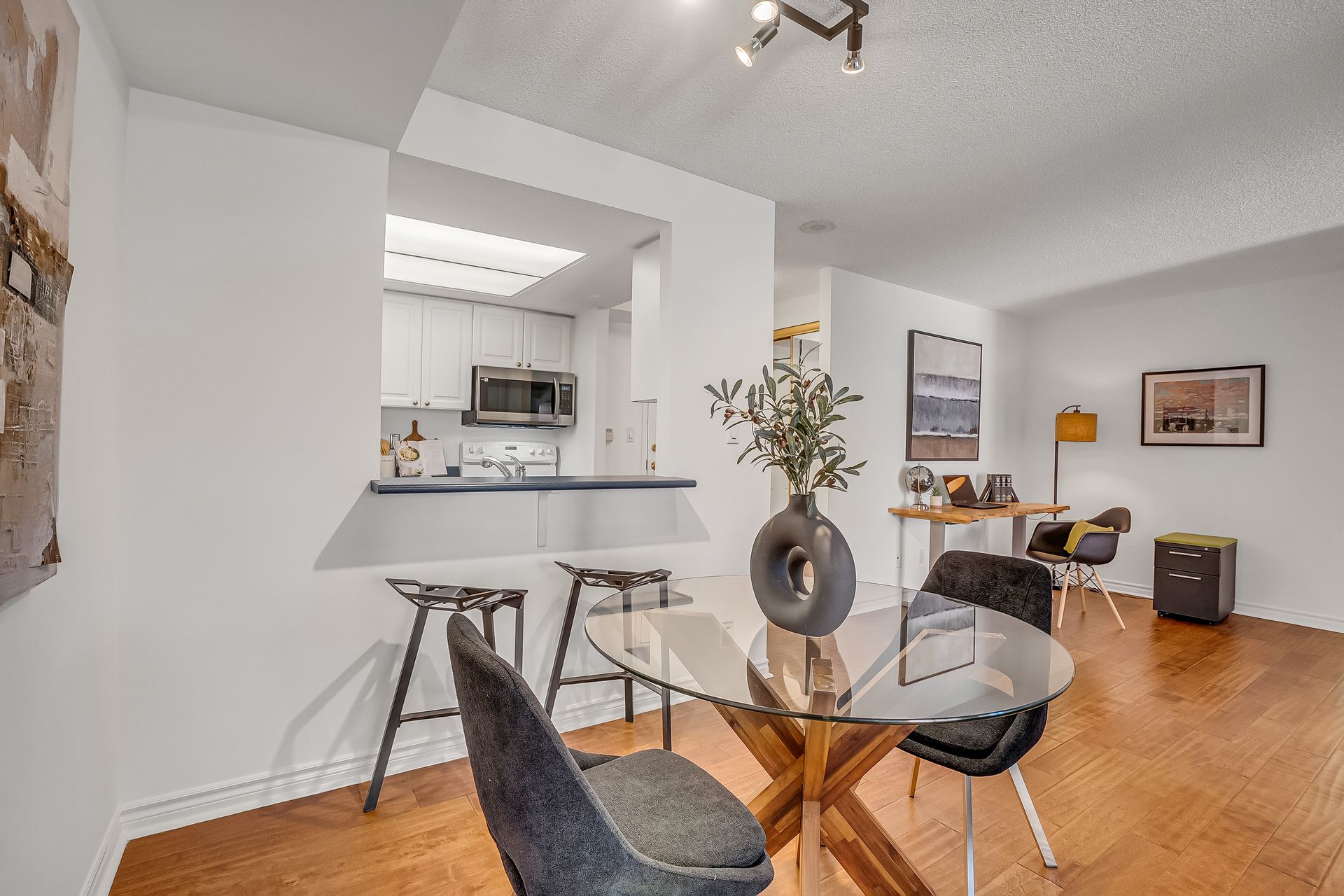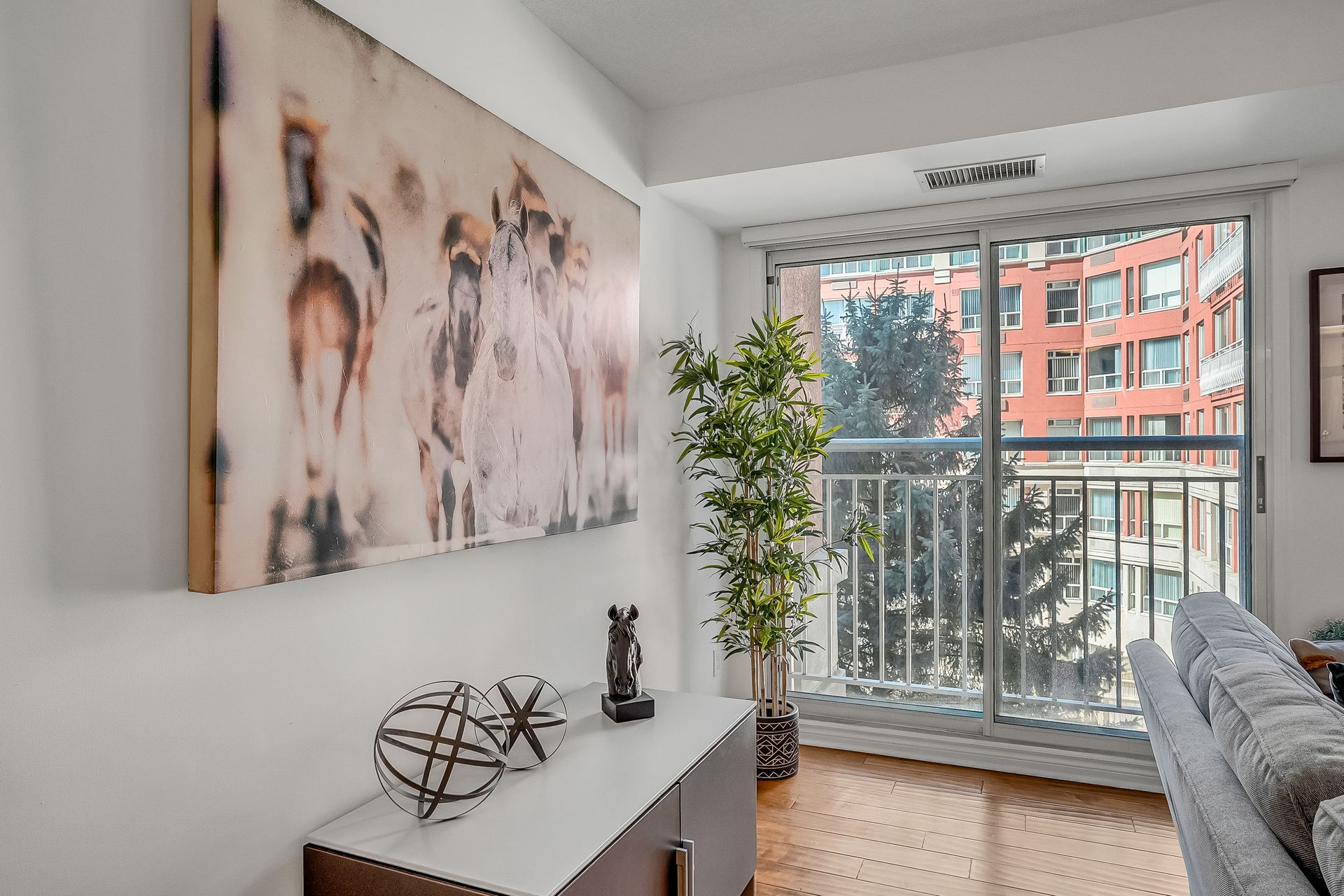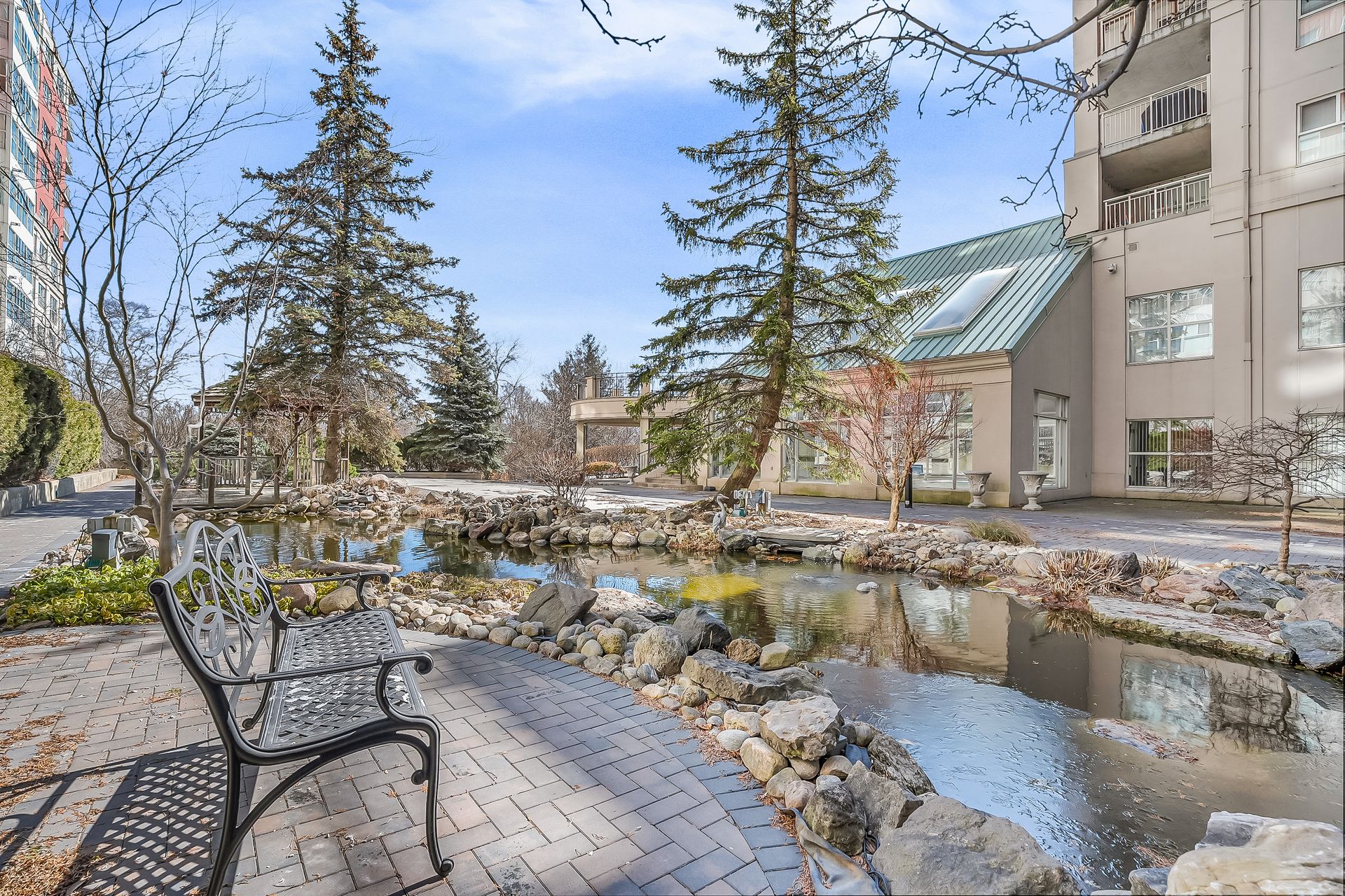 Spacious and beautifully designed oversized 1-bedroom suite offering an exceptional floor plan with a versatile open-concept office - perfect for working from home. Engineered hardwood flooring adds warmth and style, while the charming Juliette balcony overlooks a peaceful courtyard setting. Enjoy the convenience of a generously sized laundry room with extra room for storage, plus separate locker and underground parking. Outstanding value with major mechanical components - including the hot water tank and heat pumps - owned and maintained by the condo corporation, meaning no cost to owners for repair or replacement. Suites are individually metered for hydro efficiency so you only pay for what you use, and an ensuite alarm system is wired directly to 24-hour security for added peace of mind. This well-managed building offers truly resort-style amenities including an indoor saltwater pool, whirlpool, fully equipped fitness centre, billiard and card rooms, workshop, guest suite, elegant party room with full kitchen, wet bar, dance floor, gas fireplace and terrace, plus a beautiful library, tennis court, car wash bay, fenced dog run, garden plots and potting room. On-site superintendent, property manager and 24-hour uniformed concierge/security ensure comfort and convenience, while an active social committee hosts cultural events, dinners, BBQs, fitness classes, book club and movie nights. Ideally located within walking distance to groceries, coffee shops, the Aga Khan Museum and CF Shops at Don Mills, with easy access to TTC, the. LRT, future access to the Ontario Line to downtown, DVP and Highway 401, plus nearby hiking and biking trails.