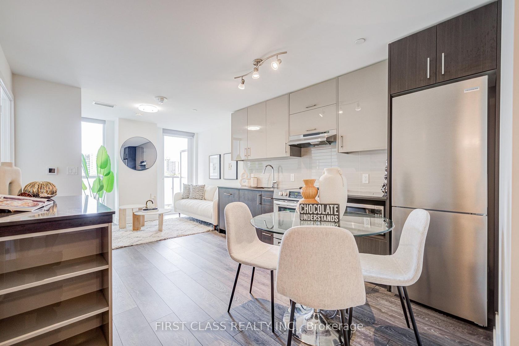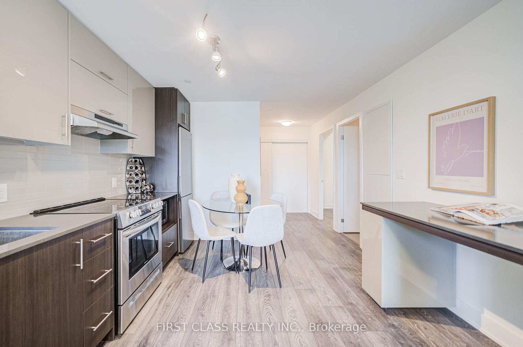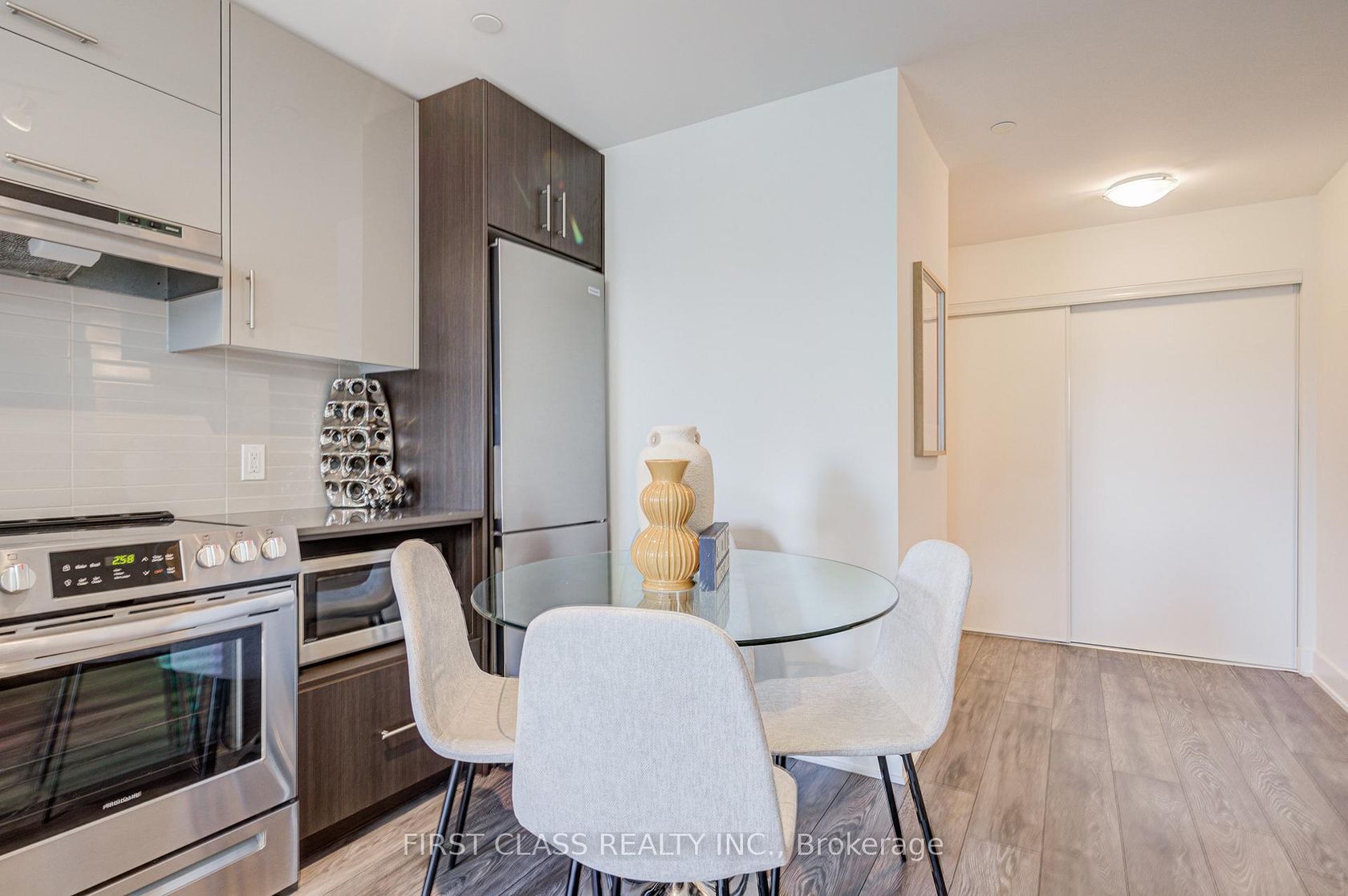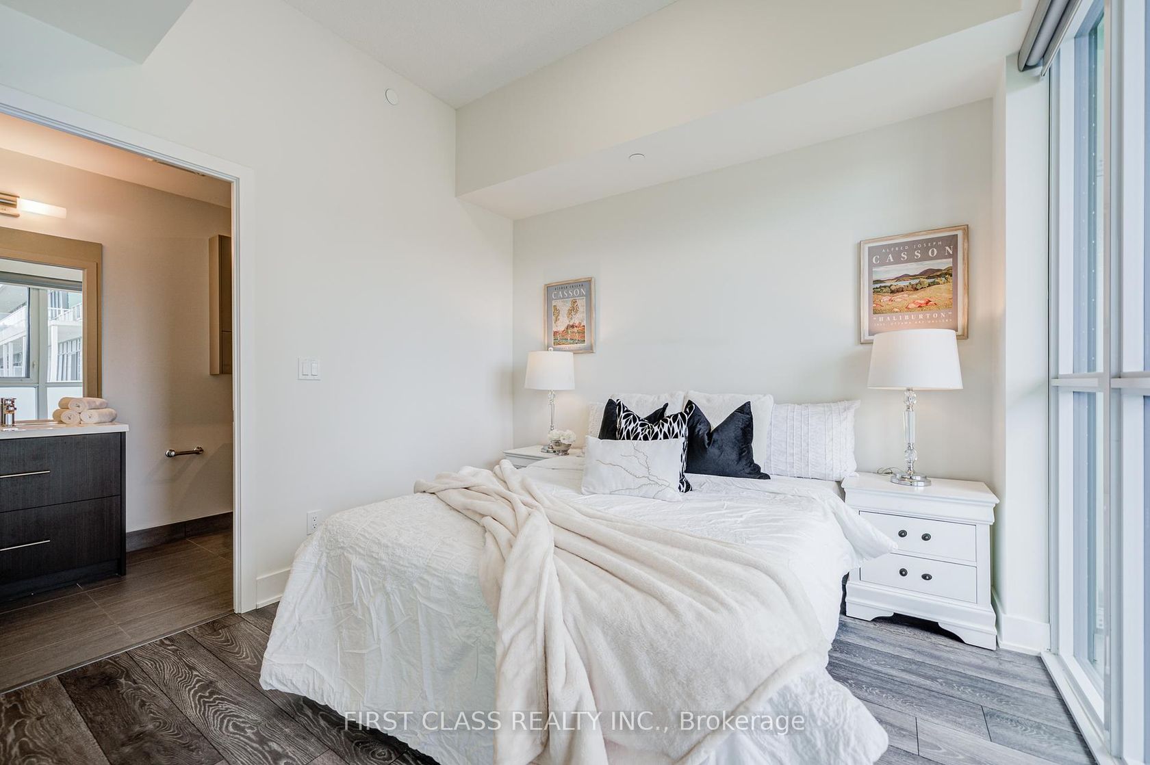 Spacious den with a regular hinged door and High Ceiling and ceiling light can easily serve as a second bedroom. Prime location just steps to T&T Supermarket, Fairview Mall, subway and bus stations, library, restaurants, Cineplex theatre, schools, and quick access to Hwy 404 & 401/DVP. A large balcony overlooking the quiet interior courtyard, offering excellent natural light. Status Certificate Ready