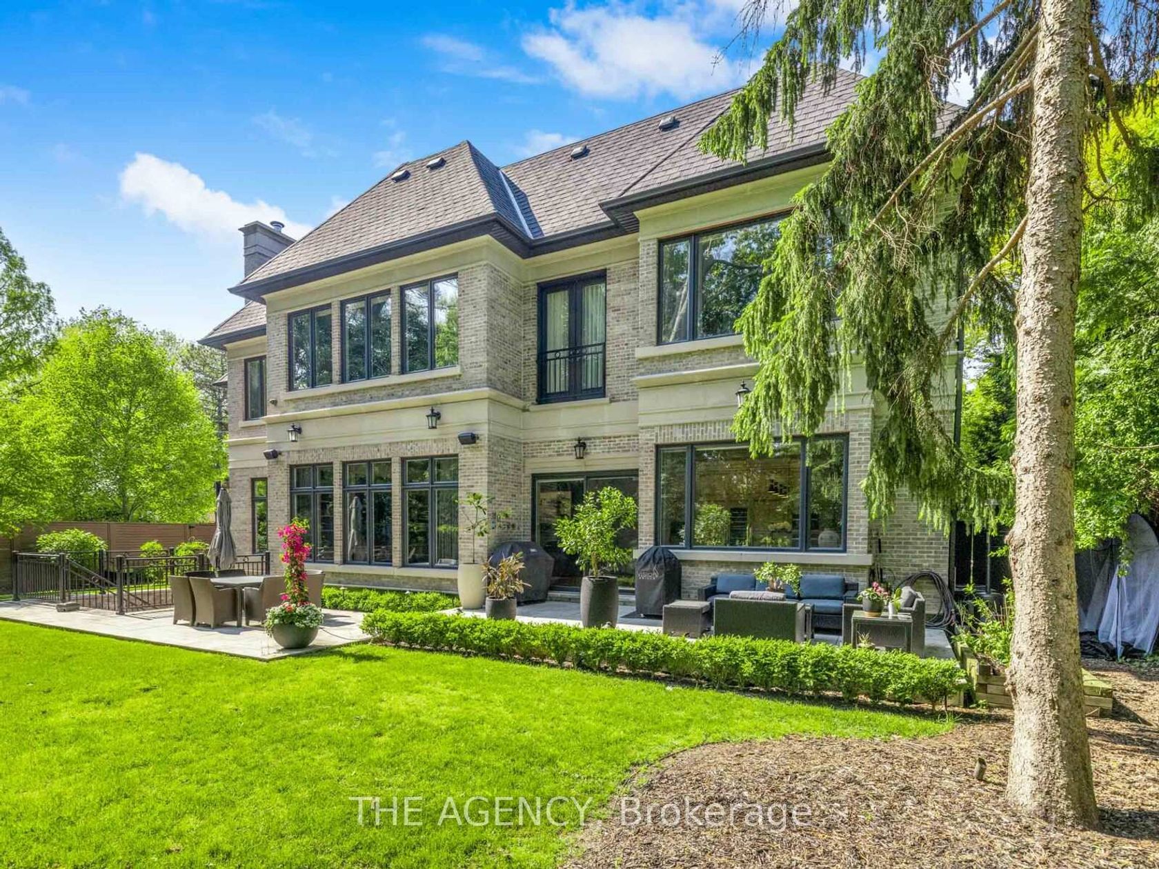Welcome to 1 Suncrest Drive, an extraordinary estate in Toronto's exclusive Bridle Path neighbourhood. This custom-built masterpiece by Keystone Group offers over 8,500 sq. ft. of luxurious living space, thoughtfully designed for elevated family living and sophisticated entertaining. Featuring 5 spacious bedrooms, including a private nanny's quarter, 2 offices, and 2 elegant powder rooms, this home offers the perfect balance of comfort and functionality. The grand 21-ft. foyer with its custom crystal mosaic skylight introduces the stunning quality of craftsmanship found throughout. Heated floors in all bathrooms and the entire basement provide year-round comfort. The gourmet kitchen, designed for the discerning chef, includes a La Cornue gas range, Calacatta marble countertops, a walk-in pantry, and a wine fridge, ensuring its perfect for both intimate dinners and grand celebrations. The open-concept living area is enhanced by a built-in sound system and a gas fire pit, creating the ideal environment for entertaining. The expansive 2,630 sq. ft. luxury basement retreat is a true highlight, featuring a wet bar, home theatre, indoor pool with jet system, sauna, and wood-burning firepit. With a walk-up to the beautifully landscaped grounds, this space is designed for both relaxation and entertainment. The professionally landscaped grounds offer mature trees and direct access to Sunnybrook Park, providing a serene oasis. The heated driveway and pathways ensure comfort year-round, while the 3-car garage and additional parking for 5 vehicles offer ample space for guests. With a Cambridge elevator serving all three levels, state-of-the-art security systems, and unparalleled amenities, 1 Suncrest Drive sets the standard for luxury living in one of Toronto's most prestigious communities.