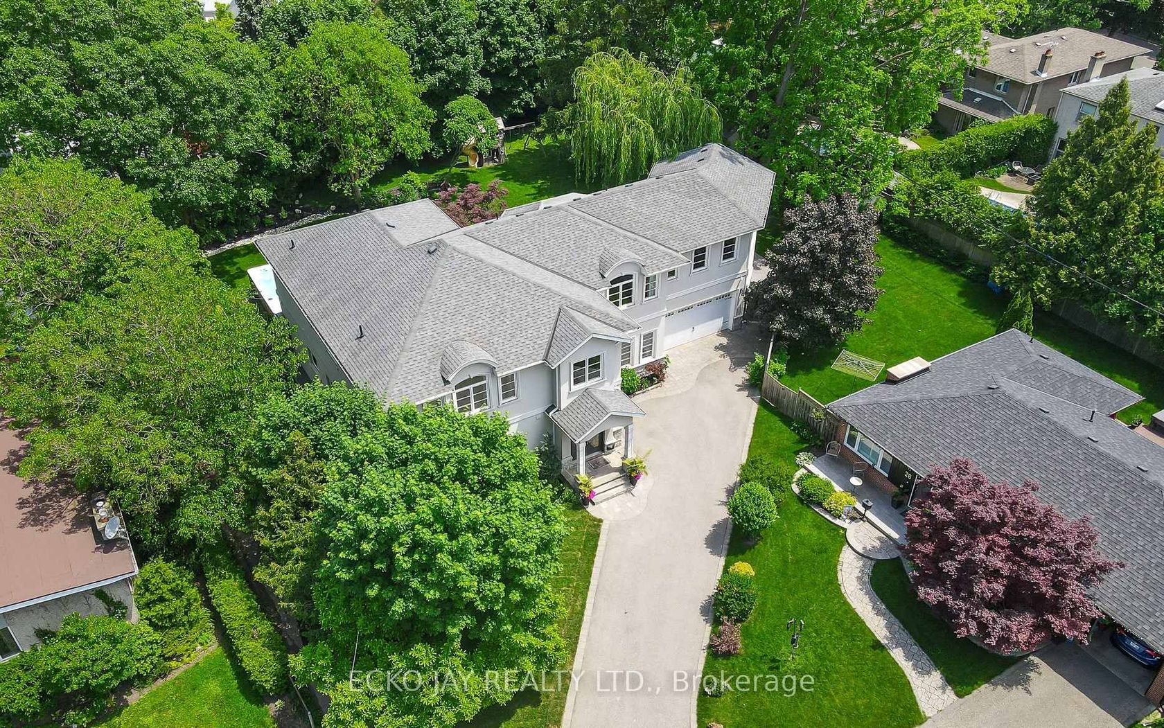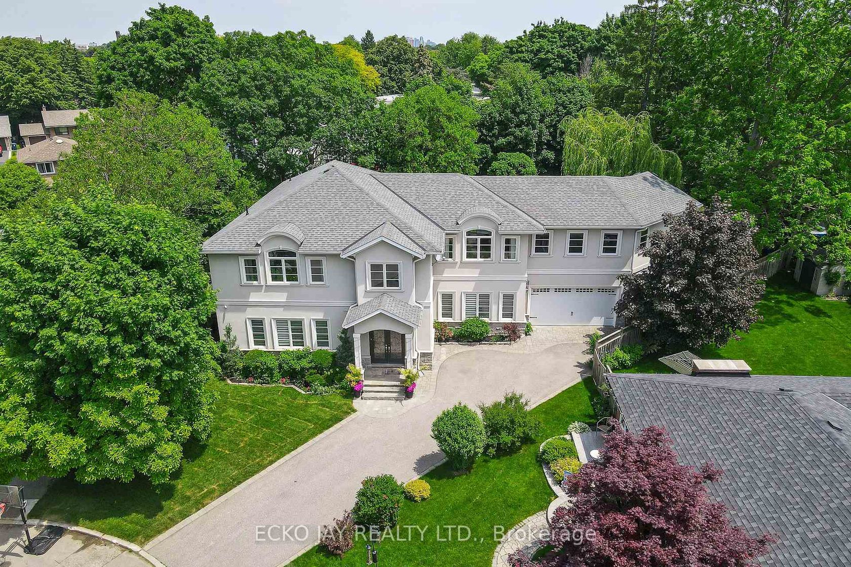 One of Don Mills' larger lots. Just Under 1/2 Acre. Edwards Gardens Park like setting. This rarely available, custom-designed, elegant, executive residence is situated on a premium, private, 18,068 sq. ft. lot within the exclusive Parkwoods-Donalda neighborhood. Nestled at the end of a tranquil cul-de-sac, this stunning two-storey home offers an expansive backyard that resembles a picturesque park, spanning almost half an acre. Custom built in 2013, this exquisite home features an inviting open-concept design, flooding every room with natural light highlighting the beautiful 8 inch White Oak hardwood floors. The exterior blends stone and stucco, complemented by charming Juliette balconies. Inside, you will find over 5,000 square feet of luxurious living space plus lower level and an open-to-above foyer and family room. Adjustable lighting and a built-in entertainment system enhance the ambiance for any mood or occasion. This residence boasts 5 spacious bedrooms, each with ample walk-in closets, and 6 bathrooms, ensuring comfort and elegance in every corner. The gourmet kitchen, complete with a gas stove, granite countertops, and a sizable island, is perfect for culinary enthusiasts. A large wall of windows on the back in kitchen/family room overlooks the gorgeous backyard. Your personal oasis awaits on this incredible lot, offering limitless possibilities for outdoor adventures and entertainment. Extras include a 19-foot Hydropool Aquasport Swim Spa built into a custom composite deck and a 3-car tandem garage. Conveniently located near all amenities and major highways (401, DVP, 404), this home offers easy access to the Donalda Golf Course, Brookbanks Park Trail, public, private, and French Immersion schools, as well as the bustling shops and restaurants of Don Mills. This property is truly a must-see!