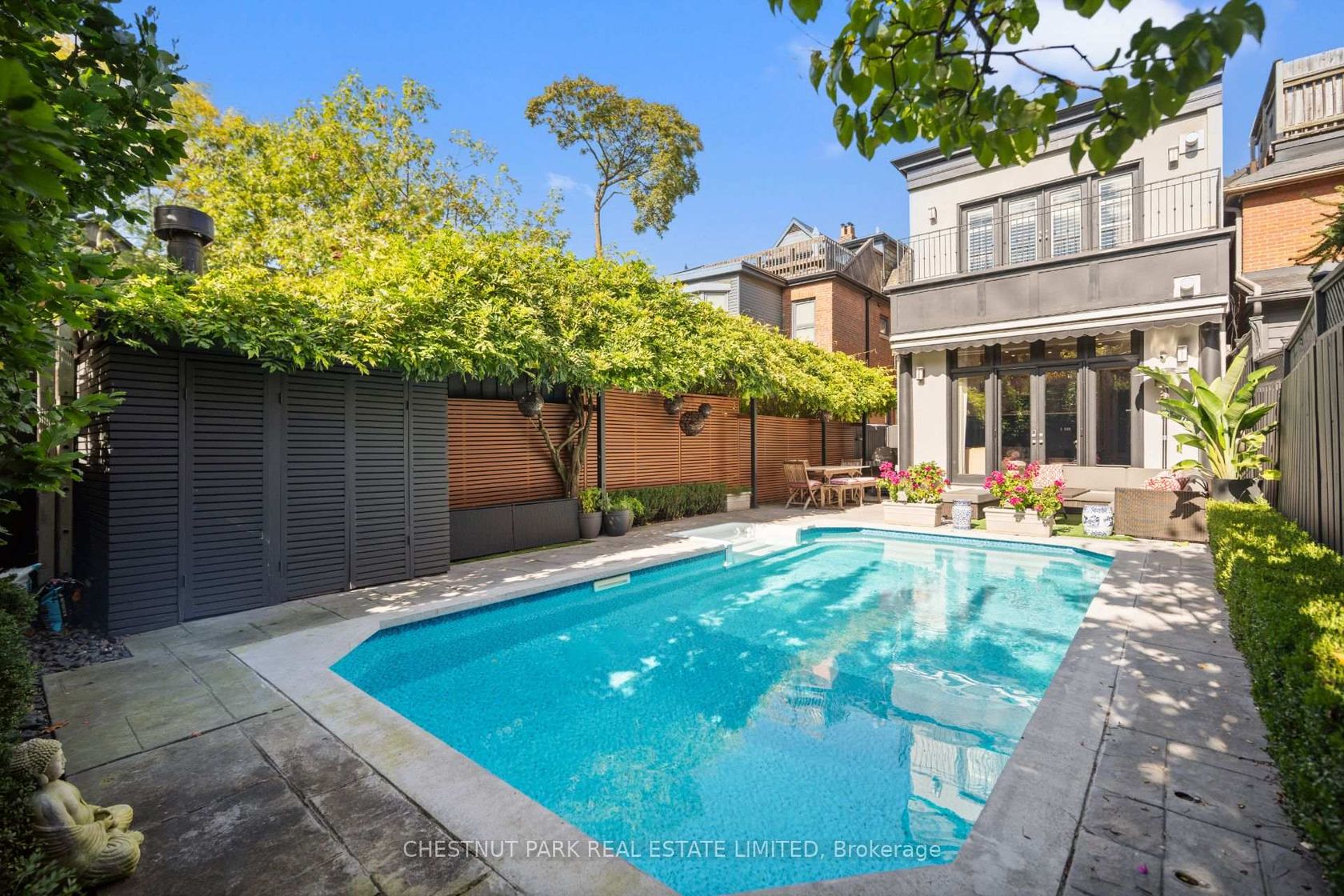 Welcome to 47 Bernard Avenue, a fully renovated detached home perfectly positioned on a quiet, tree-lined street in Yorkville. Designed and reimagined by Richard Wengle, this property combines urban convenience with private amenities, including a gorgeous swimming pool, dedicated parking, and spacious modern interior. Inside, the elegant main floor has large formal rooms and 11' ceiling heights, creating an airy and sophisticated atmosphere. The heart of the home is the expansive kitchen and family room. The kitchen is equipped with marble countertops, high-end appliances, and a large central island, opening directly into the family area, which boasts a fireplace, extensive built-ins, 14' ceiling heights, and access to the backyard. Upstairs, the primary bedroom is a standout feature due to its exceptional size. It includes a private balcony, a generous walk-in closet, and a well-appointed five-piece ensuite bathroom. Three additional bedrooms and a modern bathrooms provide ample space for family or guests or home office. The finished lower level offers a versatile recreation room and significant storage space. Outside, the backyard serves as a private retreat, featuring a swimming pool and professional landscaping, perfect for relaxation and entertaining. With the best that Yorkville has to offer, known for its world-class shopping, fine dining, and vibrant cultural scene, all just a short walk from your door. This home presents a rare opportunity to enjoy a turn-key property in one of Toronto's most sought-after locations.