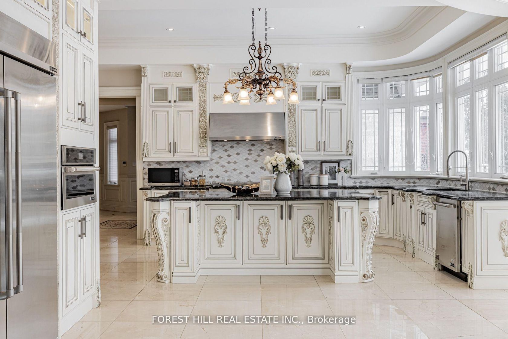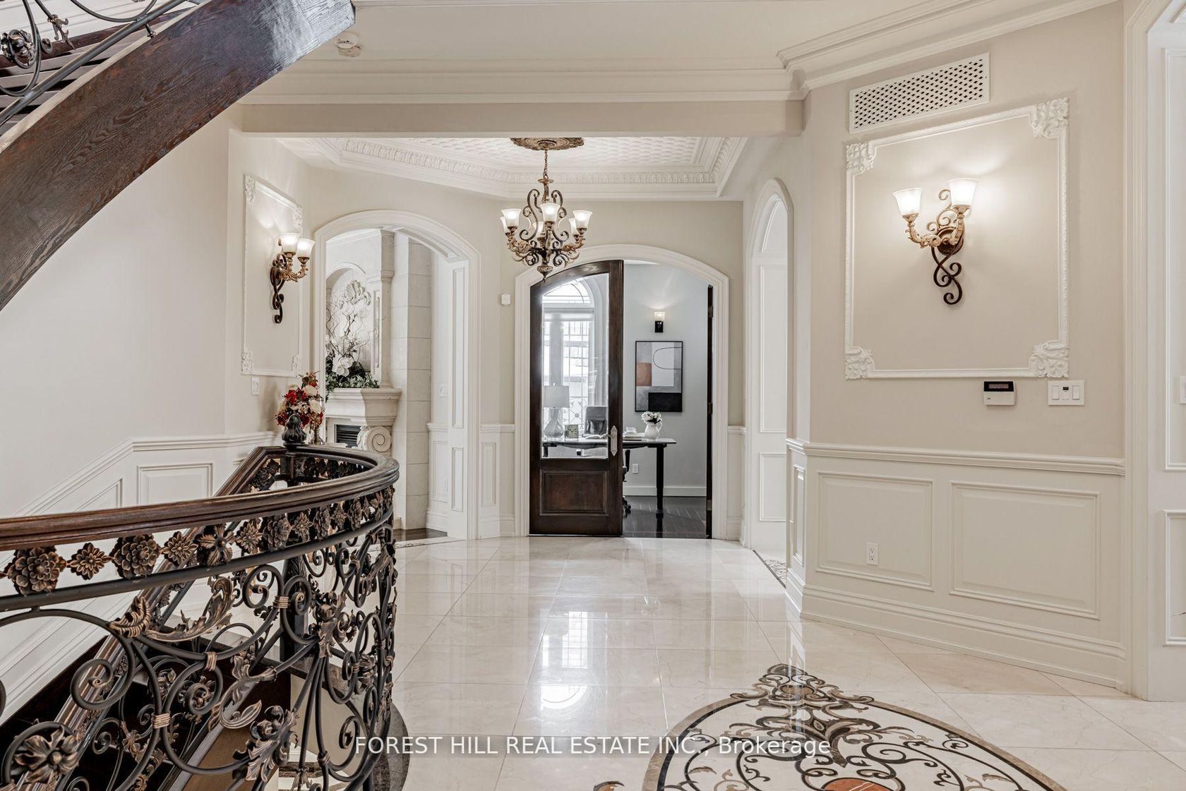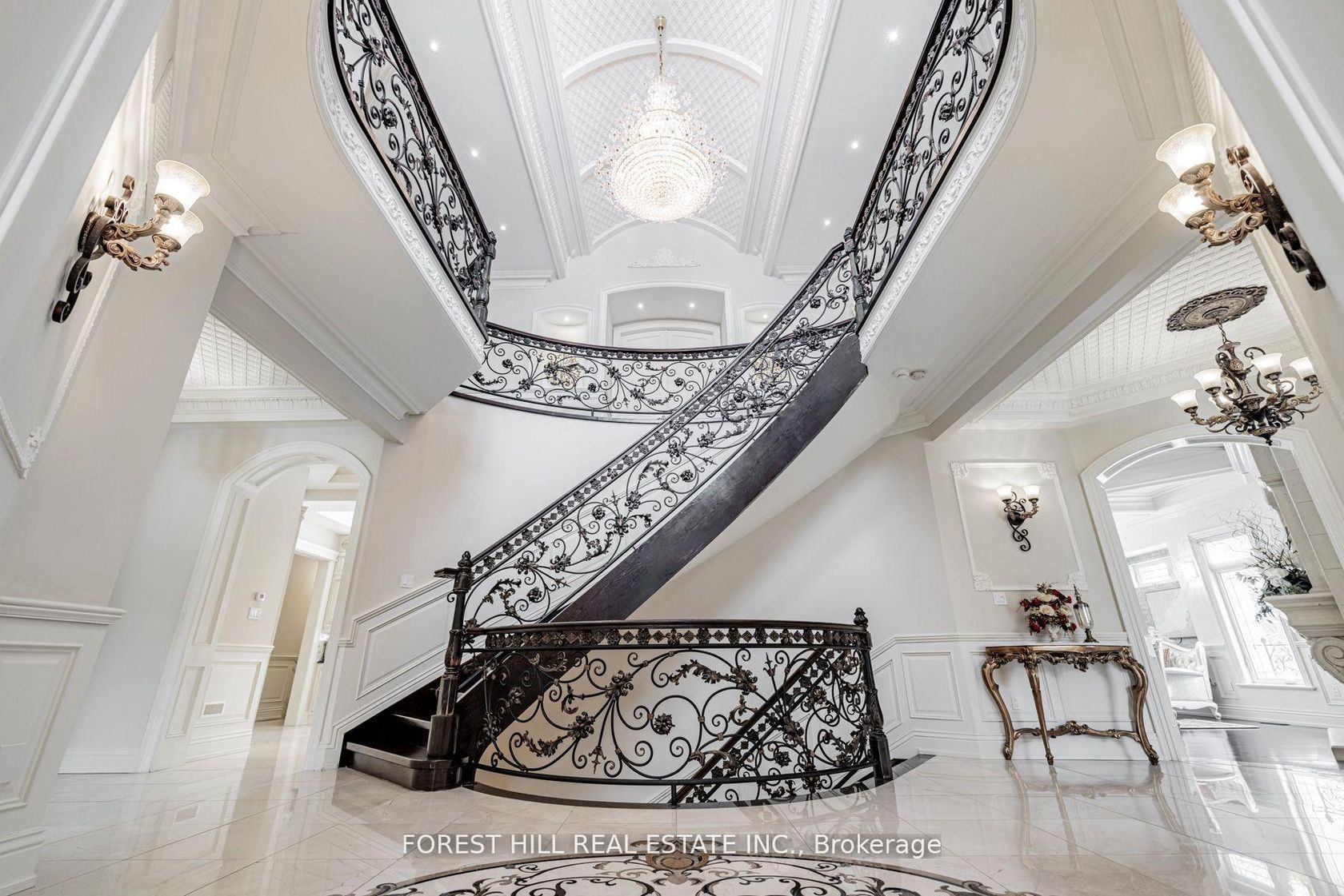 ***Magnificent***chateau-inspired***an exclusive-gated entrance & circular driveway lead to the L-U-X-U-R-Y grand residence on a beautiful 100ftx206ft in the prestigious St. Andrew Estate---This estate residence offers over 10,000sf total living space of refined elegance(Apx 7000sf for 1st/2nd floors as per Mpac) & masterfully crafted, palatial interior finishing with sense of European opulence & the utmost in craftmanship & the art of natural sunlight**The main floor welcomes you with a double-soaring ceiling height draws your eye upward with featuring unique-cathedral/dome design with intricate moulding & a curved stairwell with an antique floral railings in timeless elegance. The chef's kitchen balances form of space & function, with a large centre island and breakfast area. The large terrace extends these living spaces outdoors. The family room forms the centre of this home, where family friends/family gathers--------The primary suite elevates daily life, featuring a living room or private library area, double sided fireplace & private terrace with stunning view of green & backyard for quiet moments alone---The expansive ensuite has exquisite materials feels like an European hotel------Thoughtfully designed 2nd primary bedroom offers spacious private spaces for family's senior member-------The rest of bedrooms have own privacy and endless natural lights----The lower level maintains spacious open area with a kitchen-wet bar-large rec room and movie theatre & lots of storage area & easy access to a private backyard***3 Furances/3 Cacs--Private ELEVATOR--CIRCULAR DRIVEWAY WITH 3 CARS GARAGE--GATED HOME & MORE!!