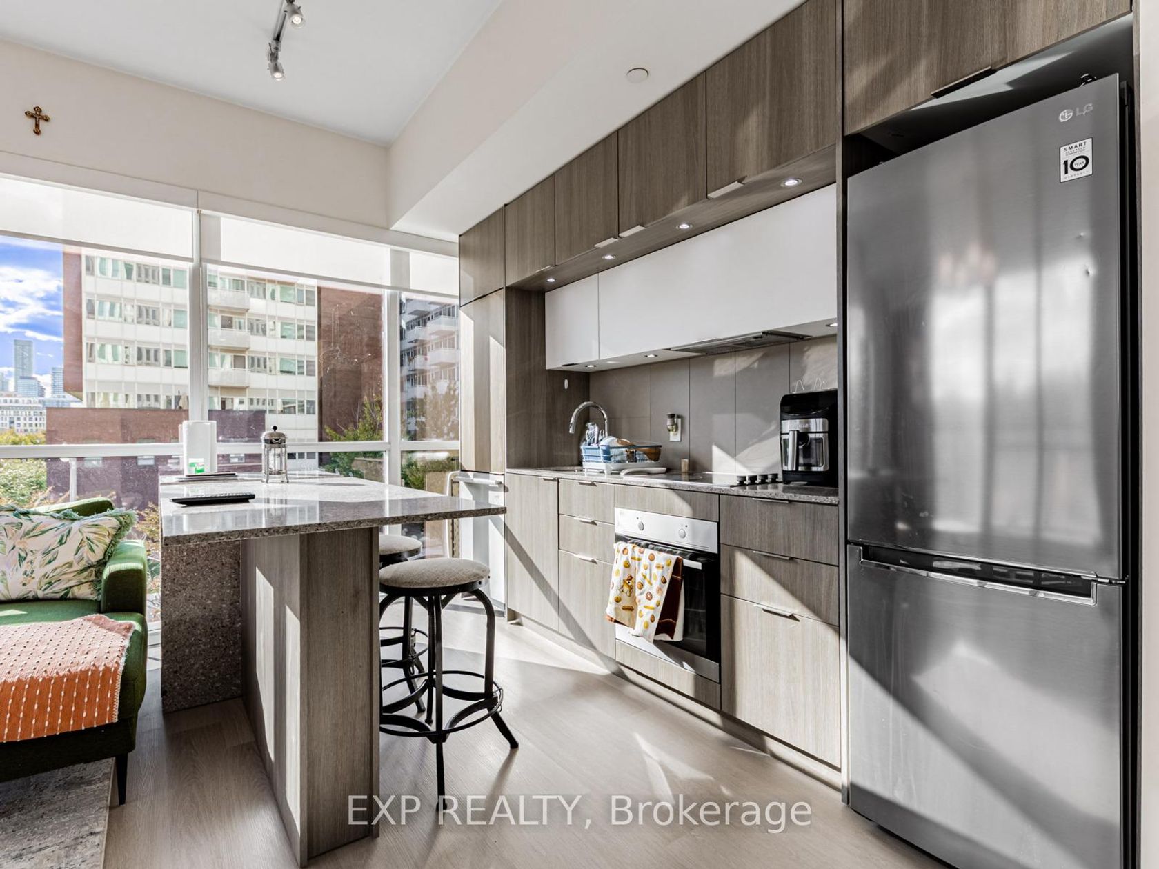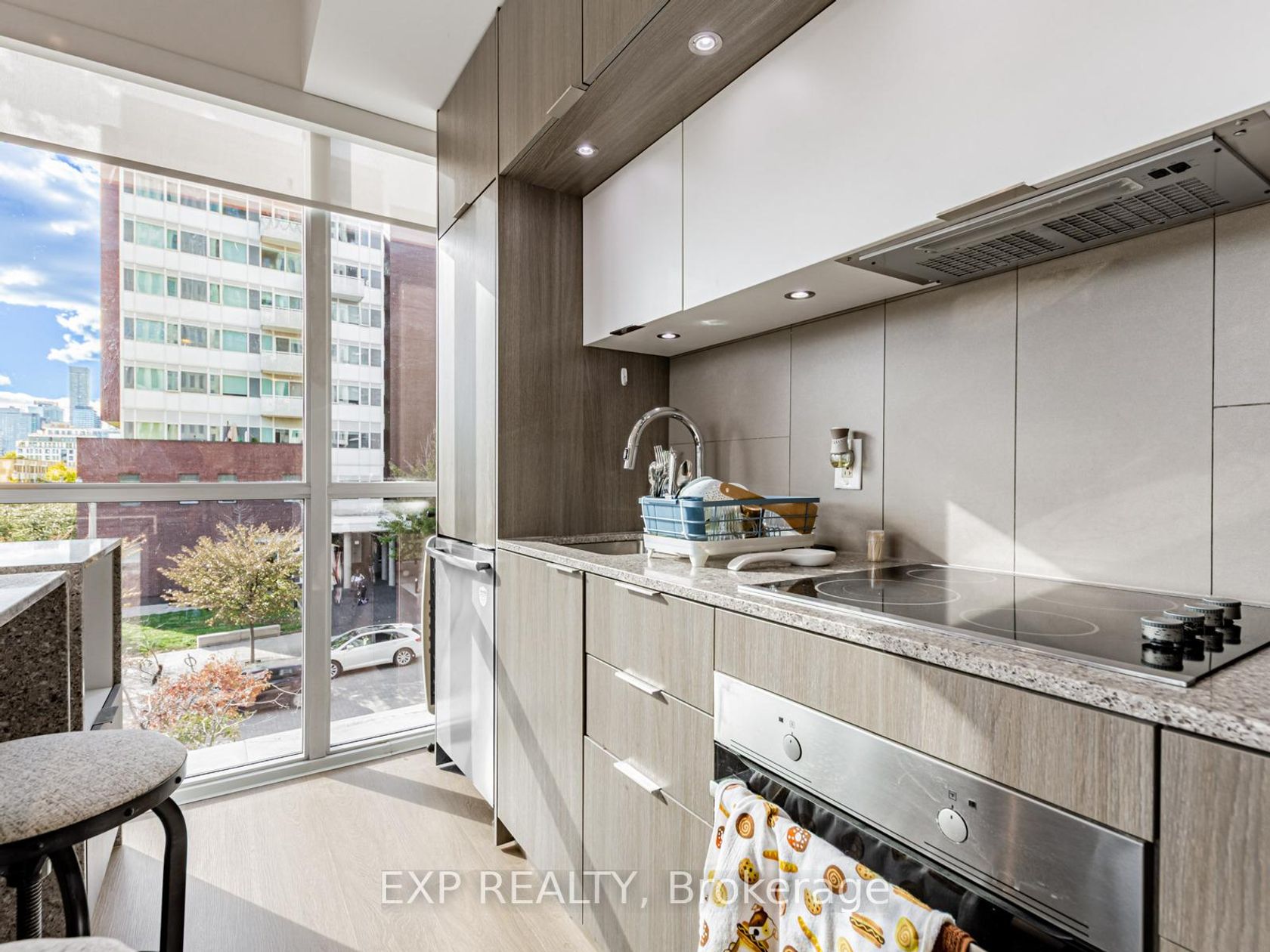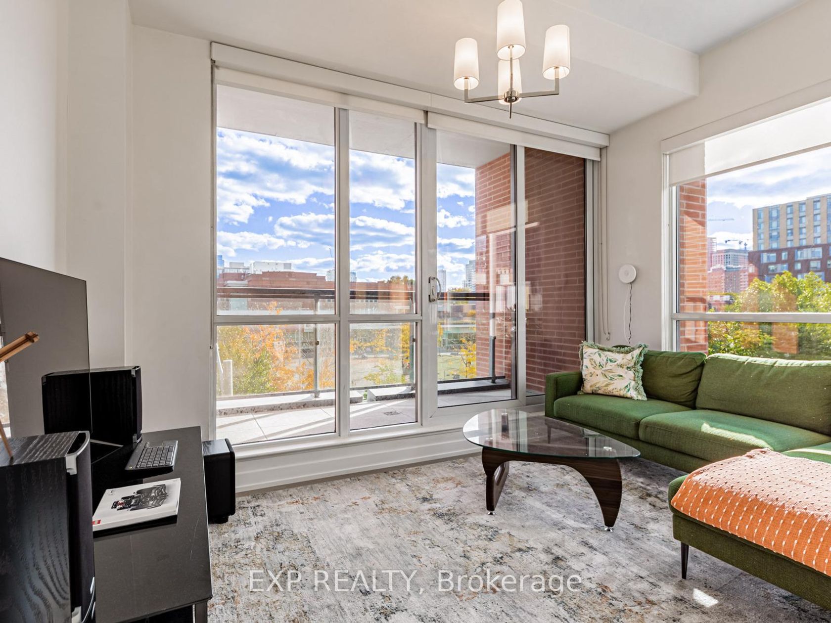 Welcome to this stylish 1-bedroom + den, 1-bathroom suite spanning 814 sq ft at 55 Regent Park Blvd. This bright, open-concept home features floor-to-ceiling windows, 9-ft ceilings, and a spacious balcony with serene courtyard views. The chef-inspired kitchen boasts sleek cabinetry, quartz counters, and full-size stainless-steel appliances-perfect for entertaining or enjoying quiet nights in. The versatile den offers the ideal home-office setup or guest space. Retreat to a spacious primary bedroom with large closets and modern finishes. The 4-piece bath and in-suite laundry add convenience and comfort. Enjoy world-class amenities including a fitness center, rooftop terrace, pool, and 24-hr concierge. Located steps from Daniels Spectrum, Regent Park Aquatic Centre, TTC, cafes, and shops, this is downtown living at its finest. Perfect for professionals, couples, or investors-move-in ready and impeccably maintained.