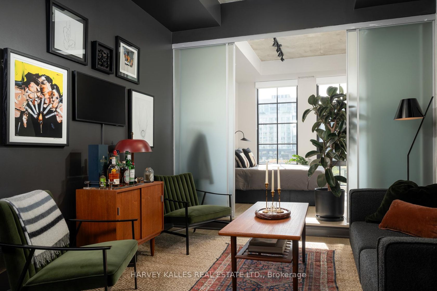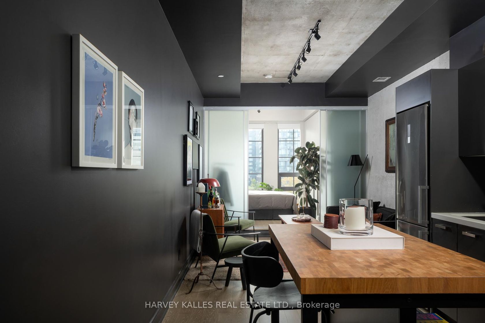 Welcome to Suite 613 at The Harlowe - where timeless design meets contemporary comfort in the heart of downtown Toronto. This beautifully upgraded 1-bedroom, 1-bath residence offers 500 sq. ft. of bright, open-concept living, highlighted by extra-high 10' ceilings exclusive to this floor and sun-drenched south-facing views that fill the space with natural light. Step inside to discover a refined interior featuring Phillip Jeffries vinyl grasscloth wallpaper, a custom bedroom closet with built-in shoe storage (2024), and automated blackout+ manual sheer blinds (2025) - a perfect blend of form and function. The brand-new stacked washer & dryer (2024) add everyday convenience, while the fully upgraded bathroom (2025) impresses with a custom mirror, new vanity, Toto toilet, and designer light fixture for a truly luxurious touch. The open kitchen boasts modern appliances, gas cooking, quartz countertops, and exposed concrete finishes that embody The Harlowe's signature industrial-chic aesthetic. Enjoy your morning coffee while overlooking the city skyline, or unwind in a space that perfectly balances modern elegance with urban edge. Residents of The Harlowe enjoy boutique-style living with concierge service, fitness centre, party room, guest suites, and visitor parking. Located in Toronto's vibrant Fashion District, you're just steps from King West and Queen West's best restaurants, cafes, boutiques, and nightlife. Includes one locker. A rare opportunity to own a beautifully upgraded suite in one of Toronto's most sought-after buildings - stylish, functional, and flooded with natural light.