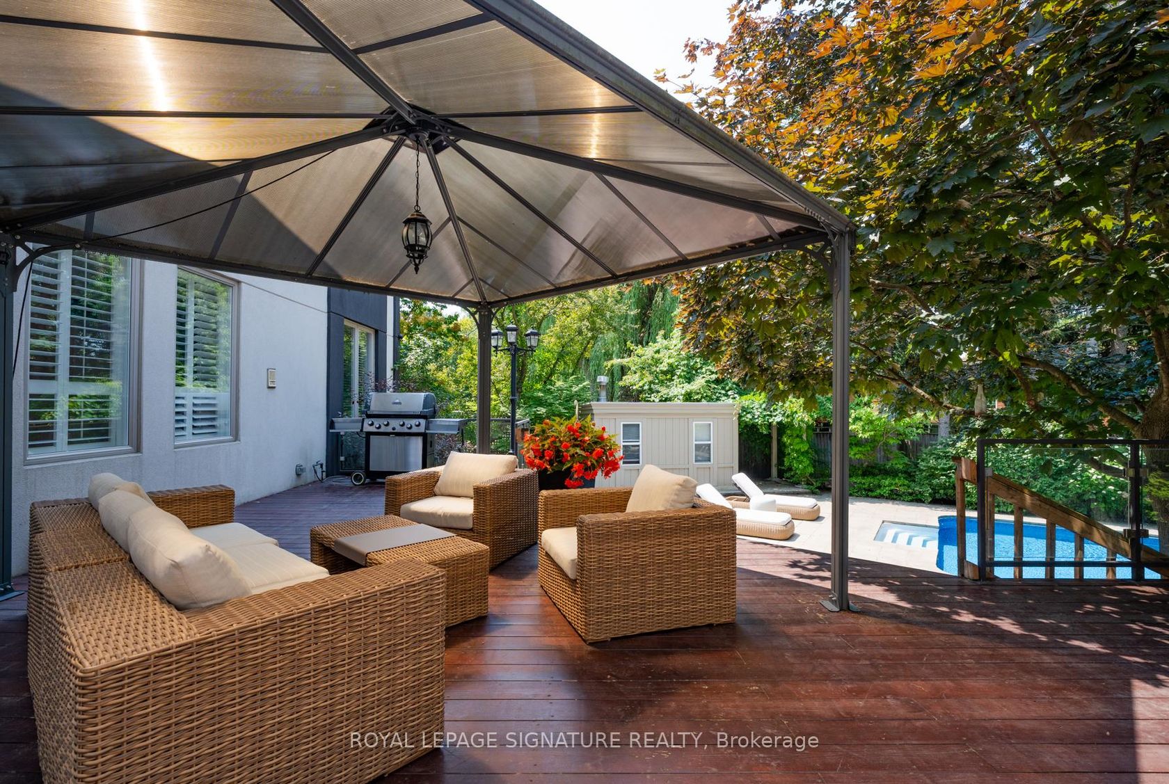 A Private Oasis in the Heart of Toronto Tucked away in the prestigious Bayview & York Mills enclave, this architectural masterpiece offers an exceptional blend of modern luxury and timeless design. Set on an expansive 15,000+ sq.ft. lot, the home features over 6,000 sq.ft. of meticulously crafted living space that balances sophistication with comfort.A standout feature is the homes purposeful orientation expertly designed to capture natural light from multiple angles throughout the day. The result is a warm, luminous atmosphere that shifts beautifully with the sun, enhancing the homes airy, open feel.The main level showcases a seamless open-concept layout anchored by a dramatic book-matched marble fireplace, rich maple hardwood floors, and bespoke finishes throughout. The chef's kitchen is a showstopper, equipped with Sub-Zero and Wolf appliances, a large waterfall island, and direct flow into the family room.Two walkouts lead to a sprawling deck ideal for al fresco dining and effortless indoor-outdoor living.Upstairs, four generously sized bedrooms each feature their own ensuite. The primary suite is a private sanctuary, located in its own wing with a spa-like bathroom, oversized walk-in closet, and serene views of the landscaped grounds.The fully finished lower level is designed for entertaining and relaxation, complete with a wet bar, additional bedroom, and flexible space for a home theatre, gym, or playroom.Outside, the resort-style backyard offers a stunning oversized saltwater pool, expansive deck, and lush greenery perfect for hosting or unwinding in total privacy.This is a rare opportunity to own a sunlit, design-forward residence in one of Toronto's most sought-after neighbourhoods.Garage comes equipped with EV Plug & Epoxy Flooring.
