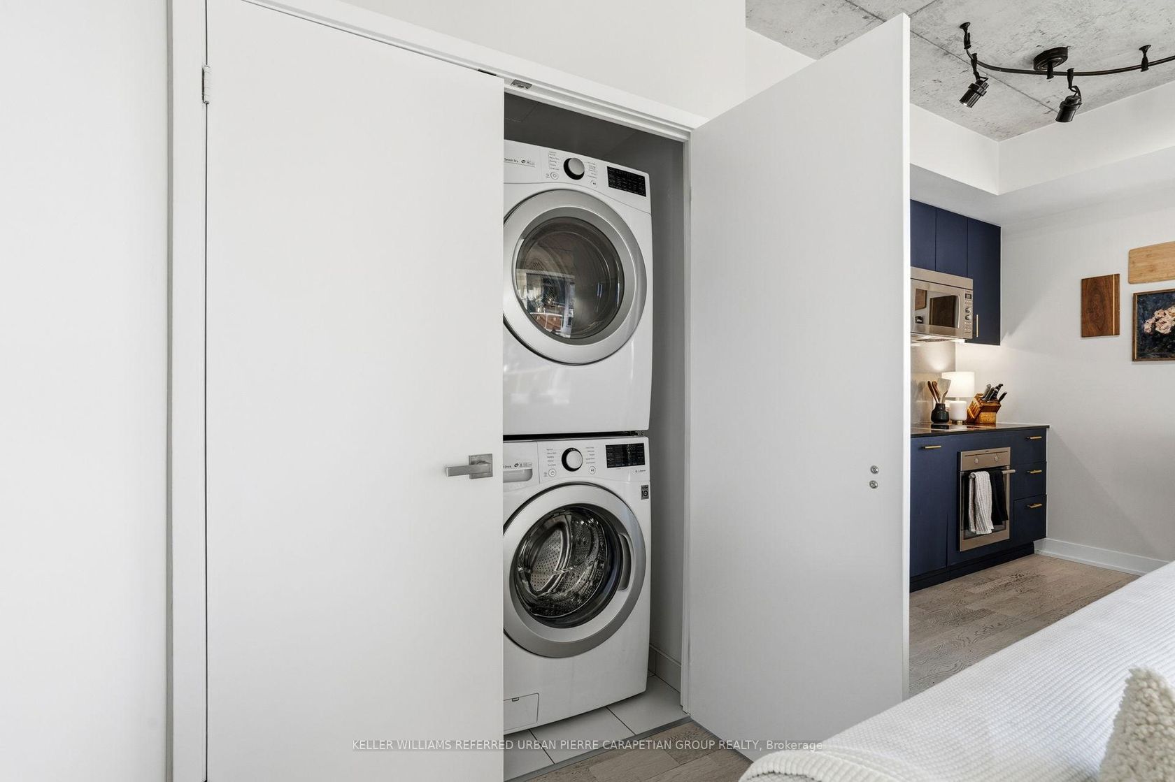 Experience the best of Toronto in Queen West in this stunning 2-bedroom, 2-bathroom residence at 20 Minowan Miikan Avenue.The open-concept layout blends functionality with style - featuring a sleek modern kitchen with integrated appliances and contemporary cabinetry. The washer and dryer is conveniently located beside the kitchen with pantry space. The spacious living and dining area (large enough for full dining table!) flows seamlessly onto the balcony, creating an inviting atmosphere for relaxing or entertaining. The split-bedroom floor plan ensures privacy, while the primary suite boasts ensuite and overlooks your private balcony. Lots of extra closet space inside the unit as well as additional locker offers tons of extra storage! Residents of the Carnaby enjoy an exceptional array of amenities, including a fully equipped fitness centre, party and media rooms, 24-hour concierge, and a beautifully landscaped rooftop terrace with panoramic city views. The building also offers direct access to Metro and Starbucks, ensuring everyday convenience right at your doorstep. Complete with one parking space and a locker, this exceptional home perfectly blends luxury, lifestyle, and location - all in the heart of Toronto's most creative and energetic neighbourhood. Steps from Trinity Bellwoods Park, Ossington, Liberty Village, and the best of Queen Street's cafés, boutiques, and dining.