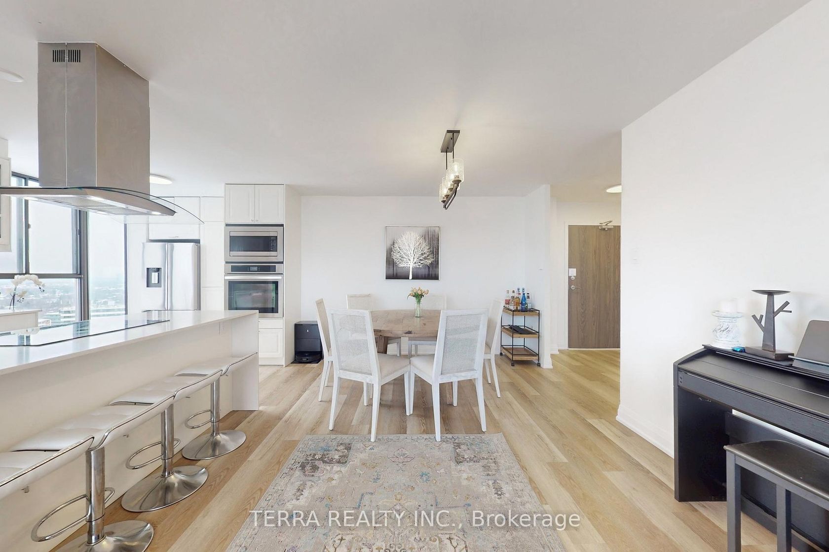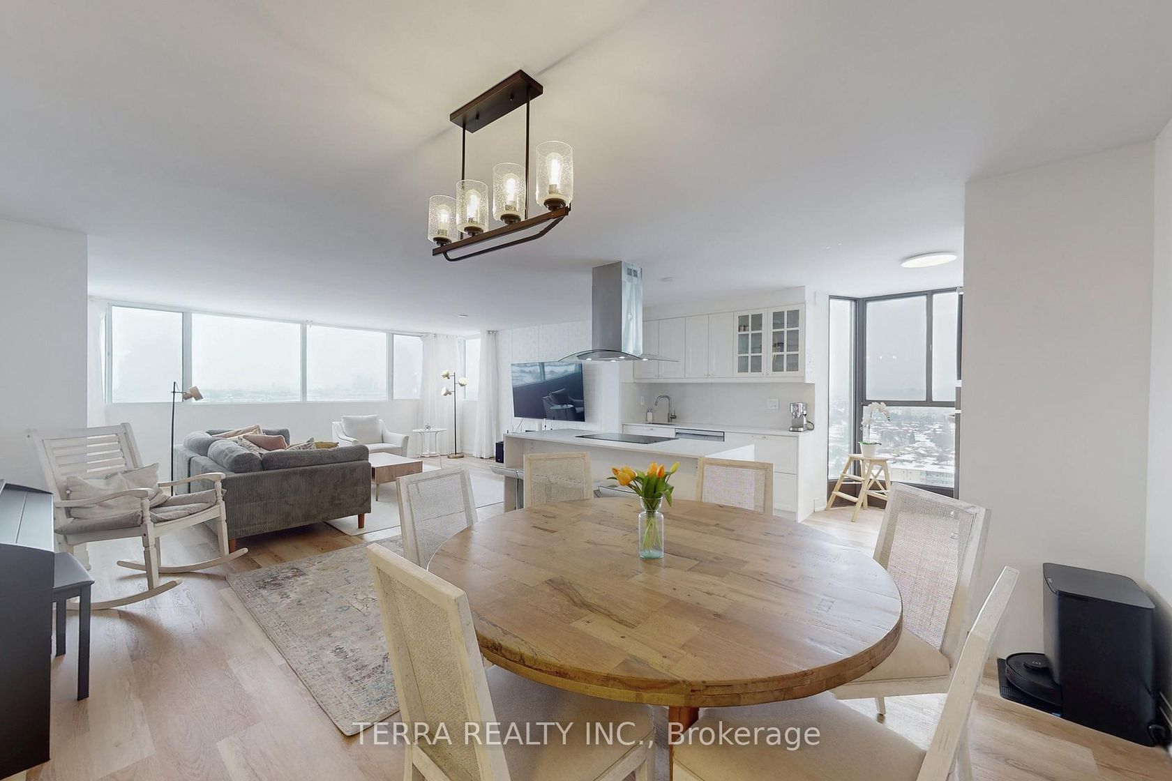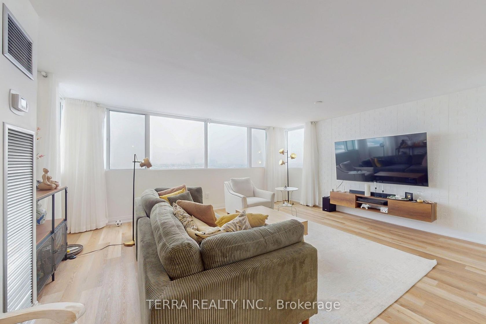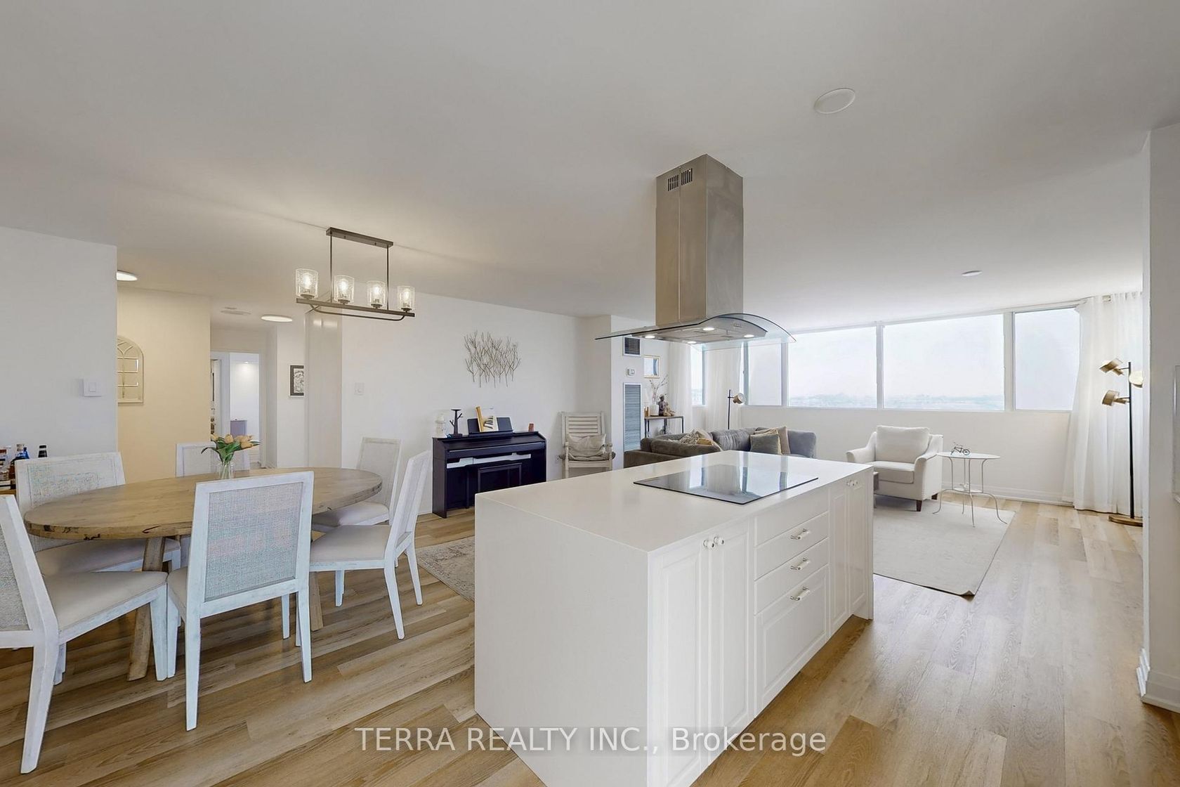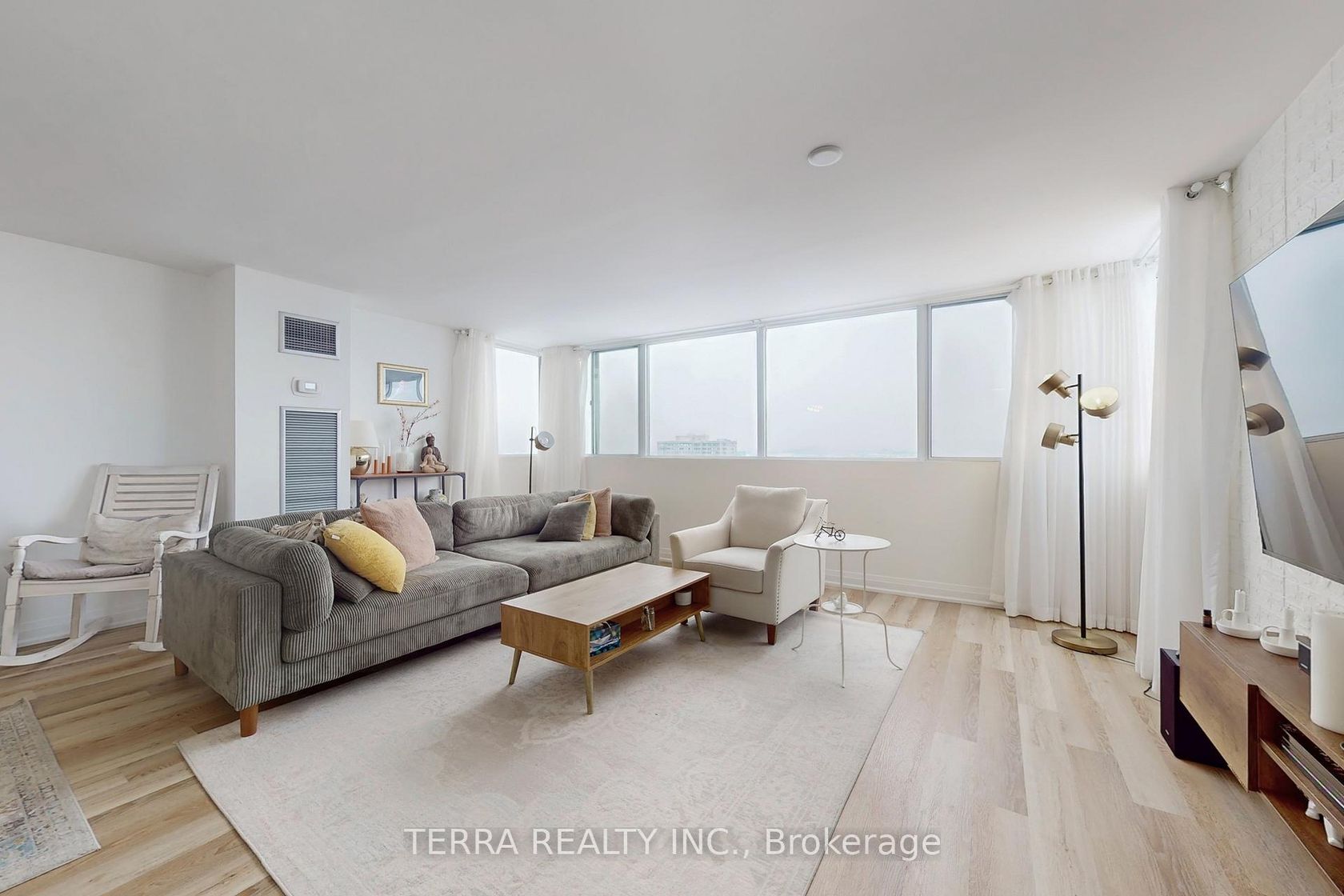 Luxury living with breathtaking views in this move-in ready, fully renovated 3-bedroom, 2-bathroom corner residence. This stunning home features an ideal open-concept layout with brand-new premium flooring throughout, a bright and inviting living room, and a spacious dining area. Enjoy the added versatility of extra living area without the solarium. The brand-new chef's kitchen is truly impressive, offering a breakfast area, granite countertops, sleek modern white cabinetry, new stainless steel appliances, and a stylish backsplash. An ensuite laundry room adds everyday convenience.The primary bedroom boasts a fully upgraded 3-piece ensuite bathroom, complemented by two additional generously sized bedrooms. Includes one underground parking space and ample ensuite storage.Exceptional building amenities include an exercise room, sauna, tennis courts, visitor parking, and guest suites. Maintenance fees include hydro, water, and heat, & cable tv for added value and peace of mind.