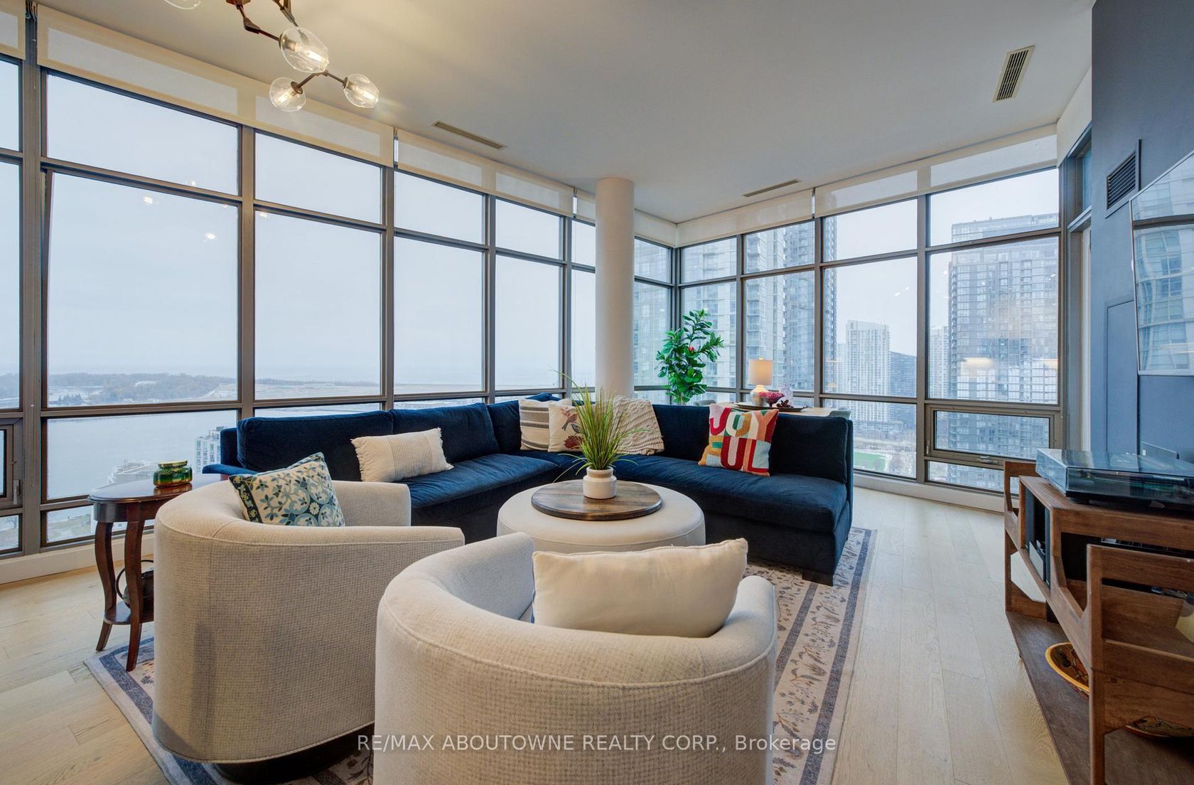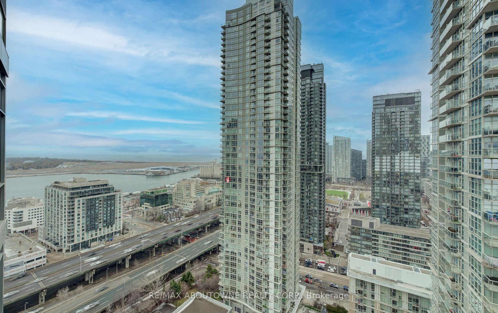 Live at the Lake in a rare Penthouse Corner Suite. Experience elevated living in this stunning penthouse suite featuring 10-ft floor-to-ceiling panoramic windows with breathtaking south views of Lake Ontario & the Island Airport. Located in sought-after Harbour View Estates, residents enjoy exclusive access to the renowned "Super Club"-a separate facility with indoor access offering an indoor pool, gym, BB courts, squash, tennis, & more. This fully renovated home offers approximately 1,100 sq. ft. of thoughtfully designed space, including a bonus room ideal for a home office, complete with 10-ft ceilings & glass French doors. The open-concept kitchen features quartz countertops, stainless steel appliances, a 5-burner gas stove, built-in microwave, breakfast bar with lake views, island stainless steel sink, & a dedicated coffee/beverage bar. The suite showcases high-end 5" engineered hardwood flooring T/O the living areas, custom window coverings, & a neutral designer colour palette. Both bathrooms have been beautifully renovated with oversized tiles, glass enclosures, & quartz finishes. The primary ensuite feat a rain shower with an oversized glass shower, while the main bath offers a full-sized tub. Two generously sized bedrooms incl double closets, the unit is equipped with full-size ensuite laundry. Penthouse living is complemented by two side-by-side parking spaces, conveniently located just steps from the building entrance. Ideally situated at 3 Navy Wharf, this location is steps to the Rogers Centre, minutes to Scotiabank Arena, the CN Tower, & the Well entertainment district. Quick access to the Gardiner via Spadina, & seamless transit options including GO Train, UP Express, & subway are all nearby. The building offers 24-hour concierge service, an excellent elevator-to-unit ratio with only 30 floors & 3 elevators. If you're seeking a rarely offered penthouse corner suite with balcony, spectacular lake views, an unbeatable downtown lifestyle, this is it!