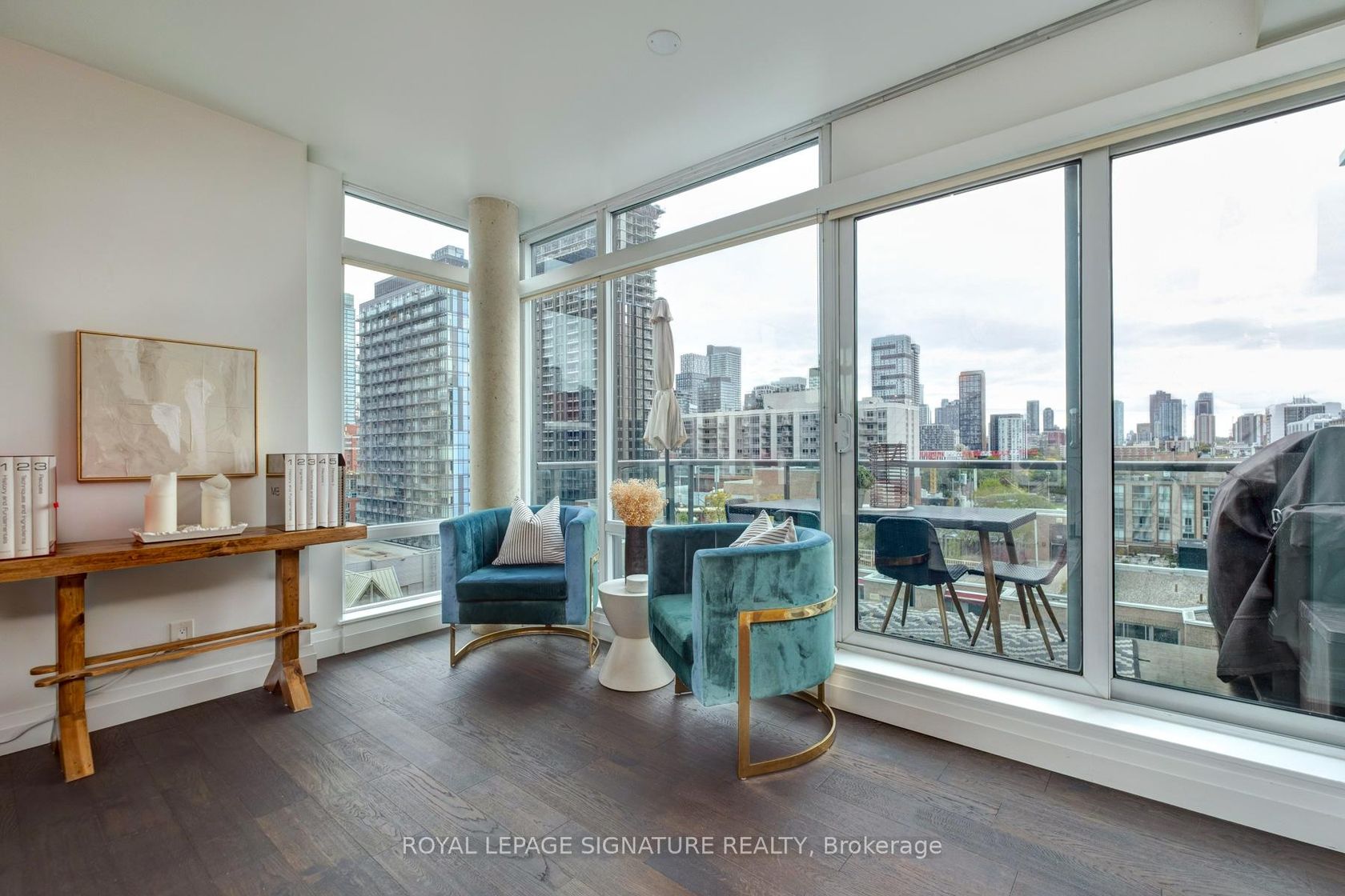 Experience elevated city living in this stunning northwest corner sub-penthouse with over 1,320 sq. ft. of thoughtfully designed space. With 3 bedrooms, 2 baths, and two private balconies - including one with a BBQ gas hookup - this home is made for entertaining and everyday comfort.Soak in incredible skyline views through floor-to-ceiling windows that flood the space with natural light. The open-concept living and dining area flows seamlessly into a chef's kitchen featuring high-end appliances, sleek cabinetry, and modern finishes that make cooking and hosting effortless.The primary suite offers a peaceful retreat with a custom walk-in closet and a marble ensuite complete with a double vanity and glass shower. The second bathroom has been beautifully updated with a deep soaker tub - the perfect place to unwind after a busy day. Upgraded flooring throughout adds warmth and sophistication to every room.All of this just steps from St. Lawrence Market, King St E, the Canary District, and the Distillery District - where Toronto's best dining, shopping, and culture come together. Designed for those who love style, convenience, and connection, this sub-penthouse is urban living at its best.