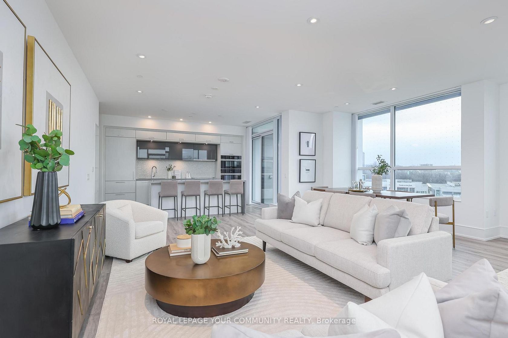 Welcome to Chateau Auberge on The Park by Tridel, One of the Most Distinguished Residences within the Auberge Community. This rare SouthWest-Facing 3-Bedroom, 3-Bathroom Corner Residence offers approximately 1,790 sq. ft. of Beautifully Proportioned Living Space, Thoughtfully Designed for Elegance, Comfort, Privacy, and Long-Term Livability. Sun-Filled Interiors Enjoy Sweeping SouthWest Exposure, Providing Open Views and Natural Light Throughout the Day.Designed for both Everyday Living and Entertaining, the Residence Features a Highly Functional Open-Concept Layout, Enhanced by Elegant Pot Lighting and Seamless Indoor-Outdoor Living with Two Spacious Balconies, Ideal for Enjoying Sunsets and City and Park Outlooks. The Contemporary Kitchen Blends Refined Design with practicality, Featuring Premium Miele Appliances, an Upgraded Sink, and a Custom Spice drawer. All three bathrooms have been tastefully upgraded with enhanced countertops, upgraded shower finishes, and accessibility features, including grab bars for added comfort and future flexibility. The primary ensuite includes an upgraded shower floor, while the dedicated laundry room with sink and running water offers a rare and valuable upgrade.This residence includes one parking space and one premium locker, providing convenience and storage rarely found at this scale. Residents enjoy a full-service residential lifestyle with curated amenities including a grand lobby with 24-hour concierge, indoor pool and spa, fitness centre and yoga studio, party lounge, guest suites, outdoor BBQ areas, pet spa, and landscaped outdoor spaces. Ideally located steps from Sunnybrook Park, minutes to Shops at Don Mills, major highways, and the Eglinton Crosstown LRT, offering effortless access across the city.A truly exceptional luxury condominium offering space, privacy, thoughtful upgrades, and an elevated lifestyle in one of Toronto's most coveted addresses.