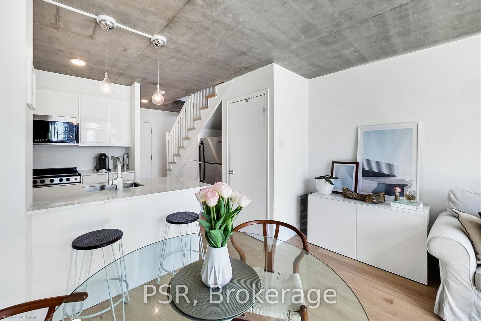Welcome to 954 King St. W, A Completely Renovated Two Storey Loft In A Boutique Architectural Gem in the Heart of King West/Niagara. Newly Renovated Loft With Double-Height Ceilings, Exposed Concrete Walls, And Wall-to-Ceiling Windows With South Views Overlooking Massey Harris Park! This Bright and Spacious 1 Bedroom + Extra Large Den, 1.5 Bath Unit Features a List Of Upgrades Including, Fully Upgraded Kitchen & Baths, Hardwood Floors Throughout, Remote-Control Blind, New Washer/Dryer, New Lighting. The Main Level Opens Into an Airy, Open Concept Living/Dining, Powder Room and Chef's Kitchen With a Well-Appointed Breakfast Bar and Walk Out To South Facing Terrace, Ideal for Entertaining. Upstairs, You'll Find A Spacious Bedroom and Den, Generous Closet Space, Ensuite Spa Like Bath and Laundry. Storage Conveniently Located Ensuite. Parking Included! Building Comes With Incredible Amenities: Gym, Party & Games Room, Theatre Room & Visitors Parking. Terrific Value As Maintenance Fee Includes All Utilities. 10/10 Prime King / Queen West Location - Steps To The Best Toronto Has To Offer. Walk To The Best Restaurants, Cafes, Bars, Shopping (The Well), Transit (King Streetcar at Your Door), & Green Space Just Across The Street.