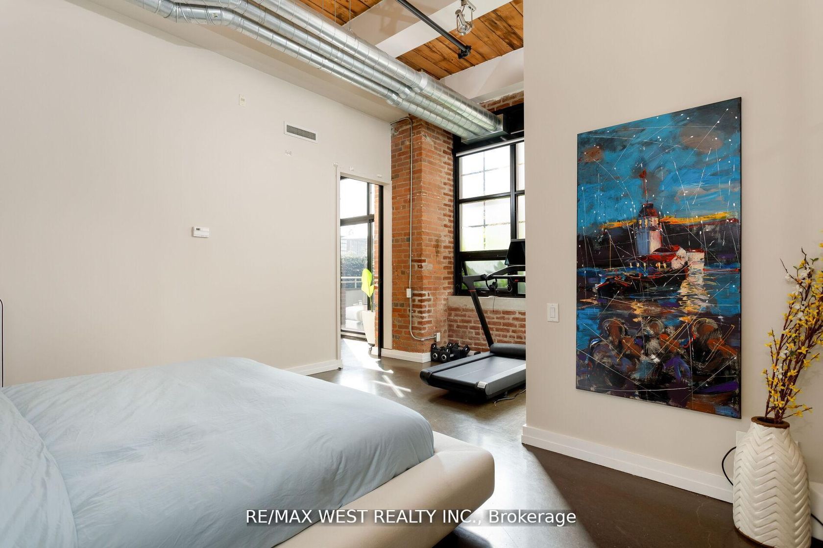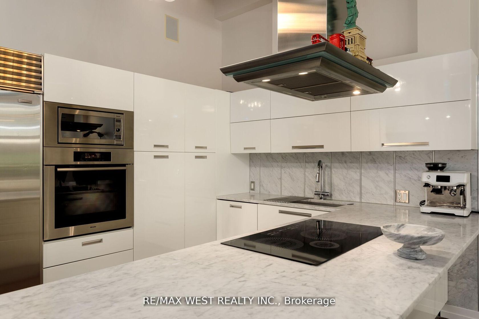 Experience unparalleled sophistication in this custom-crafted hard loft, a rare gem nestled within the historic Irwin Toy Factory in the heart of Liberty Village - one of Toronto's most vibrant and sought-after neighborhood's. Offering approximately 1,475 square feet of interior elegance and a 191-square-foot private terrace, this residence perfectly balances expansive open-concept living with intimate outdoor retreat. Step inside and be captivated by the loft's 13-foot Douglas Fir beamed ceilings, exposed brick walls, and beautifully restored concrete floors - a seamless fusion of industrial heritage and modern refinement. Every detail has been thoughtfully curated to blend timeless character with contemporary luxury. The chef-inspired kitchen is a culinary showpiece, featuring top-of-the-line Sub-Zero and Miele appliances, a Frigidaire gallery induction cooktop, Scavolini white gloss cabinetry, and exquisite marble countertops with a waterfall island and built-in wine fridge. A separate storage/pantry room and dedicated laundry room with custom built-ins ensure both practicality and sophistication. The upgraded bathroom exudes European elegance with Italian ceramic finishes, while Komandor custom closets, including a walk-in closet, provide elevated organization throughout. Upgraded mirrored sliding storage doors further enhance the home's architectural flow and style. Enjoy the comfort of automated window blinds, offering ambiance and privacy at your fingertips, and the convenience of an extra-large parking space that accommodates two vehicles with ease.