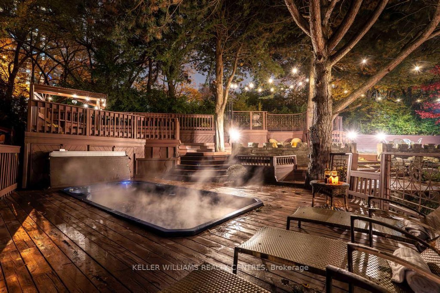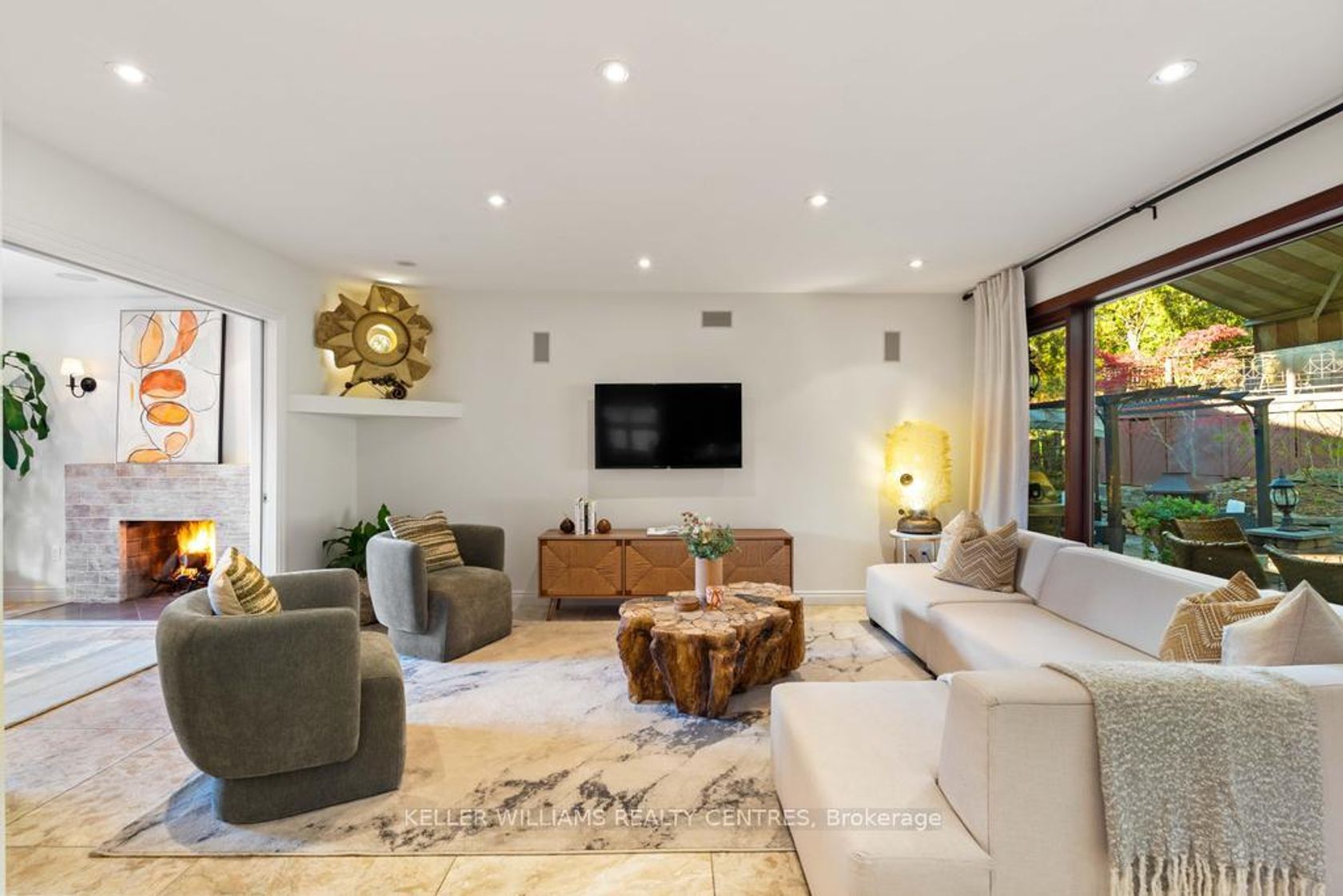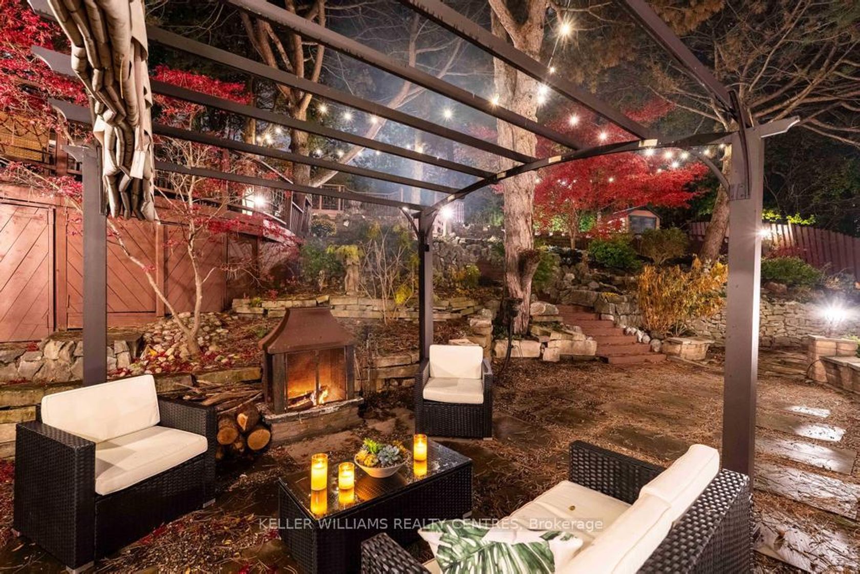 Step into your private urban oasis with this exceptional home, featuring 3 spacious bedrooms and a versatile 4th den on the 2nd floor, perfect as a nursery, office, or cozy retreat. The primary suite impresses with vaulted ceilings, a custom wood-burning fireplace, a private balcony, and a spa-inspired ensuite complete with a built-in sauna and a glass-enclosed oversized shower. Natural light floods the upper hallway through a skylight, creating a warm and inviting atmosphere. At the heart of the home, the chef's kitchen is designed for both family living and entertaining, with built-in appliances, generous stone surfaces, a prep sink, a built-in breakfast nook, and integrated indoor Sonos speakers with dedicated wall controls. Sunlight fills the adjacent dining room and sunroom, offering year-round views of the lush, meticulously curated gardens. Additional highlights include a private main floor office with its own wood-burning fireplace, a functional mudroom with built-in bench, a walk-in closet, abundant storage throughout, and a fully equipped lower-level in-law or nanny suite with its own kitchen, fireplace, living space, and 5th bedroom. Three wood-burning fireplaces throughout the home add warmth and charm to every room. The resort-style backyard is a true entertainer's dream, featuring a heated pool, cabana, two fire pits, an outdoor speaker, a Natural Gas BBQ, multiple seating and dining areas, and beautifully landscaped gardens that ensure privacy and serenity. Set on a rare pie-shaped lot spanning almost 1/3 acre, over 200 feet deep and opening to a 121 ft rear lot line, this property perfectly balances the tranquility of a private retreat with the convenience of city living, just moments from highways, Fairview Mall, the subway, parks, and top-rated schools. An extraordinary offering not to be missed, schedule your private tour today.