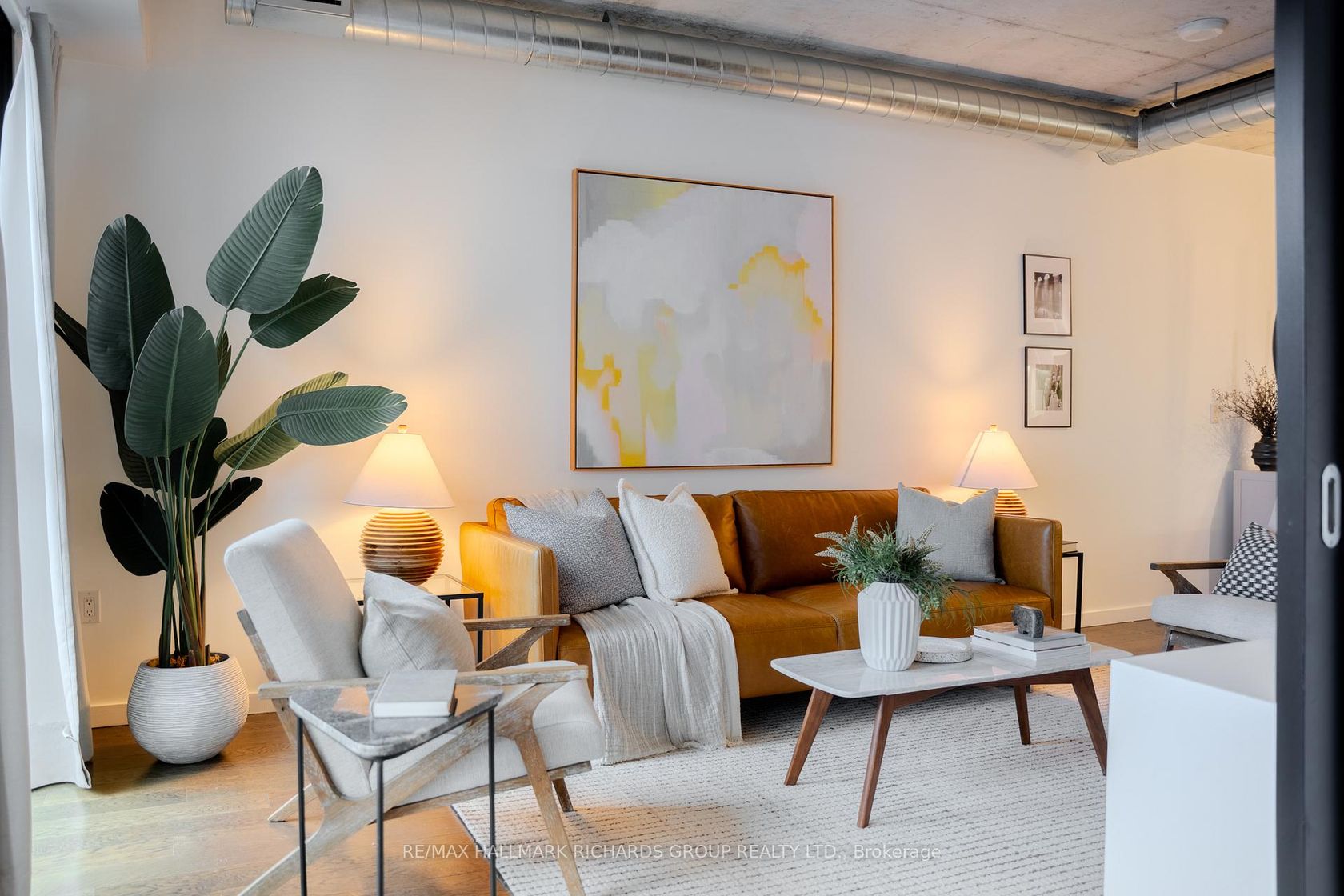 A thoughtfully designed loft-style residence that delivers exceptional flexibility, natural flow, and a lifestyle-forward setting in the heart of the Canary District. This open-concept one-bedroom plus den offers a rare level of versatility, with a generously sized den that comfortably functions as a true second bedroom. A collapsible wall allows the space to open seamlessly for entertaining or close off for privacy, work-from-home needs, or guests. Concrete ceilings and warm hardwood floors create a modern, architectural backdrop, while the kitchen integrates effortlessly with the living and dining areas for everyday ease and hosting alike. Storage is both abundant and intentionally planned, highlighted by an oversized walk-in closet located in the front hall, making it ideal as additional storage for a second bedroom or den setup. The semi-ensuite, dual-access bathroom is complemented by extended cabinetry and linen storage above a brand new washer/dryer combo (2025) for added functionality. Step outside to an open balcony overlooking the landscaped courtyard and outdoor pool, offering a resort-like atmosphere that truly shines in the warmer months. Surrounded by some of downtown Toronto's most thoughtfully planned green space, including the expansive Corktown Commons just steps away, perfect for morning walks, sunset runs, or relaxed afternoons outdoors. Enjoy downtown living without the chaos, while in close proximity to the Distillery District, St. Lawrence Market, Riverside, and Leslieville, with easy TTC access to King and Queen streetcars and seamless connectivity to the DVP, Lakeshore, and Bayview Extension. Everyday conveniences abound, from parks and trails to fitness centres, grocery options, dog-friendly cafes, and standout dining destinations such as The Broadview Hotel rooftop. A well-managed building with 24/7 security and impeccably maintained common areas completes the offering - a refined, flexible home designed for modern urban living.