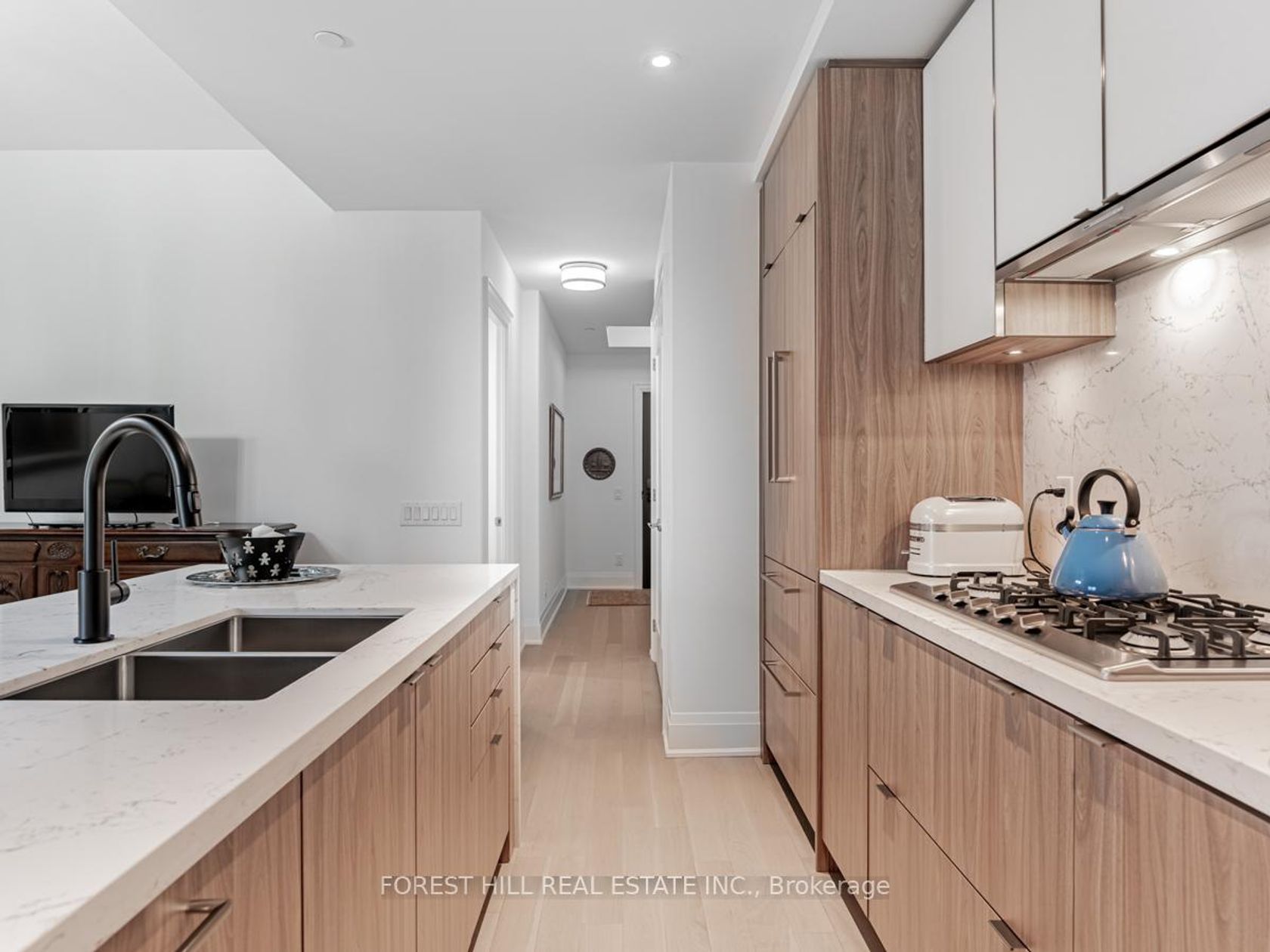 Exceptional 1172 sq.ft. suite with exquisite layout in desired striking, beautiful "Bianca" Condo by Tridel. Walk-out to tranquil terrace with gas BBQ hook-up and waterline overlooking serene lush garden with mature trees, shrubbery and hydrangeas. Upgraded suite. Kitchen with huge island with waterfall, pantry and quartz countertops. Laundry with sink; 2 ensuite bathrooms and a powder room. Primary ensuite & powder room have all marble walls, counter & floor; wired for motorized blinds in every window; all closets with California closet organizers, hardwood engineered floors, keyless locks. Resort like roof top outdoor pool & patio with BBQ area, outdoor fire side lounge. Excellent amenities include party room w/DR, fitness centre, Yoga studio. Parking & locker included. Amazing location in the Annex close to all conveniences, TTC, shops, Restaurants, easy access to U of T.