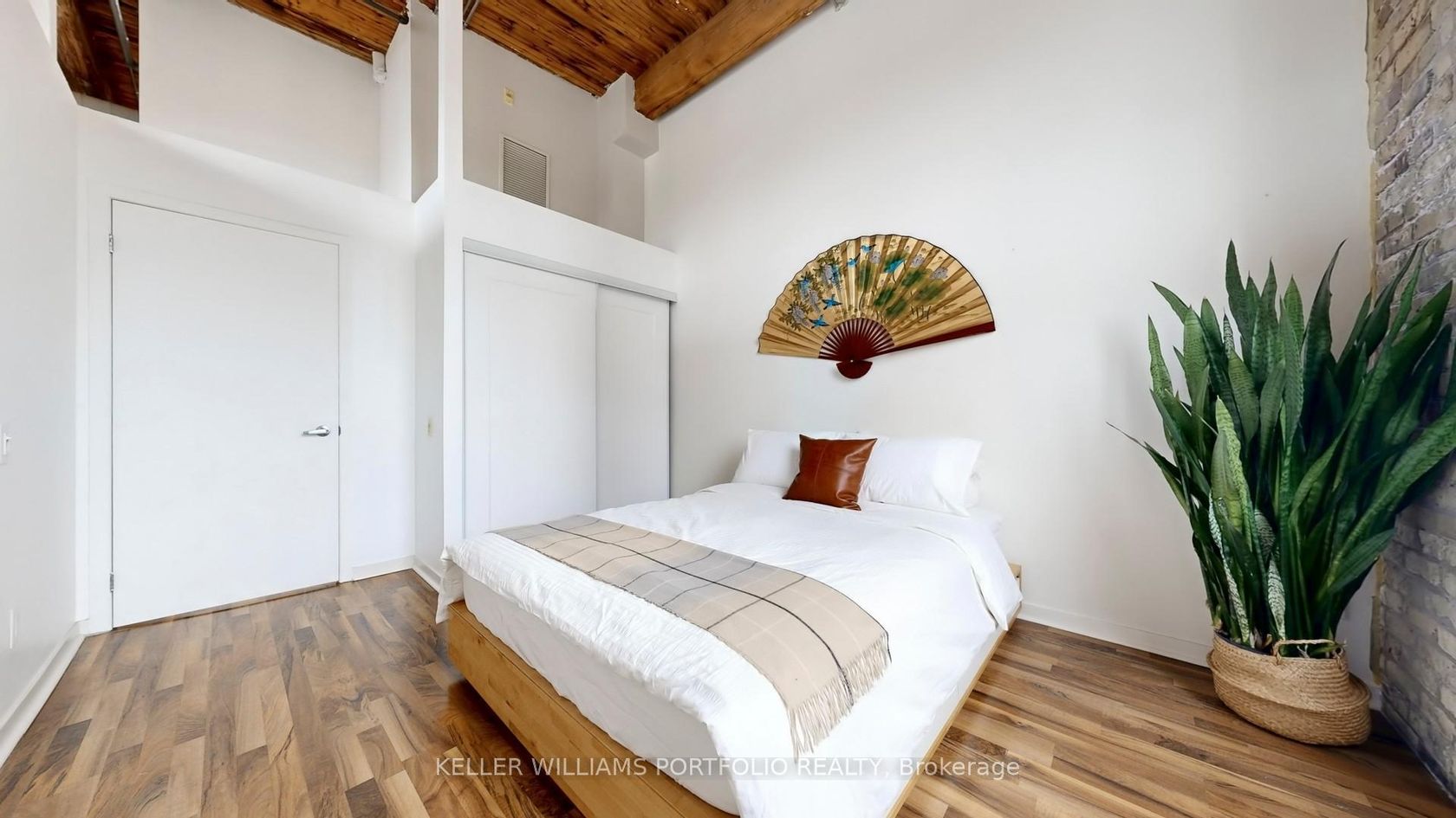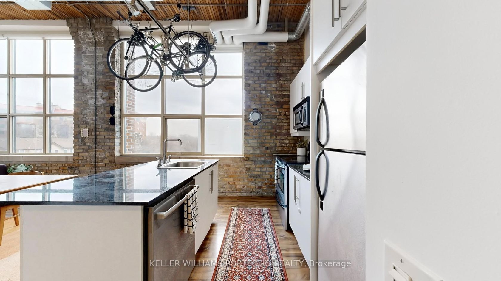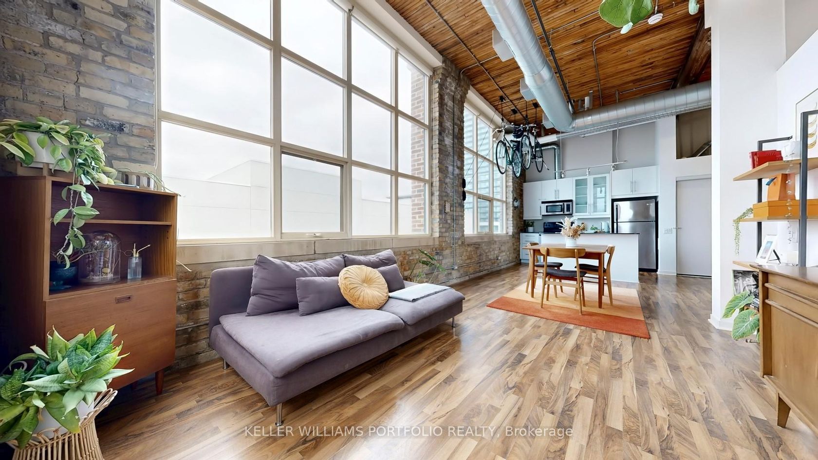 Hard loft lovers, this one's for you. Welcome to Tannery Lofts, a 731 sq ft corner showpiece. Original exposed brick, wood slat ceilings, soaring 13-foot timber beams and ductwork create an unbeatable wow factor. Oversized loft windows flood the 1-bedroom with natural light-a plant lover's dream-while the open-concept layout is perfect for entertaining, creating, or working from home. The kitchen features granite counters and stainless steel appliances, while the renovated bathroom includes updated fixtures and a modern stand-up shower. The generous bedroom with custom built-ins keeps things organized without sacrificing loft style. Tannery Lofts prioritizes character, community and location over flashy amenities. Locker and parking available for rent. Steps from Regent Park Aquatic Centre and Daniels Spectrum, close to bike lanes, minutes to Leslieville, Riverdale, Distillery District, downtown, and the DVP for fast access everywhere.