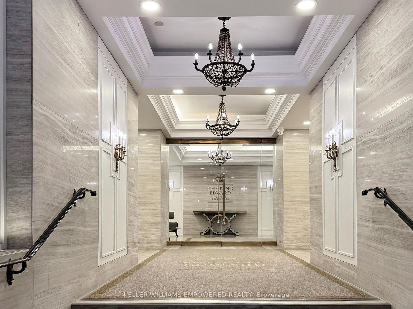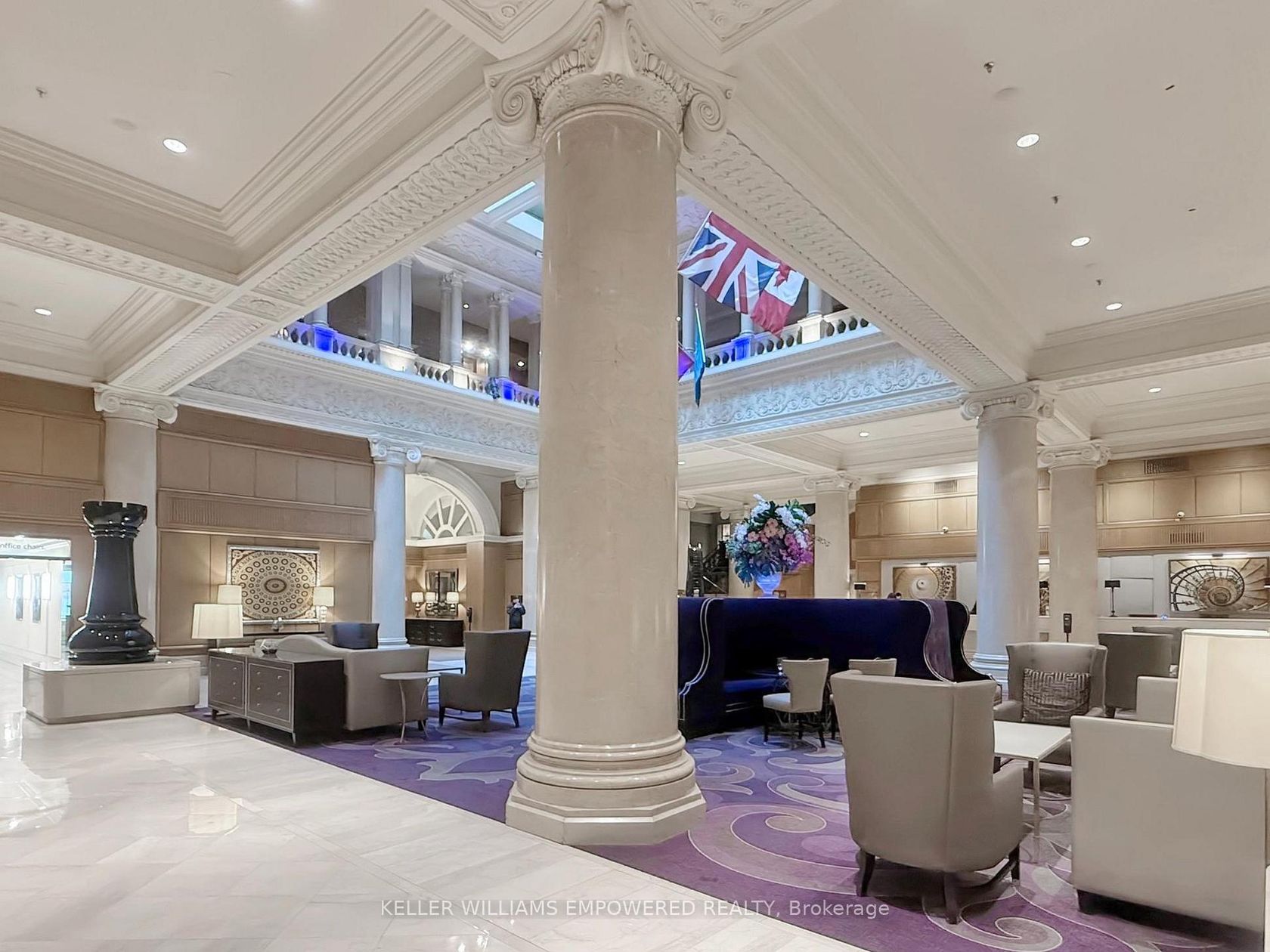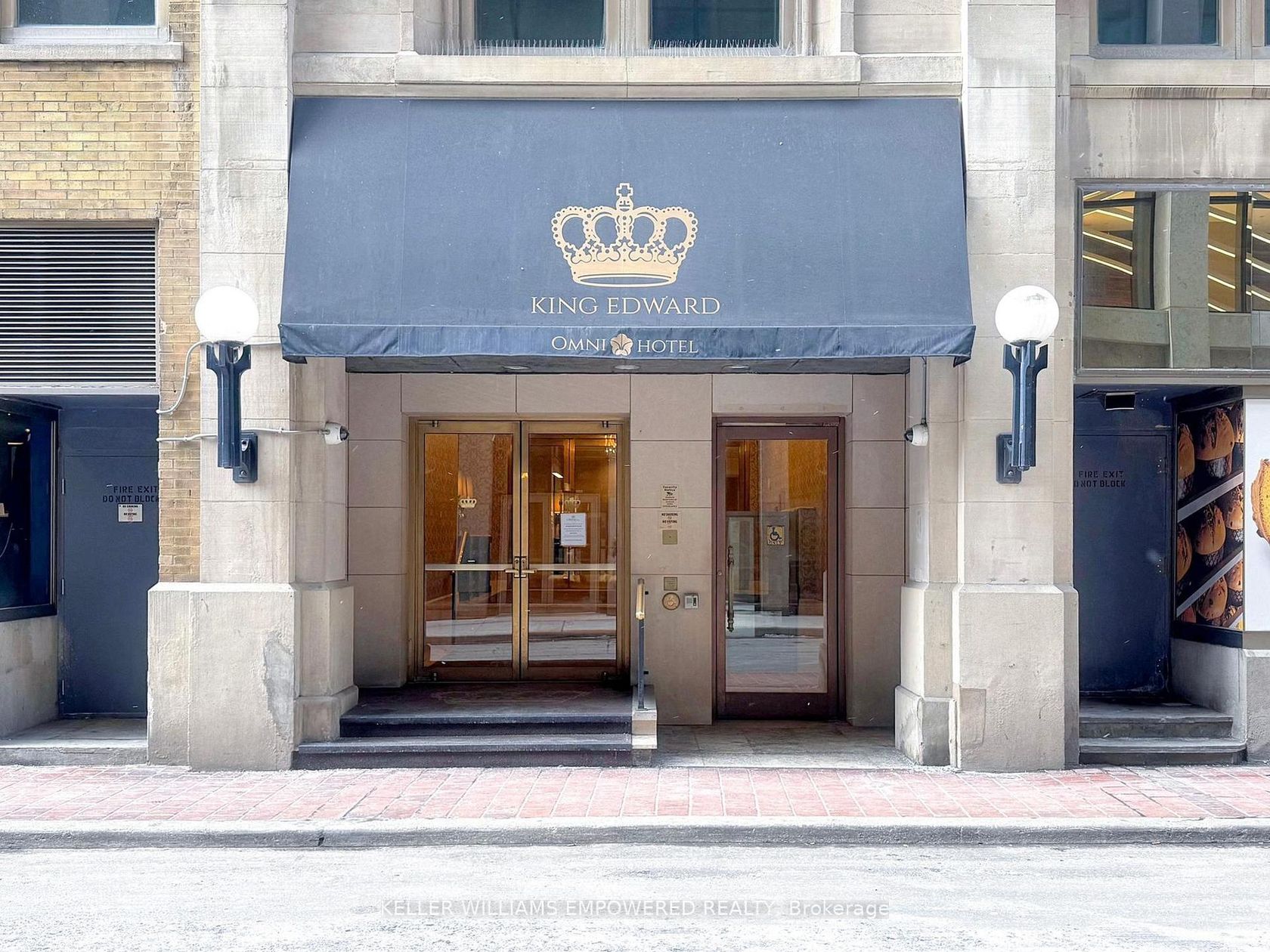 Located within the iconic and historic Omni King Edward Hotel, this luxurious private residence offers exclusive access to hotel-quality, five-star amenities in one of downtown Toronto's most prestigious landmark buildings. Perfectly situated in the heart of the city, the location offers exceptional walkability within the Financial District - and is just steps away from St. Lawrence Market, the PATH, public transit, and endless dining, shopping, and entertainment destinations! This bright suite features southwest exposure, pot lights throughout (2024), fresh paint (2024), and soaring ceiling height just under 10 feet. The functional open-concept layout includes a kitchen with granite countertops, glass tile backsplash, floor-to-ceiling panelled cabinetry, high-end stainless steel appliances, and LED valance lighting (2024). Large windows in the living room and bedroom beautifully capture the city skyline and CN Tower views.The four-piece bathroom features a large glass-enclosed soaker tub/shower with waterfall shower-head, granite vanity with a brand new Kohler sink (2025), and updated lighting (2024). One large locker is included! Residents enjoy 24-hour concierge and security, fitness centre, business centre, Royal Club lounge access, meeting and lounge spaces, guest suites, spa access, and optional hotel room service through the Omni King Edward Hotel.