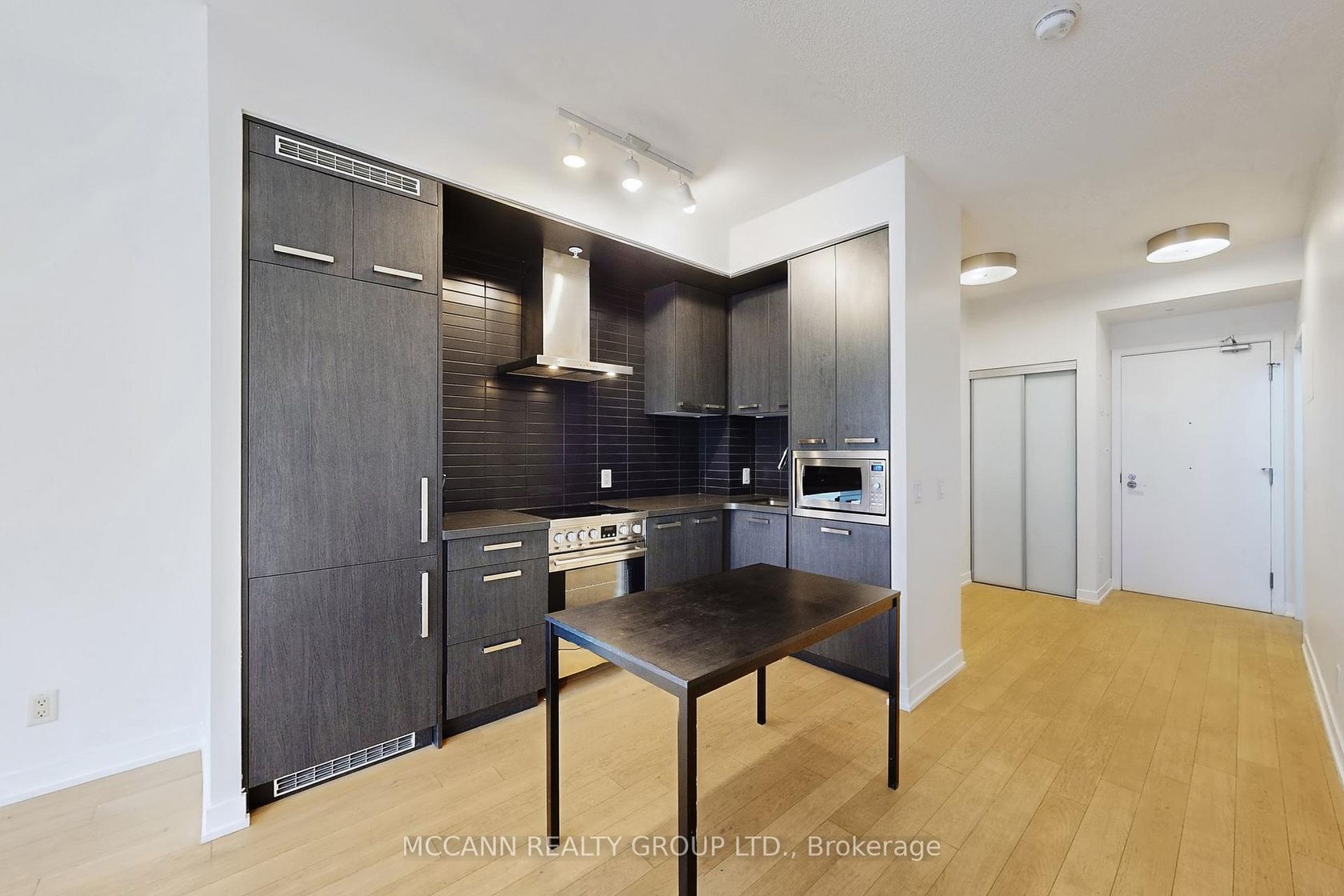 Stunning 1-bedroom + den, 2-bath suite in the heart of the Canary District. This bright, modern home features floor-to-ceiling windows, 9 ft ceilings, hardwood throughout, a walk-in closet in the primary bedroom, and a private balcony perfect for morning coffee or evening wind-downs. The open-concept kitchen is both stylish and functional, offering built-in stainless steel appliances, and custom cabinetry-ideal for cooking and entertaining. Thoughtfully designed with spacious rooms, well-appointed bathrooms, and true move-in readiness. Includes unlimited high-speed Beanfield internet for complete downtown convenience. Residents enjoy exceptional amenities: a full fitness centre, rooftop terrace, games room, party room, bike storage, and guest suites. Steps to TTC, restaurants, shops, cafes, parks, and a vibrant community atmosphere. The Canary District offers unmatched access to the Cooper Koo YMCA, Corktown Common, scenic trails, and nearby Leslieville and the Distillery District. Perfect for professionals, fitness lovers, and anyone seeking a modern, connected Toronto lifestyle. Select photos have been virtually staged to showcase the potential of the space.