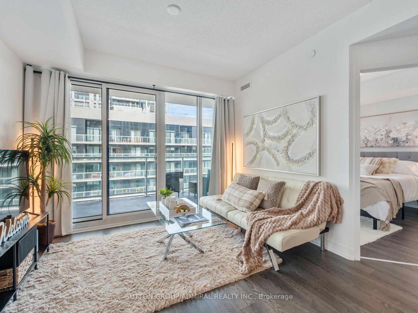 Welcome to Rodeo Drive Condos, located in the heart of the Shops at Don Mills-Toronto's premier open-air lifestyle destination. This corner unit offers a rare combination of modern elegance and convenience, featuring 2 bedrooms + den, 2 bathrooms, and two private balconies. The extra-large wraparound balcony spans the width of the suite, offering unobstructed panoramic city views, including the CN Tower and gorgeous sunsets. The second bedroom enjoys its own private balcony for a quiet retreat.Inside, this home is upgraded from the original builder finishes, showcasing Miele stainless steel appliances (built-in oven, cooktop, and fridge), marble countertops in both bathrooms, and laminate wood flooring throughout, including the bedrooms. The open-concept floor plan, floor-to-ceiling windows, and 9-foot ceilings create a bright, airy space ideal for entertaining or relaxing.Residents enjoy exceptional building amenities including a 24-hour concierge, fitness centre, outdoor pool, and beautifully designed social spaces. Free visitor parking and spacious resident parking spots add everyday convenience.The location is unbeatable-steps to Shops at Don Mills, with its mix of high-end restaurants, cafes, Metro grocery, LCBO, banks, boutiques, and free EV charging. This is one of midtown Toronto's most walkable neighbourhoods, offering an ideal blend of community feel and city energy. Just minutes to Highways 401, DVP, and 404, and with excellent TTC service nearby, commuting is easy. The Eglinton Crosstown LRT and subway connections at Fairview Mall and Lawrence East provide quick links across the city. A short 15-20-minute drive to downtown makes this location perfect for professionals and urban explorers alike.