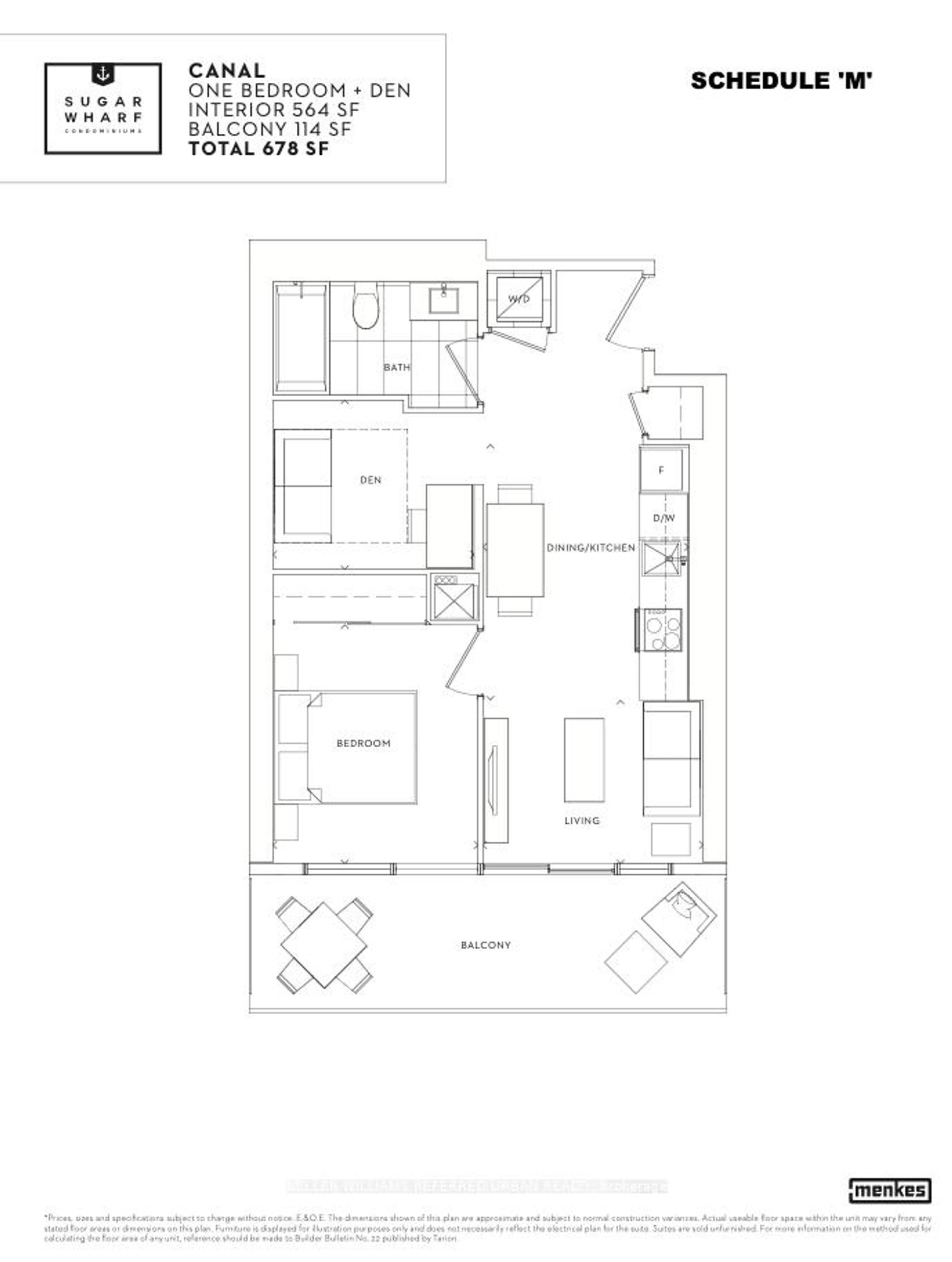 Spacious 1+Den Condo at Sugar Wharf, 138 Downes Street. This 678 sq ft suite (564 interior +114 balcony) features a functional layout with a bright living area, a den perfect for a home office or guest space, and a spacious balcony to enjoy the view. With sleek finishes, stainless steel appliances, and all the essentials for modern living, this unit offers comfort and convenience in one of downtowns most connected locations, just steps to shops, dining, transit, and more.