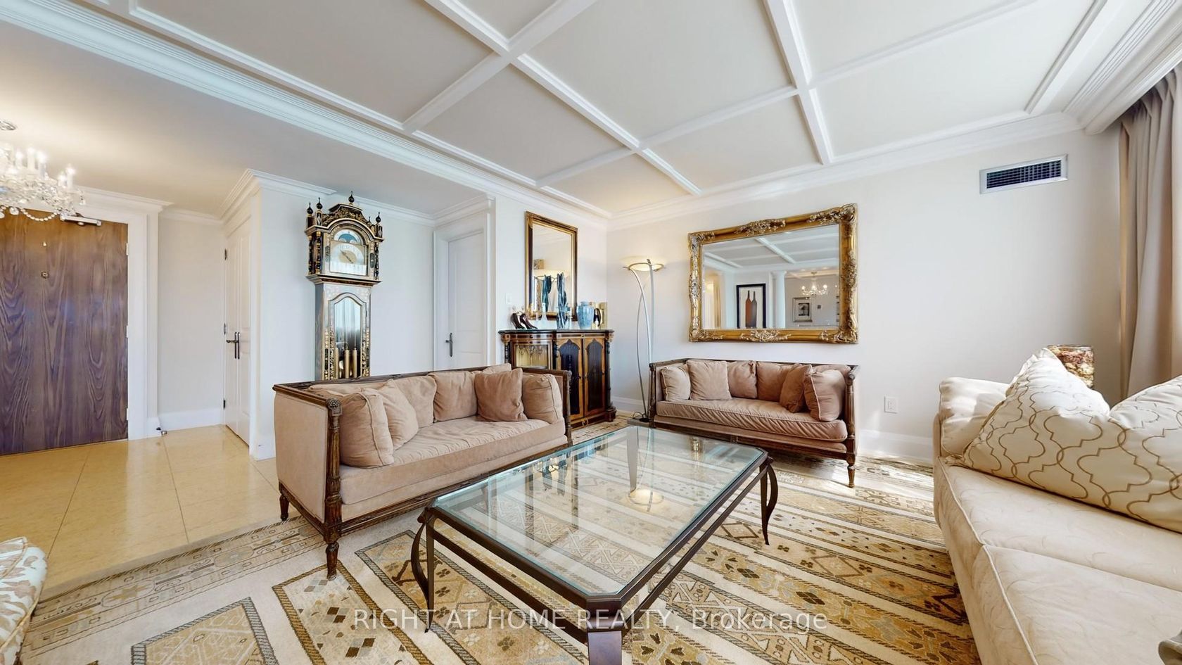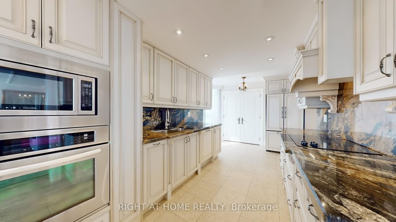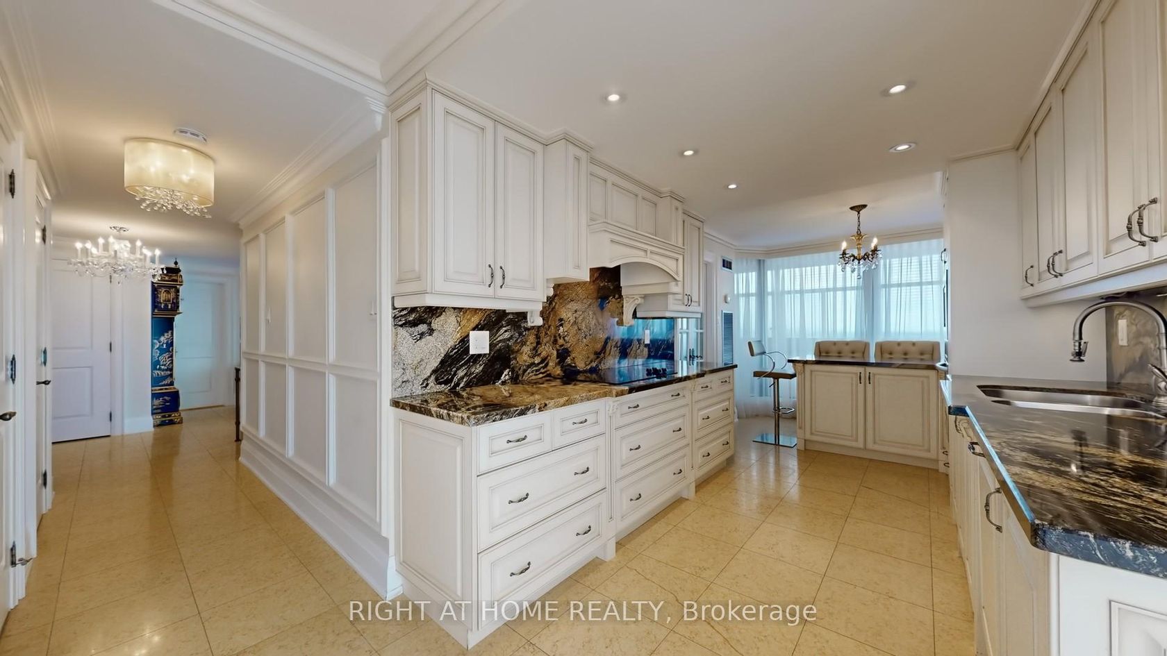 One of the Largest and Most Beautifully Renovated Suites in the Building. Welcome to this exquisitely updated 2-bedroom plus den/office, 2-bathroom suite offering approximately 2,000 sq. ft. of bright, elegant living space with unobstructed corner unit south-facing views a true bungalow in the sky on the sub-penthouse 28th floor. The grand foyer with a double-door closet leads into spacious living and dining areas, perfect for entertaining or relaxing. Large windows fill the space with natural light and frame stunning east, south and west views. Featuring waffle ceilings and gypsum crown moulding, Jerusalem stone flooring, custom solid wood doors, and rich draperies throughout, this home radiates warmth and elegant sophistication. A full-sized dining room with custom built-in cabinetry connecting to a sun-filled quartz solarium, ideal for lounging or working from home. The gourmet kitchen is beautifully designed with granite countertops and backsplash, under-cabinet lighting, extensive custom cabinetry, large floor to ceiling window, and high-end built-in appliances including a paneled double-door fridge, cooktop, microwave/oven combo, and paneled dishwasher. The spacious primary suite offers a reading nook, desk area, generous cabinetry, a large custom walk-in closet, and a luxurious ensuite with Perrin & Howe Mayfair hardware, custom slab travertine heated floor to ceiling finishes, double-sinks, travertine vanity and shelving, steam sauna shower, with a connecting private toilet and bidet. The second bedroom includes a double closet and is perfect for guests or family. An in-suite locker with built-in shelving adds valuable storage space. Located steps from transit, top schools, parks, and shops, this home offers ultimate convenience. Maintenance fees include all utilities, including Rogers cable TV. Two parking spaces are included.