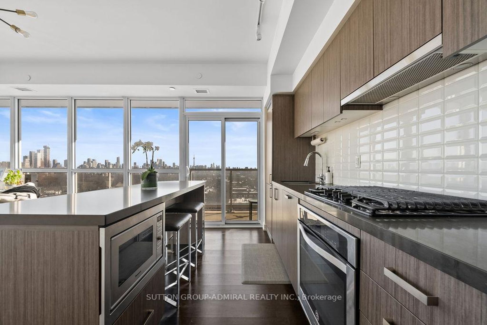 A sun-filled corner residence with sweeping south and southeast exposure, offering abundant natural light through expansive floor-to-ceiling windows throughout. Approximately 865 sq. ft. of thoughtfully planned interior living space is complemented by a rare 316 sq. ft. wraparound terrace, creating an impressive 1,181 sq. ft. of total living space ideal for both every day comfort and entertaining. The well-designed layout includes two bedrooms plus a versatile den, two full bathrooms, and hardwood flooring throughout. The open-concept kitchen is finished with integrated stainless steel appliances and a gas cooktop, making it equally suited for daily use and hosting. Step out to the oversized balcony with a gas line and BBQ, providing seamless indoor-outdoor living and unobstructed open views. Additional features include custom closet built-ins, premium parking, and a locker conveniently located adjacent to the parking space, offering both comfort and practicality. This intimate, luxury boutique building delivers a refined living experience with full-service amenities while maintaining a quieter, more exclusive atmosphere than larger towers. Amenities include 24-hour concierge service, a well-equipped fitness centre with separate saunas, private theatre, library and study spaces, billiards and party rooms, guest suites, and a roof top infinity pool with panoramic lake and city skyline views. Set within the Casa Loma and Forest Hill corridor, the location offers an exceptional lifestyle with direct subway access at St. Clair West, walkable cafés and fine dining, curated local shops, and immediate access to ravine trails, parks, and the historic Casa Loma grounds. A rare opportunity to enjoy luxury boutique condominium living in one of Toronto's most established and prestigious neighbourhoods.
