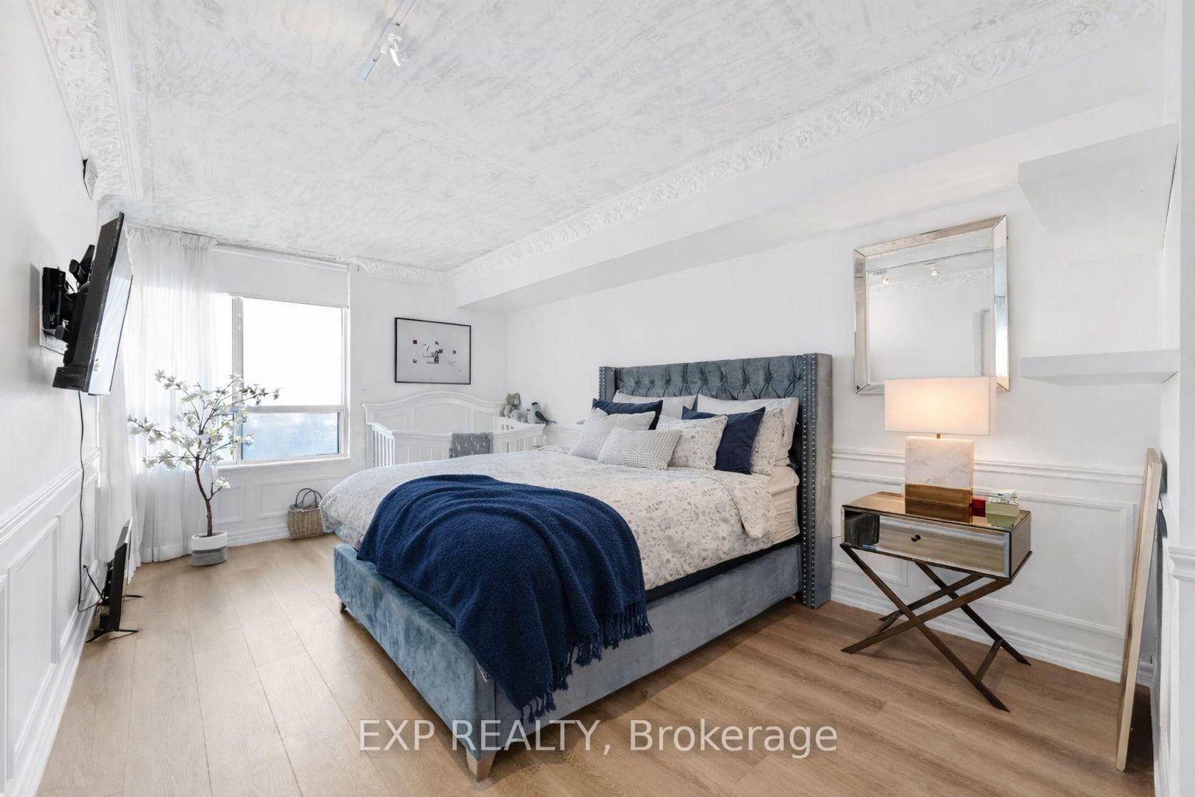Experience boutique condo living at the highly regarded Crystal Towers, ideally located at 2 Covington Rd in the heart of Englemount-Lawrence. This spacious 2-bed, 2-bath residence offers a bright, functional layout in one of Toronto's most established and walkable neighbourhoods. Boasting 938 sq. ft. of interior space plus a private balcony, this beautifully updated suite features an open-concept layout with 9-ft ceilings and oversized windows with unobstructed eastern exposure, filling the home with natural morning light and skyline views. Updates include new flooring (2025), freshly painted walls, wainscoting & crown mouldings in crisp white, and custom drapery throughout, adding a polished, designer touch. The split-bedroom layout ensures privacy ideal for families, guests, or a home office. The primary bedroom offers a walk-in closet and a fully renovated ensuite (2025) with a modern vanity, while the 2nd bath was also remodelled in 2025 with contemporary finishes. A full-size Samsung front-load W/D adds convenience and move-in-ready appeal. The renovated kitchen (2025) features modern finishes, ample storage, and stainless steel appliances, perfect for everyday living and entertaining. Crystal Towers is a well-managed, amenity-rich building with 24-hr concierge, indoor parking, Sabbath elevator, fitness centre, indoor pool, sauna, party room, and media/theatre room. In a true walker's paradise, this home is steps to Lawrence Plaza (Metro, LCBO, Shoppers Drug Mart) and the vibrant Kosher Corridor (United Bakers Dairy, Bubby's NY Diner, Richmond Kosher Bakery). Families enjoy proximity to Ledbury Park ES/MS and Bialik Hebrew Day School, while commuters have quick access to Allen Rd, Hwy 401, and TTC transit.