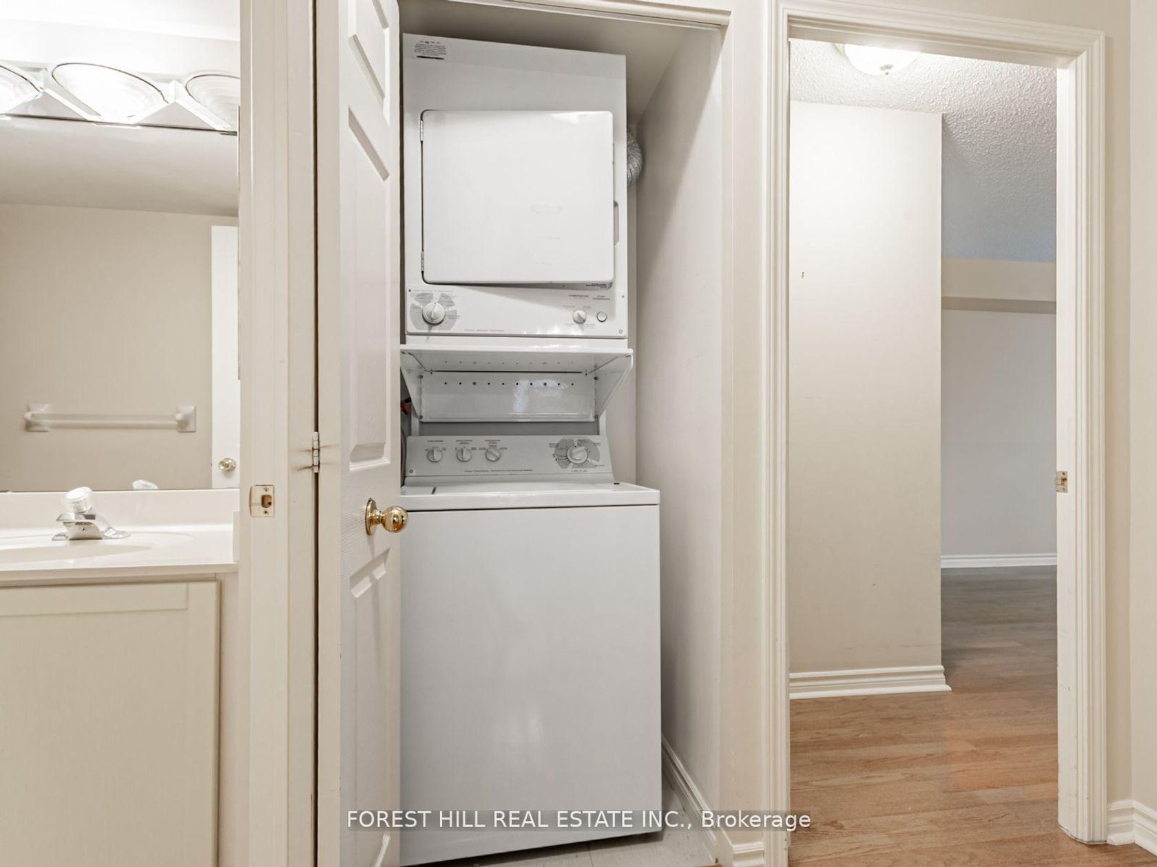 Welcome to this bright and spacious two-bedroom, two-bathroom corner suite offering an ideal blend of comfort, functionality, and convenience. Nestled in a highly sought-after neighbourhood, this beautifully maintained home overlooks lush, tree-lined views creating a sense of calm and privacy rarely found in city living. The expansive primary bedroom easily accommodates a king-sized bed and features a large walk-in closet and a private four-piece ensuite bathroom, providing the perfect retreat at the end of the day. The second bedroom is equally generous in size-ideal for guests, a home office, or a den-offering flexibility for a variety of lifestyles. The thoughtful floor plan maximizes both living and storage space, featuring a large front hall closet, hardwood flooring, and California shutters. The eat-in kitchen is bright and functional, offering plenty of counter space and cabinetry, and walks out to a private balcony-perfect for morning coffee or evening relaxation while enjoying tranquil, leafy views. This residence includes a prime parking spot and locker, adding extra value and convenience. The well-managed building offers an impressive list of amenities, including 24/7 concierge service, an outdoor pool, large main-floor exercise room, sauna, party room, guest suite, Sabbath elevator, and ample visitor parking for friends and family. Located in a prime central location, residents enjoy easy access to transit, Lawrence Plaza, restaurants, cafes, shops, and essential services-all within walking distance. This desirable community combines urban convenience with a welcoming neighbourhood feel, making it an excellent choice for professionals, downsizers, and anyone seeking a comfortable and secure lifestyle in the heart of the city. Discover the perfect balance of space, comfort, and location-your next chapter begins here.
