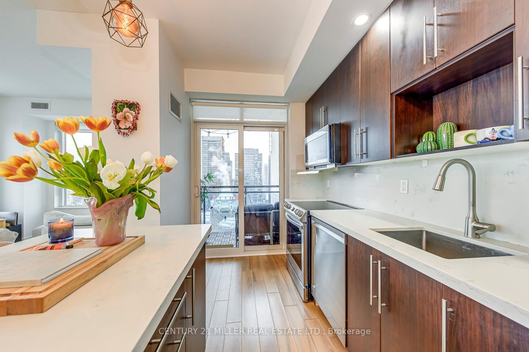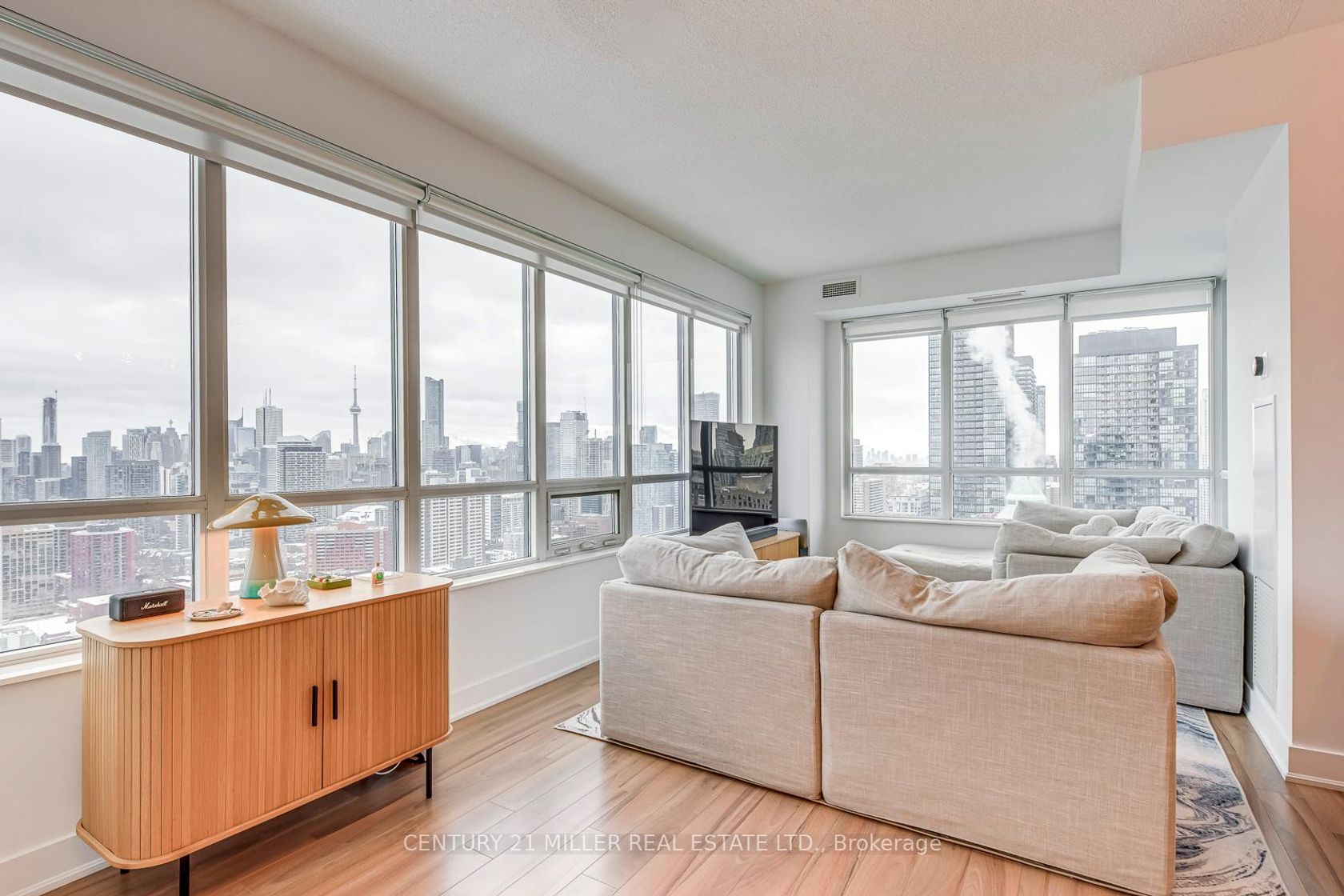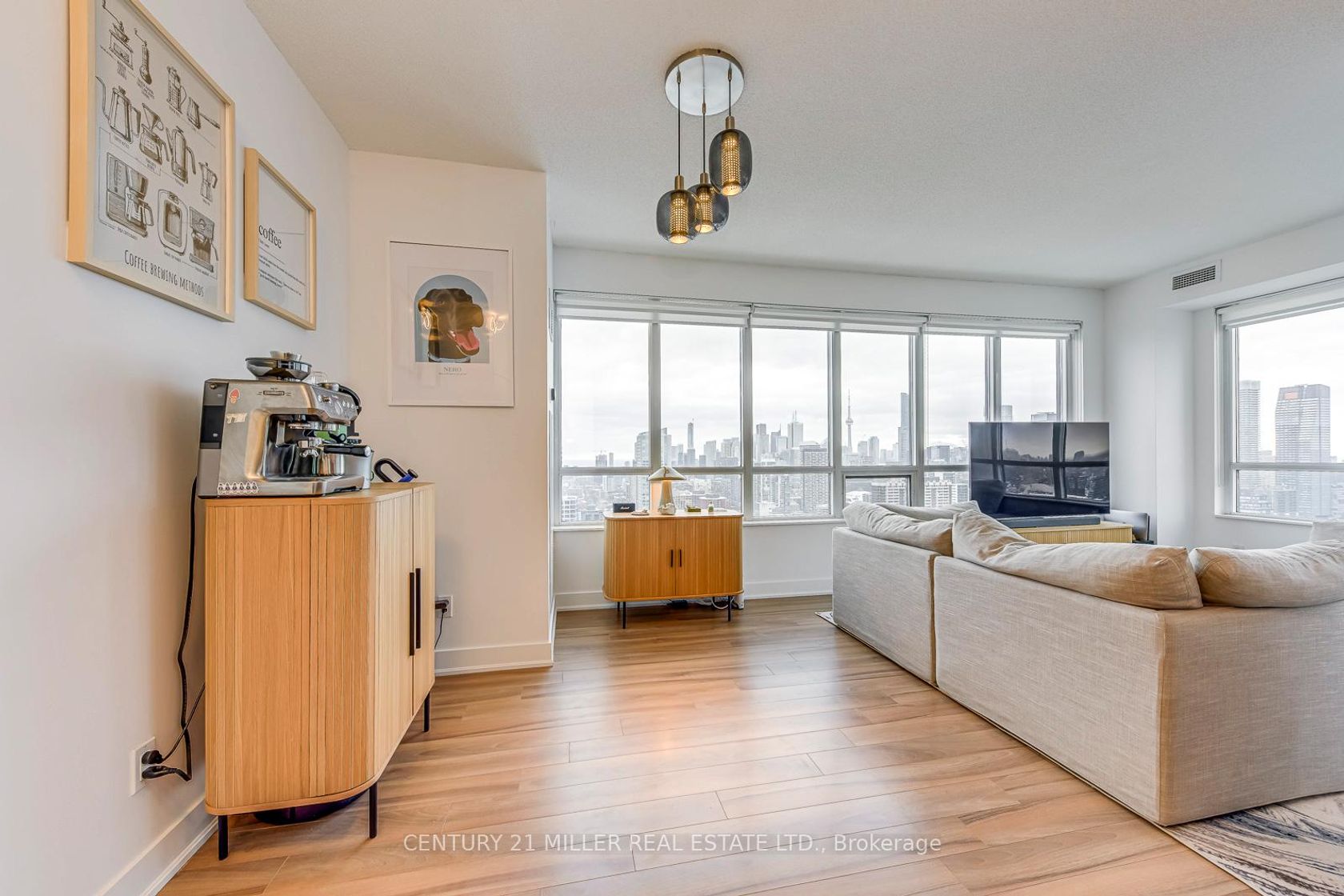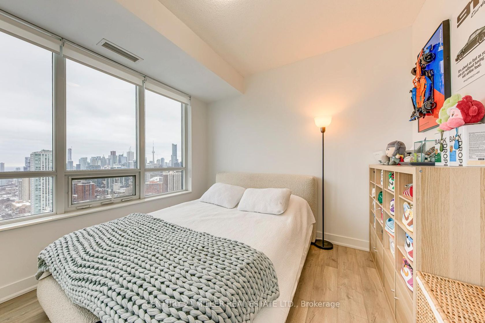 One-of-a-Kind Sub-Penthouse Corner Suite With Iconic CN Tower & Lake Views! Experience elevated downtown living in this rare south-facing sub-penthouse residence featuring breathtaking, unobstructed views of the CN Tower, city skyline, and Lake Ontario from every room. Soaring 10-foot ceilings and expansive wrap-around windows flood the space with natural light, creating a bright and sophisticated atmosphere high above the city. The thoughtfully designed 2-bedroom, 2-bathroom layout offers exceptional flow and functionality. The open-concept living and dining area seamlessly connects to a private balcony - perfect for morning coffee or evening sunsets. The gourmet kitchen features a large breakfast island, quartz countertops, and brand-new stainless steel appliances (recently upgraded by the current owners), combining modern style with everyday practicality. The spacious primary suite includes custom built-in cabinetry and a spa-inspired ensuite with a glass standing shower. Premium wood flooring runs throughout, enhancing the home's clean, contemporary aesthetic. Located in a LEED-certified energy-efficient building with 24/7 concierge service, excellent amenities, visitor parking, and a premium parking space included with EV charger. Steps to the subway, Yorkville shopping, restaurants, groceries, parks, Rosedale Ravine, and easy access to the DVP. A true sky-level retreat in one of downtown's most prestigious and connected locations.