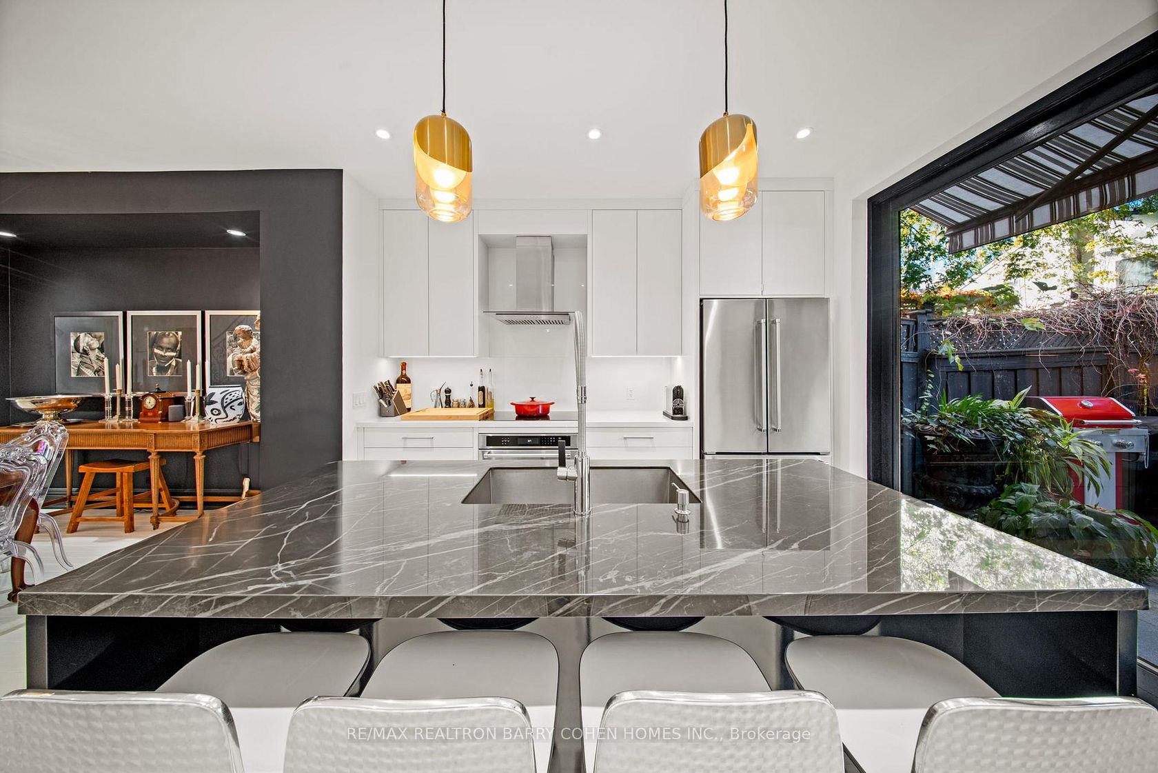 Welcome to 42 Berryman Street, a rare designer's residence built in 2003 and fully renovated in 2020, tucked away in the heart of Yorkville right off of Hazelton Ave. This fully customized home combines timeless Victorian architecture with contemporary European elegance, offering an unparalleled lifestyle for the most discerning buyer. The main floor is defined by a dramatic open-concept layout with soaring ceilings, a Bianco D'Italia porcelain feature wall with linear fireplace, and bespoke wrought-iron staircase detailing. Natural light pours through expansive windows and skylights, illuminating every refined finish. At the heart of the home, the chef's kitchen showcases full-height custom cabinetry, premium appliances, and a Sahara Noir quartzite waterfall island. Sleek pendant lighting and direct walkout access to a private courtyard make this space ideal for both everyday living and sophisticated entertaining. Upstairs, the vaulted primary suite offers a serene retreat with custom built-ins and a spa-inspired ensuite featuring a floating double vanity, dramatic marble shower. Additional bedrooms provide comfort and versatility, complemented by elegant baths finished with curated stone and designer fixtures. The fully finished lower level extends the living space with a flexible family room, private office, or gym complete with custom built-ins and a linear fireplace. Outdoors, a landscaped, maintenance-free courtyard offers a true urban sanctuary with granite tiling, privacy fencing, gas BBQ station-perfect for alfresco gatherings. Every detail at 42 Berryman has been carefully curated to deliver a residence of exceptional style, comfort, and sophistication. Seller is willing to arrange and cover the cost of one (1) rental parking space at Hazelton Lanes for 12 months, for the buyer's exclusive use.