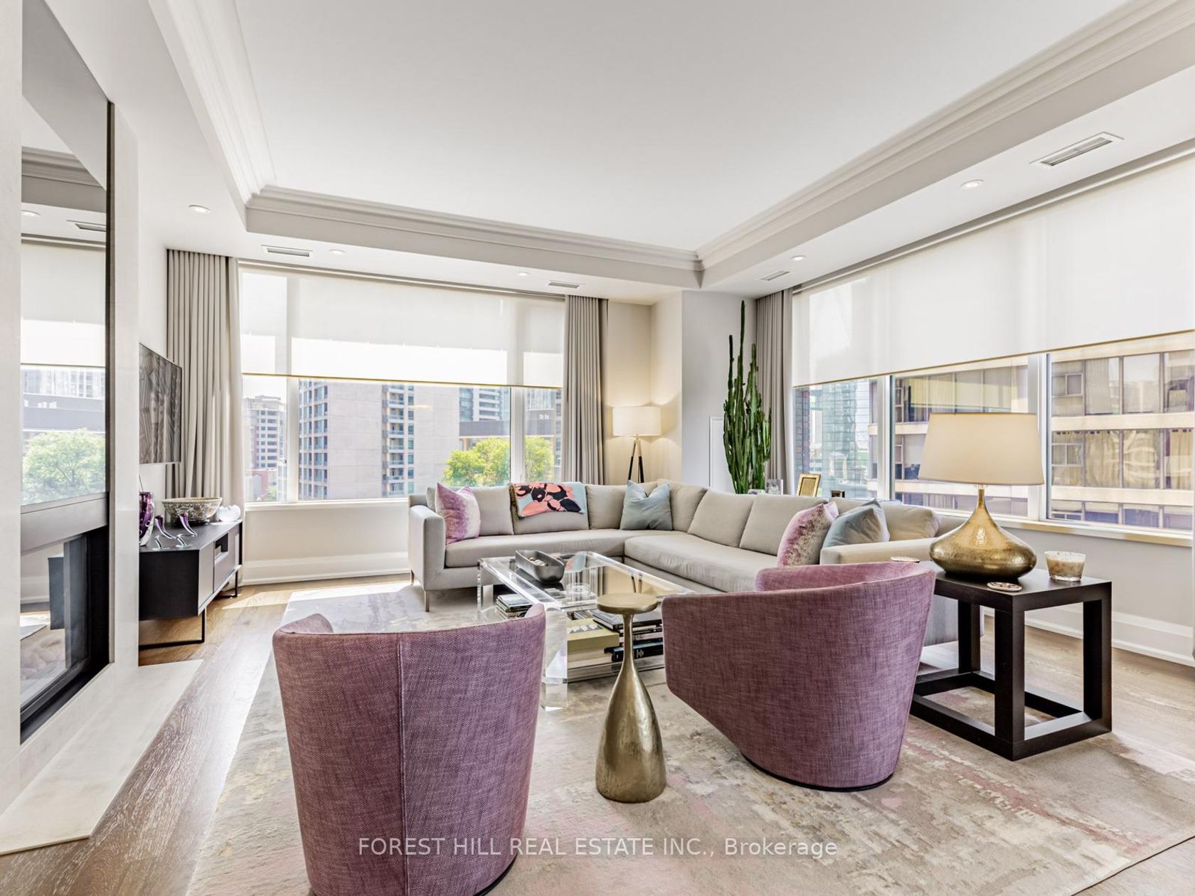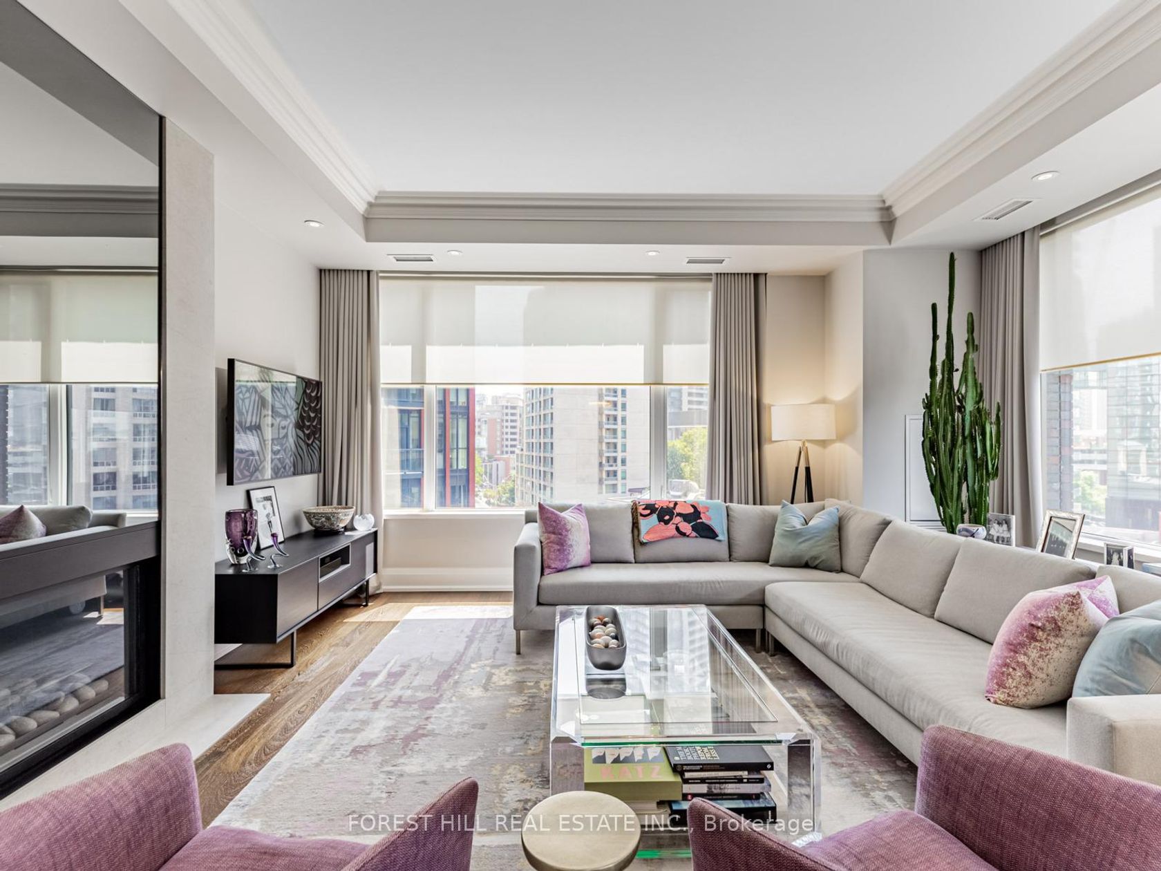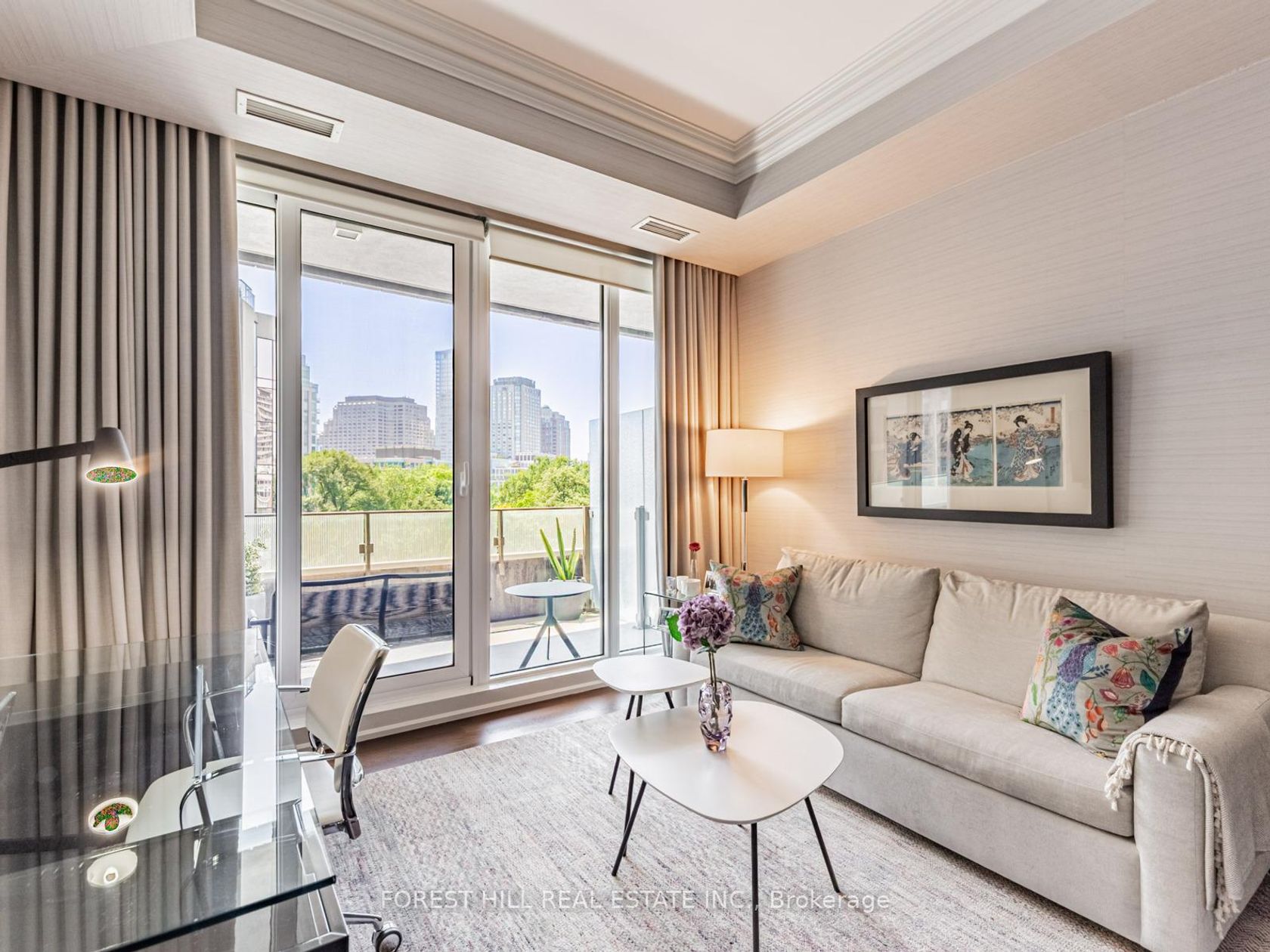 Immerse yourself in refined luxury at The Florian, one of the City's most prestigious full-service residences. This sun-drenched suite offers a thoughtfully designed layout featuring two spacious bedrooms with direct balcony access, two spa-like bathrooms, and a chef's inspired kitchen with breakfast bar. The open concept living and dining area is anchored by a gas fireplace and bathed in natural sunlight, flowing seamlessly onto a generous south facing balcony. Custom built-ins throughout the suite provide abundant, well integrated storage, adding everyday ease to elegant living. A large ensuite laundry room completes the space. Renowned for exceptional service The Florian offers 24 hour concierge, valet parking, and many upscale amenities including a state of the art fitness centre, a saltwater pool and a outdoor terrace. This is hotel style living at its finest and every detail is designed for an elevated lifestyle. This highly sought after residence is ideally located in prime Yorkville, just steps from a curated collection of exclusive boutiques and fine dining, inviting you to indulge and explore.