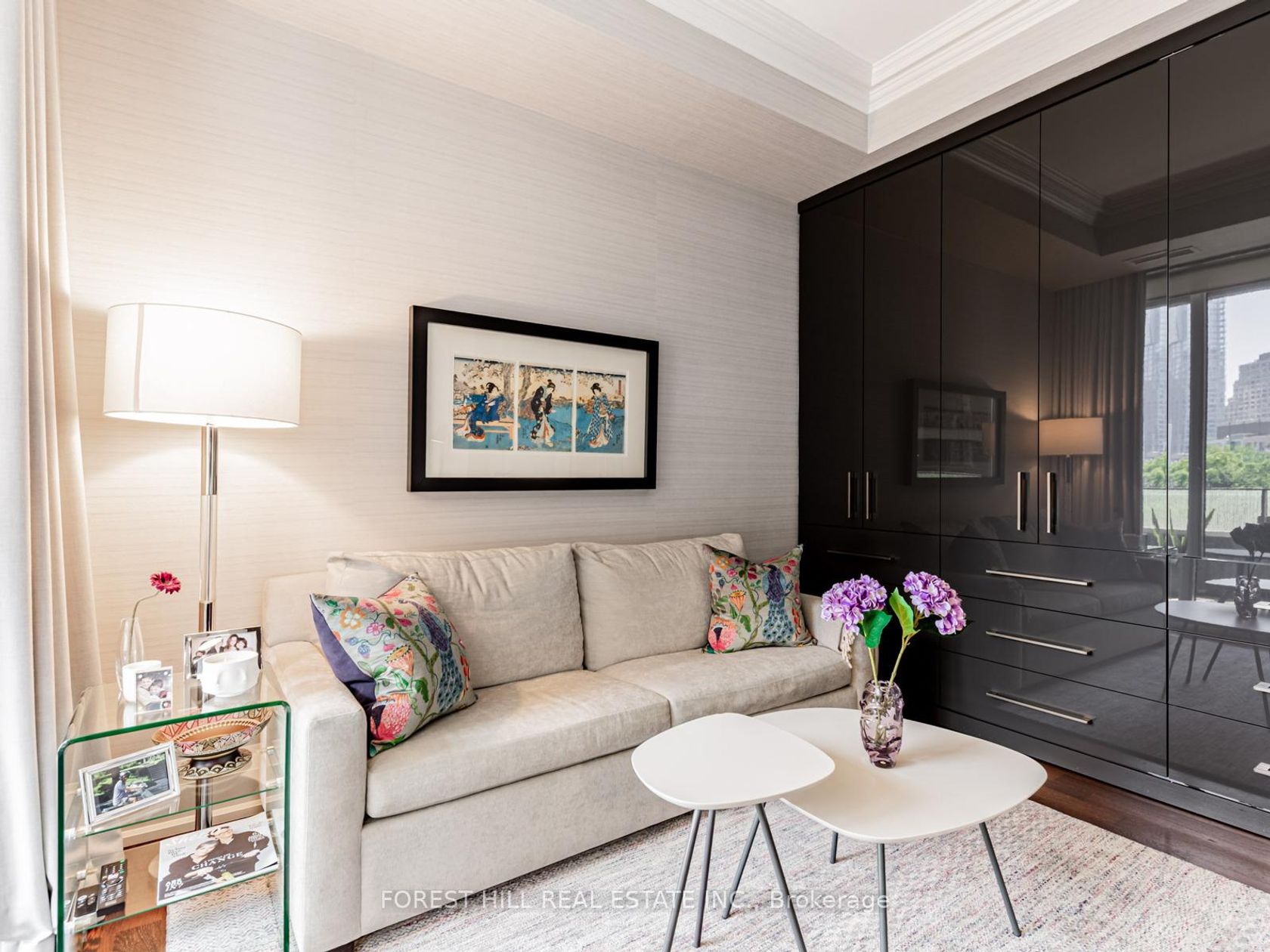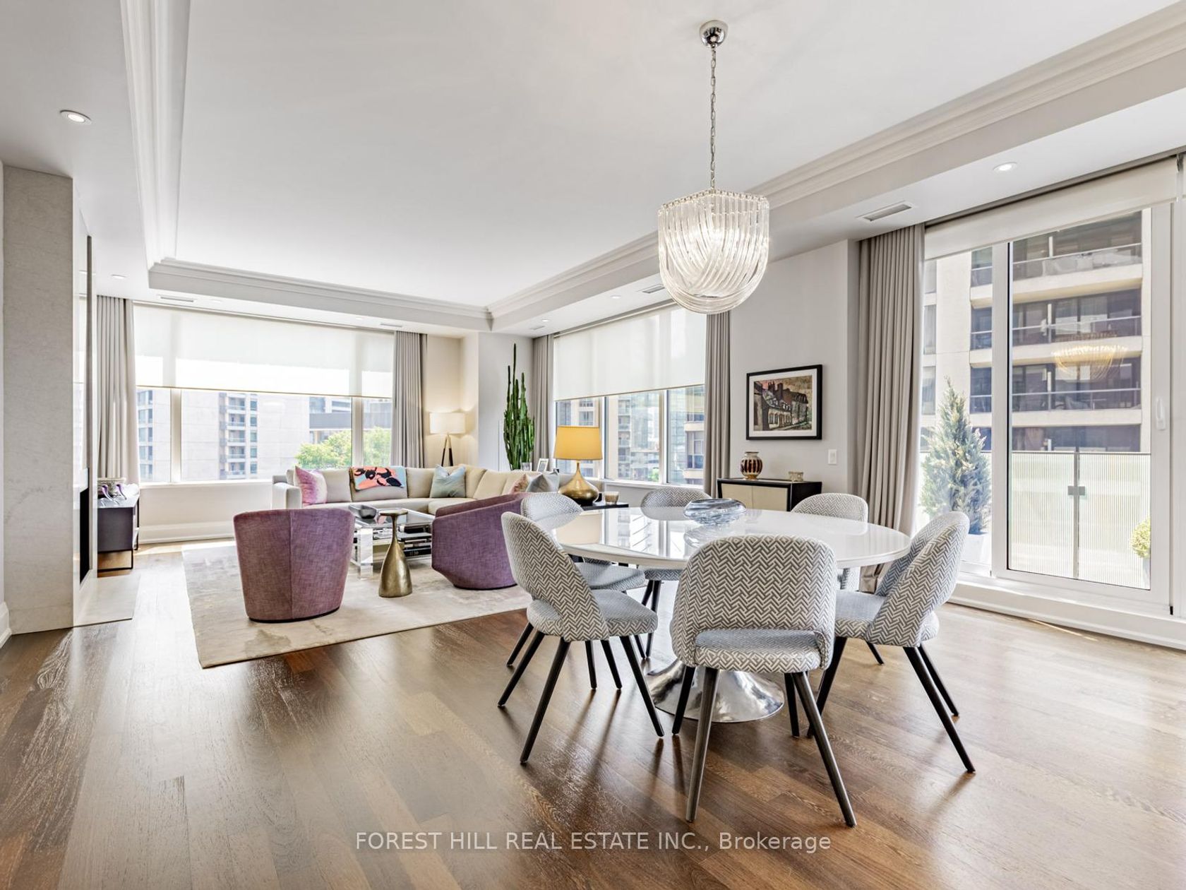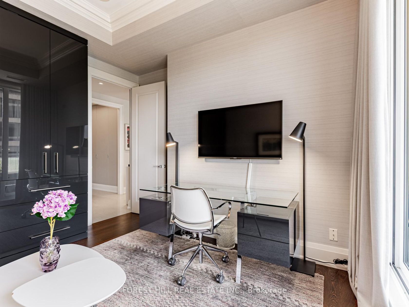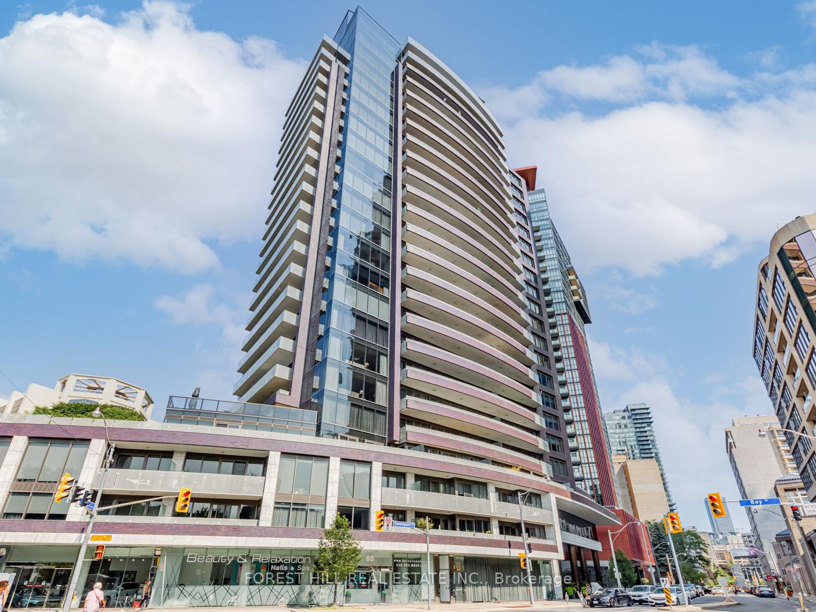 Immerse yourself in refined luxury at The Florian, one of the City's most prestigious full-service residences. This sun-drenched suite offers a thoughtfully designed layout featuring two spacious bedrooms with direct balcony access, two spa-like bathrooms, and a chef's inspired kitchen with breakfast bar. The open concept living and dining area is anchored by a gas fireplace and bathed in natural sunlight, flowing seamlessly onto a generous south facing balcony. Custom built-ins throughout the suite provide abundant, well integrated storage, adding everyday ease to elegant living. A large ensuite laundry room completes the space. Renowned for exceptional service The Florian offers 24 hour concierge, valet parking, and many upscale amenities including a state of the art fitness centre, a saltwater pool and a outdoor terrace. This is hotel style living at its finest and every detail is designed for an elevated lifestyle. This highly sought after residence is ideally located in prime Yorkville, just steps from a curated collection of exclusive boutiques and fine dining, inviting you to indulge and explore.