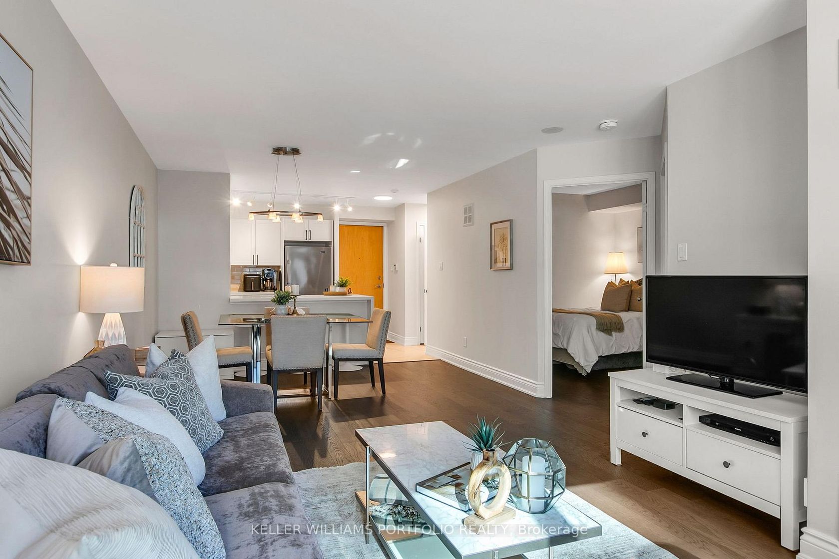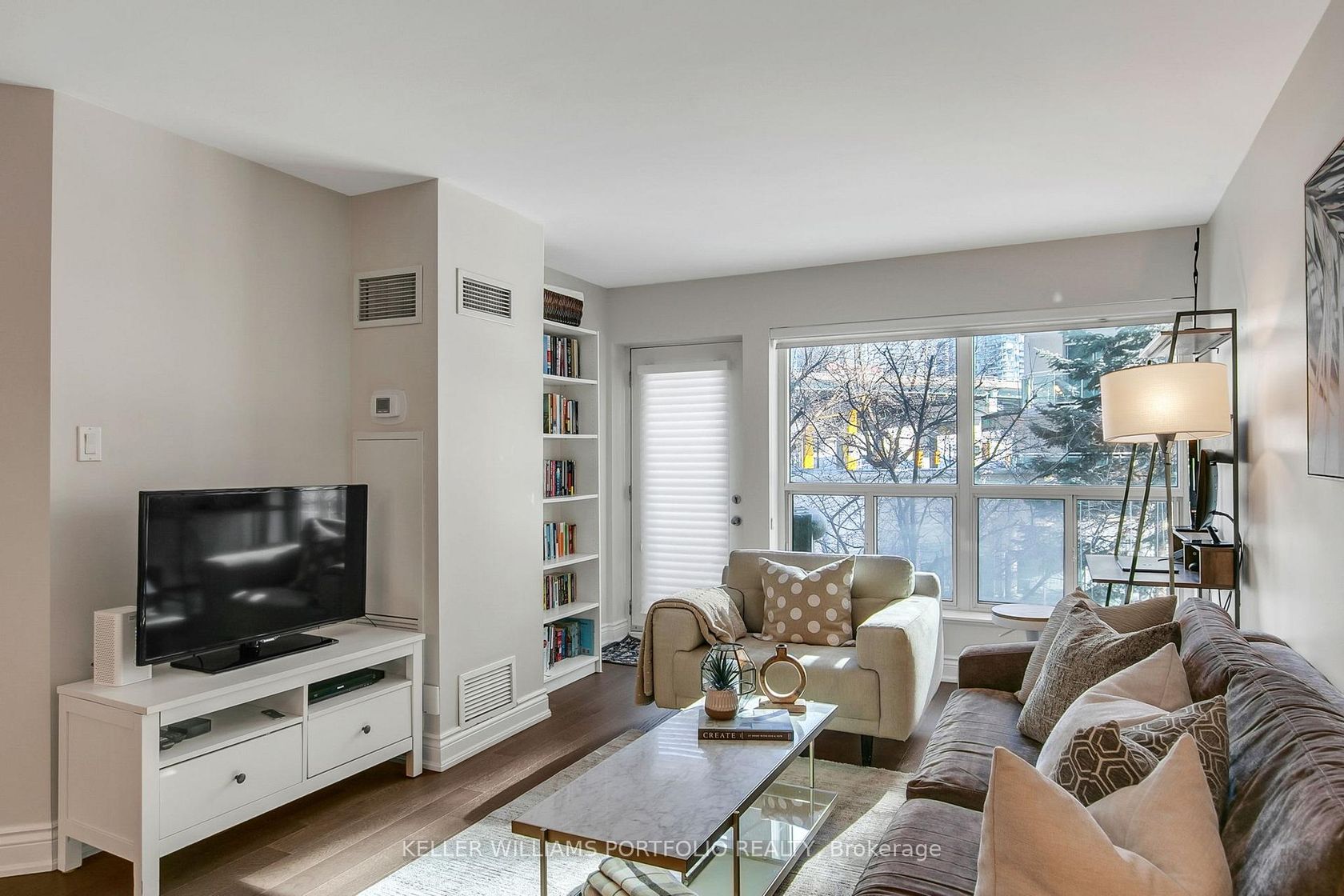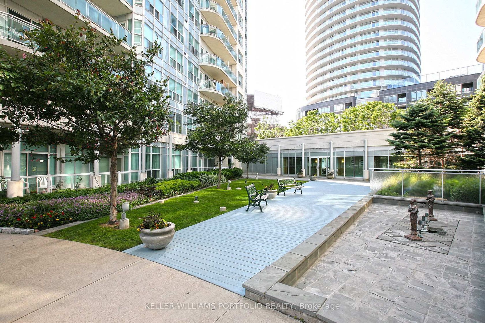 Set in the heart of Toronto's vibrant Harbourfront, this beautifully renovated suite offers the flexibility and ease of true downtown living. Designed for both everyday comfort and entertaining, the open-concept layout with rich hardwood floors and quartz waterfall breakfast bar creates flow between the sleek, modern kitchen and generous dining and living spaces filled with natural light. The oversize enclosed den functions seamlessly as a second bedroom, home office, or guest space, making the home adaptable to changing needs. Enjoy your own private outdoor space, complemented by a primary bedroom with walkout access, offering a welcome sense of calm in the heart of the city. Thoughtfully updated throughout with contemporary finishes and a carpet-free design, this suite delivers both style and practicality in a well-maintained, pet-friendly building, and comes complete with one large locker and an underground parking spot. Residents enjoy a full range of amenities including concierge with 24-hr security, fitness centre, sauna, guest suites, party room and more, while maintenance fees cover all utilities. With transit at your doorstep, waterfront trails, parks, off-leash dog park, shops, restaurants, and seasonal festivals just moments away, this is an opportunity to enjoy an active, connected lifestyle in one of Toronto's most dynamic neighbourhoods.