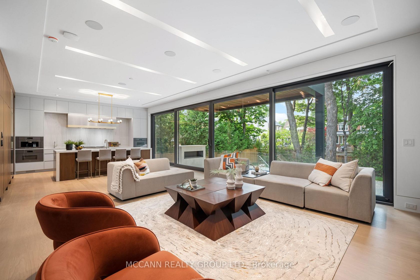 Welcome to this exquisite custom-built 4+2 Bedrm 6 Bathrm home, perfectly situated in the heart of Lawrence Park. Soaring 10ft ceilings, sleek pot lights, and White Oak hardwood flrs throughout. Open Concept living and dining rm creates a spacious environment ideal for entertaining with natural light through the floor to ceiling windows. Living rm boasts a gas fireplace. Dining rm features a wine cellar. Main flr office, complete with smart frosting film on glass offers option for privacy. Grand foyer showcases a walk-in closet with sliding doors, powder rm impresses with designer sink and heated floors. Mudroom off of side entrance with custom closets and bench. Gourmet kitchen is a chefs dream, with built-in Miele appliances, refrigerator, freezer, 6-burner gas range, coffee system, transitional speed oven, and dishwasher. Custom-built center island adorned with luxurious quartzite countertops. Open-concept family room, featuring another fireplace with walk out to deck. Natural light floods the contemporary staircase with skylights overhead. Primary suite offers a serene retreat, complete with a 6-piece ensuite, walk-in closet, gas fireplace, bar with beverage cooler, and speaker system, all overlooking the tranquil backyard. 2nd Bedroom with 4pc ensuite features custom built in closets. 4pc ensuite has caesar stone counter top, tub and heated floors. 3rd & 4th Bedrms offer south facing large windows with shared 3pc ensuite with Custom Vanity w/ Caesar stone Countertop, heated flrs, shower. Mezzanine office with gas fireplace. Lower level offers an expansive rec room, two additional bedrooms (ideal for a gym), 2 3pc bathrms, laundry, and a home theatre. Federal Elevator system. iPort Home Automation System. Hot Tub & Pool. Heated Driveway & Stairs, Front Porch, Rear Deck & Rear Stairs. Camera Security System. Double Car Garage. Sprinkler System. Concrete Deck w/Glass Railing