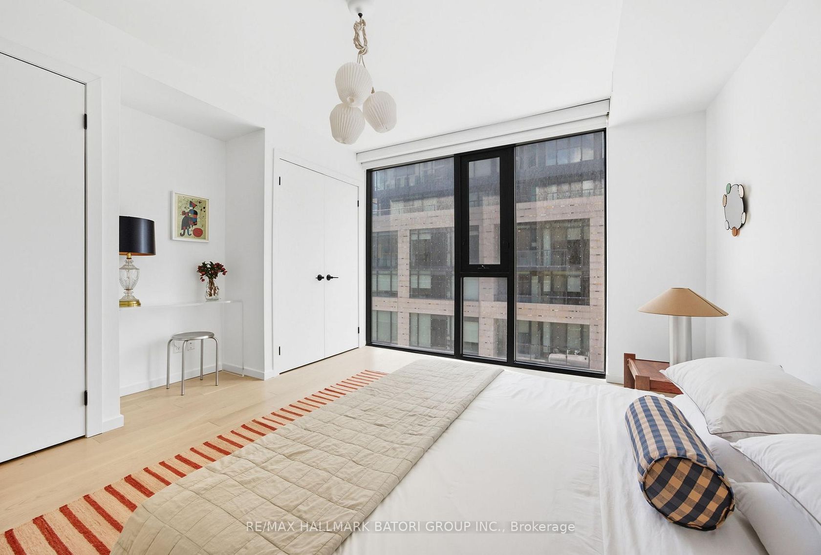 Welcome to Unit 301 at The Cabin Condos, a rare two-storey residence offering over 1,300 sq ft of thoughtfully designed, Scandinavian-inspired living. Set just off Queen Street West, this boutique building delivers a calm, design-driven retreat within one of Toronto's most vibrant neighbourhoods. The main level showcases a clean, minimalist aesthetic with wide-plank hardwood floors, a bright open-concept layout, and a sleek custom kitchen featuring integrated appliances, a gas cooktop, and refined finishes that strike the perfect balance between form and function. A stylish two-piece powder room completes the level. Upstairs, the sun-filled primary suite is framed by floor-to-ceiling windows and includes a walk-in closet and a spa-inspired ensuite with an oversized shower. The second bedroom also features its own ensuite and ample storage. Throughout the home, clean lines and abundant natural light create an airy, contemporary atmosphere. A west-facing balcony with a gas line extends the living space outdoors-ideal for summer evenings and effortless entertaining. The unit also includes stacked parking with a lift, adding rare convenience in this location. Ideally situated near Ossington, Trinity Bellwoods, top restaurants, shops, and transit, yet thoughtfully set back for privacy and quiet, this is urban living at its most refined.