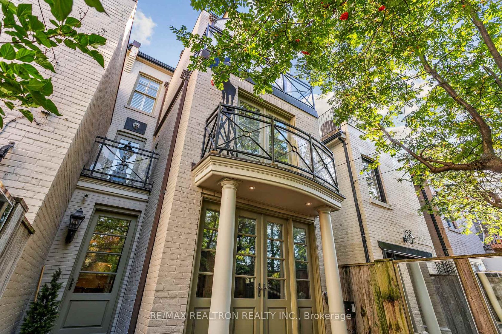 Nestled in the prestigious Yorkville neighbourhood, this exquisite renovated 1880s heritage townhouse masterfully blends the charm of an English country cottage with modern luxury. Showcasing the highest standards of craftsmanship, this three-level residence offers over 2,000 square feet of refined living space, where warmth, character, and European-inspired sophistication abound. The thoughtfully designed interior features antique elm flooring, limestone gas fireplaces, custom millwork and soaring ceilings that flood the home with natural light. Every detail reflects a commitment to timeless quality and elegance. The main floor welcomes you with a gracious foyer leading to a formal living room highlighted by a bay window and limestone fireplace. A bespoke library, complete with intricate millwork and built-ins, opens through French doors onto a balcony overlooking the serene greenery of Ramsden Park. A stylish powder room with imported Parisian wainscoting adds to the charm of the home. The home features a country-style eat-in kitchen, equipped with an iconic AGA stove, walk-in pantry, Belgian blue stone countertops, custom cabinetry, elm ceiling beams, and heated French limestone floors. The adjacent dining and family rooms (or optional guest bedroom) flows into a landscaped, French-inspired garden. The serene primary bedroom features custom built-ins, a walk-in closet. There is a spa-like five-piece bathroom with Carrara marble and limestone. The second bedroom features wood-panelled cathedral ceilings, skylight, and Juliette balcony overlooking treetops, offering a tranquil hideaway. Designed with flexibility in mind, the home accommodates 2 to 4 bedrooms and includes the rare convenience of two-car parking via the laneway. Ideally located just steps from Yorkville's renowned boutiques, fine dining, top-rated schools, parks and has easy access to Rosedale Subway.