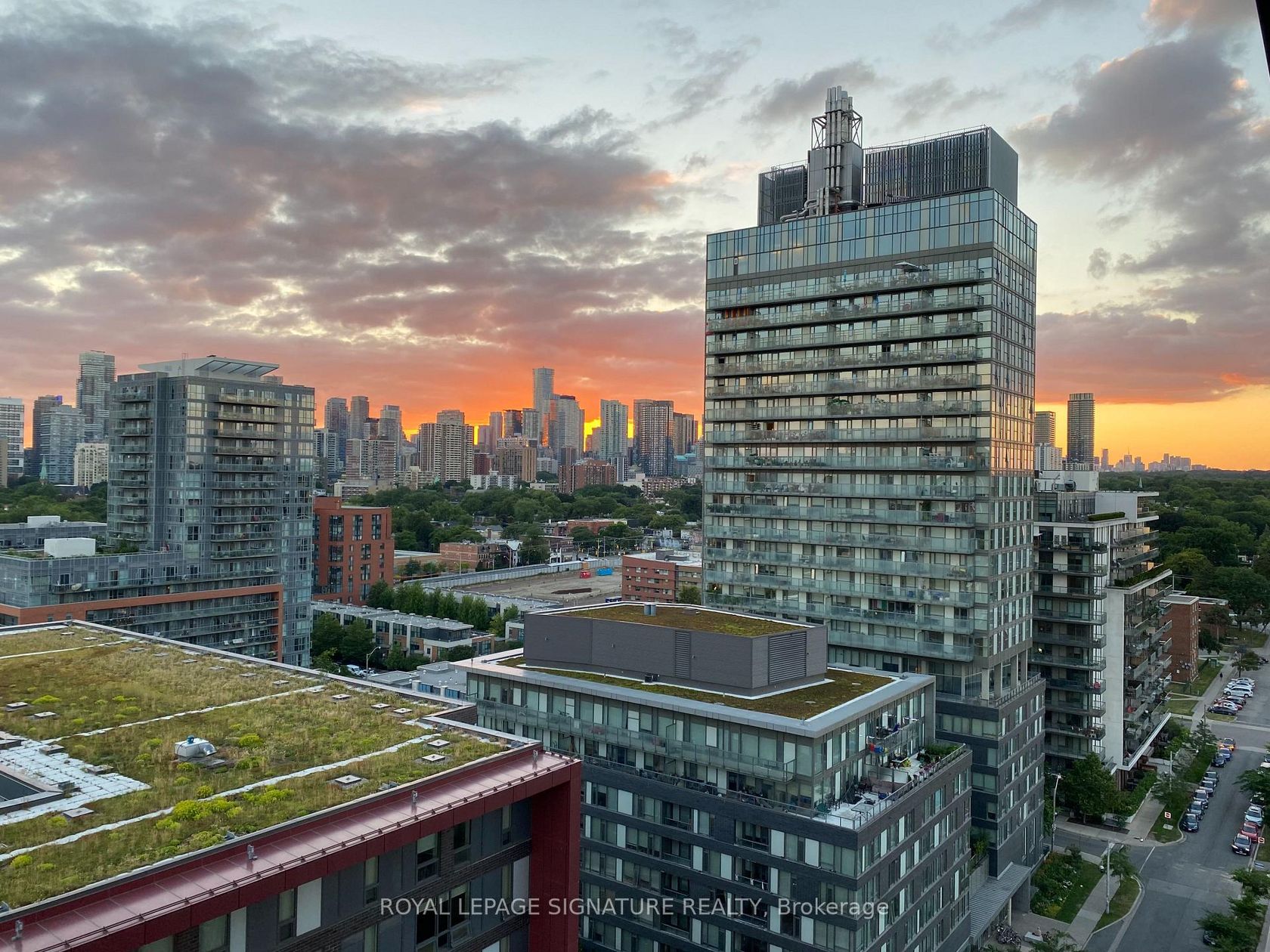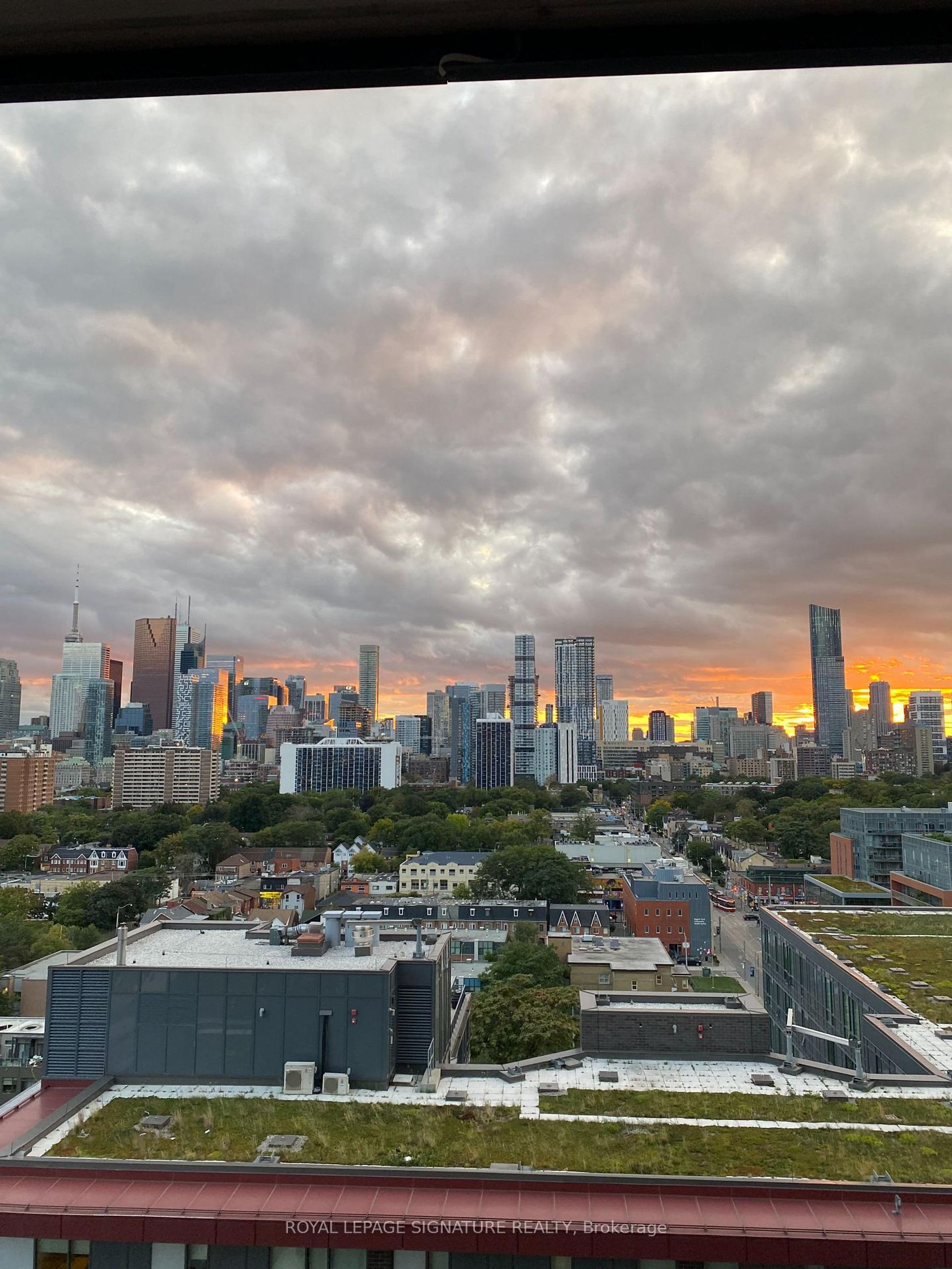 Bright 1+den with two bathrooms, parking, and unobstructed west-facing skyline views.Welcome to Suite 1405 at Paintbox Condos - a well-designed home with 9-foot ceilings and a functional open-concept layout.The living and dining area is filled with natural light and walks out to an oversized balcony - ideal for morning coffee or sunset views across the skyline. The modern kitchen features full-sized stainless steel appliances, generous counter space, ample storage, and a new dishwasher. The spacious primary bedroom offers a private 4-piece ensuite, complemented by a second 3-piece bath for guests or shared living. A large den provides flexibility for a dedicated home office, nursery, or additional living space.Includes 1 parking space, 1 locker, and ensuite laundry. Amenities feature a gym, party room, guest suite, BBQ terrace, theatre room, games room, and lounge.Steps to TTC and minutes to Eaton Centre, Riverdale Park, and the Distillery District, with quick access to the DVP and Gardiner. Move-in ready, functional, filled with natural light and a spectacular view - a space that truly feels like home.