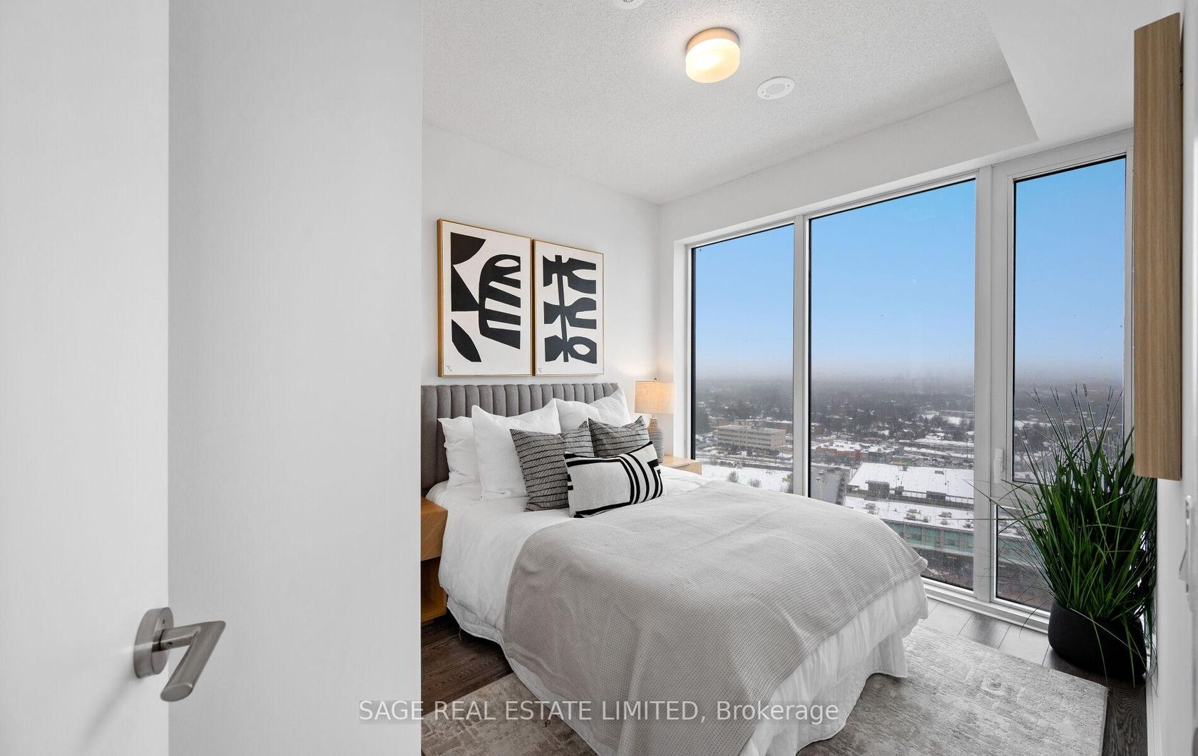 Welcome to this stunning, modern 2+Den condominium offering a highly functional open-concept layout in a newer, well-managed building. Thoughtfully designed for both comfort and style, the unit features two full bathrooms and a spacious den-perfect for a home office, nursery, or guest space. The sleek contemporary kitchen showcases integrated cabinetry and high-end built-in appliances, creating a seamless and sophisticated aesthetic. Floor-to-ceiling windows fill the space with natural light, while the expansive balcony-accessible from both the living room and primary bedroom-offers the perfect setting for relaxing or entertaining. This suite includes parking and a locker for added convenience, along with 24-hour concierge service for peace of mind. Ideally located just steps from Shops at Don Mills, enjoy premier dining, shopping, and everyday essentials right at your doorstep. Walk to schools, the library, parks, trails, and the Don Valley greenbelt. Commuting is effortless with public transit at your door and direct access to Don Mills Station, offering subway connections across the city and convenient routes to Scarborough Town Centre. A short drive brings you to CF Fairview Mall, while quick access to Hwy 401 and the DVP makes getting around the GTA seamless. Surrounded by top-rated schools and everyday conveniences including Metro, McEwan Fine Foods, and Real Canadian Superstore, this vibrant and exceptionally convenient location truly defines urban living at its best. Don't miss this outstanding opportunity!