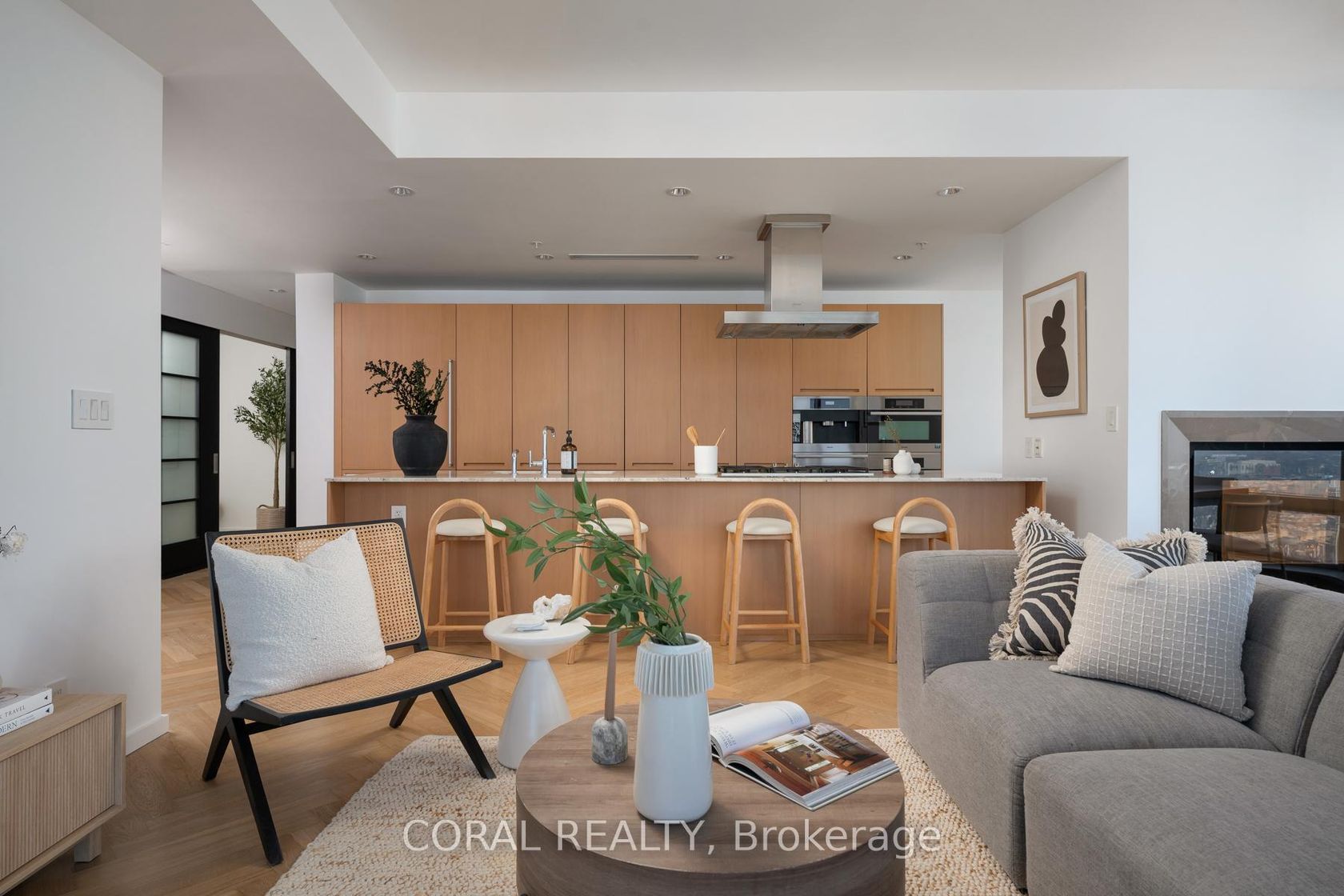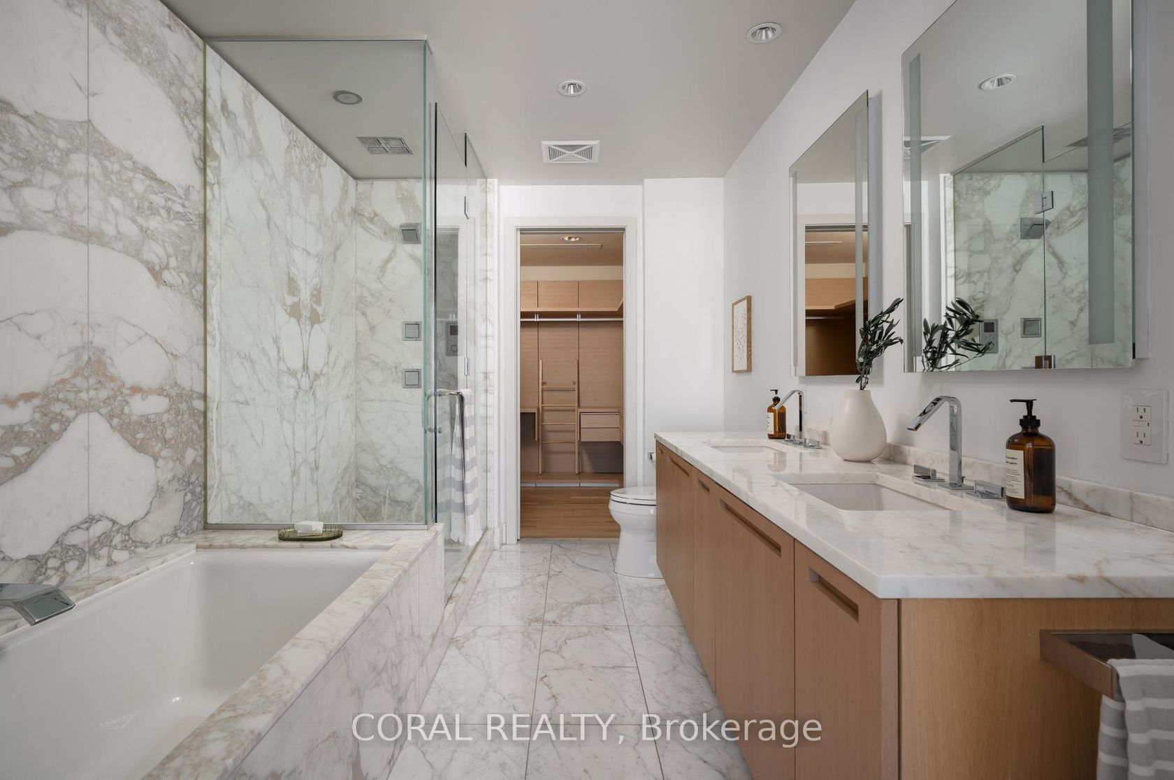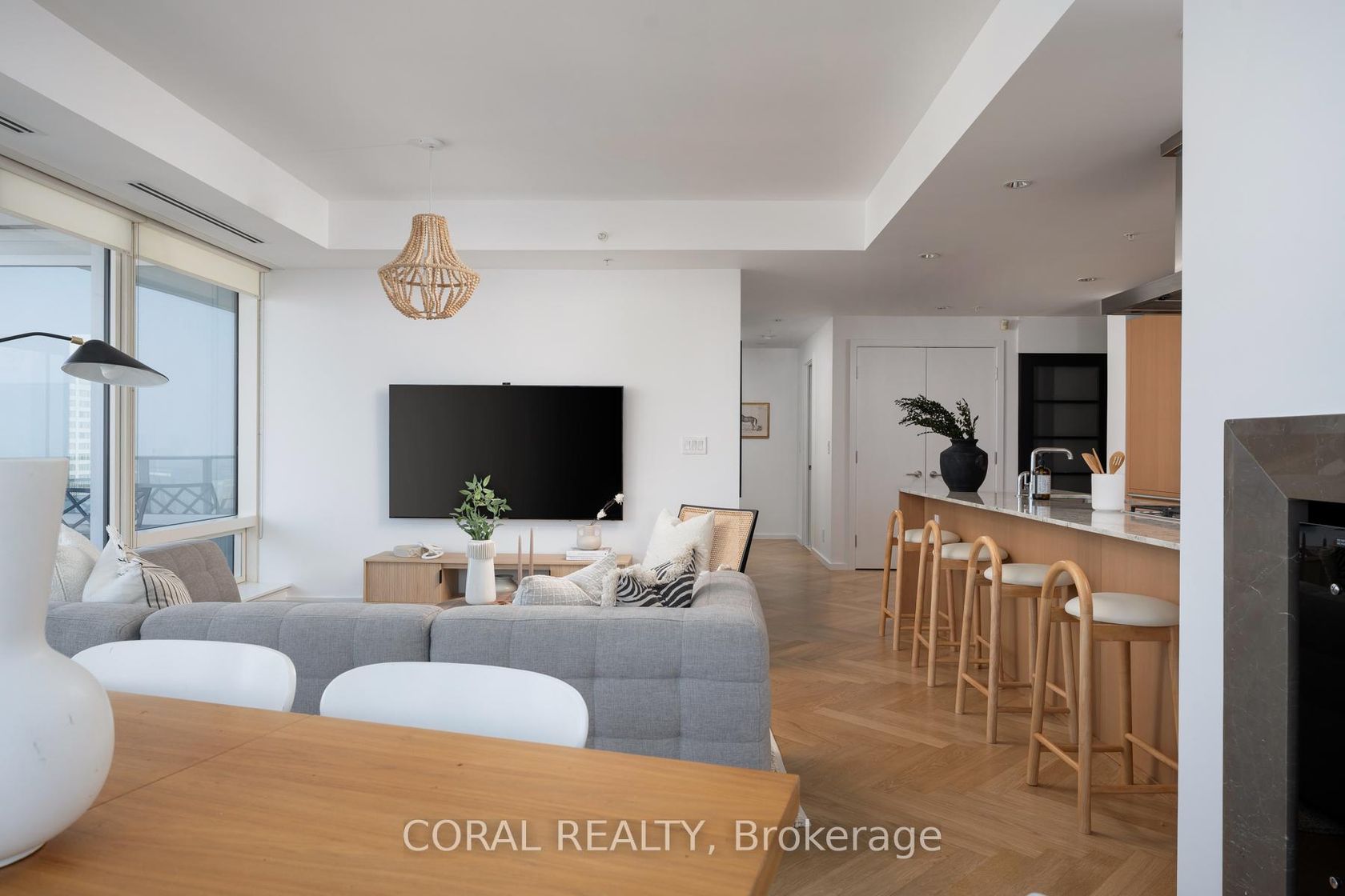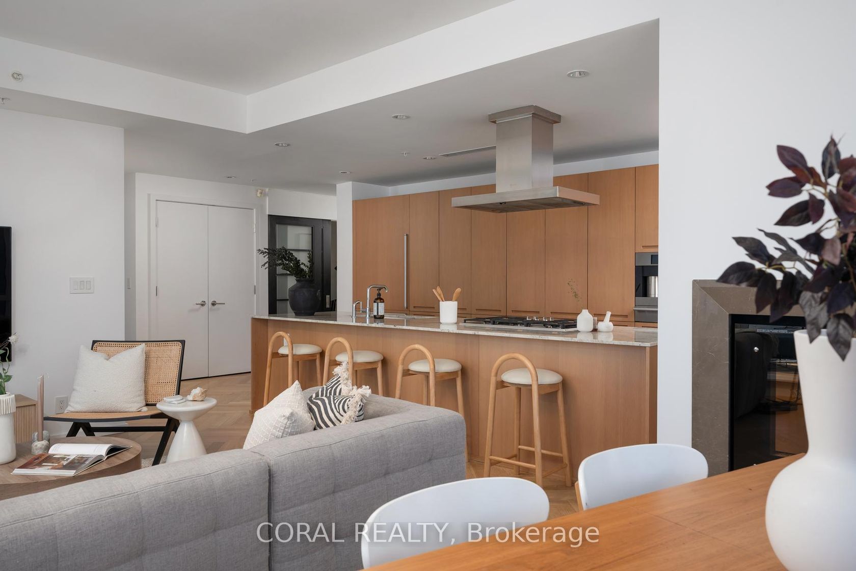 Experience elevated living in this beautifully appointed residence with sought-after NW exposure, offering abundant natural light and stunning sunset views. Freshly painted and professionally deep cleaned, this suite is truly move-in ready. Designed with refined taste, the home features elegant herringbone hardwood floors and a chef-inspired Boffi kitchen complete with an integrated Sub-Zero fridge, Miele built-in appliances, and a gas cooktop-perfect for both everyday living and entertaining. A sleek wine/beverage cooler adds an extra touch of sophistication. Unwind in luxurious Carrara marble-clad bathrooms and enjoy the convenience of custom walk-in closets in both bedrooms and hallway storage, along with a spacious walk-in closet in the primary suite. A dedicated laundry room provides added functionality and ease. Indulge in a hotel-inspired lifestyle with full-service amenities including a 24-hour concierge and doorman, spa access, and full access to the Miraj Hammam Spa (all on 5th floor). Wellness offerings include a 24-hour fitness center, yoga studio with scheduled classes, and a 20-metre indoor lap pool, hot tub, infrared sauna, and steam rooms. Enjoy in-building access to several high-end dining options, including The Lobby Lounge, Bosk Restaurant, and Mott32, along with hotel bar & lounge service and room service at your convenience.Complete with 1 parking space and 1 locker. Ace Carwash & detailing conveniently located in P1. A rare opportunity to own a sophisticated home that seamlessly blends luxury, comfort, and five-star living.