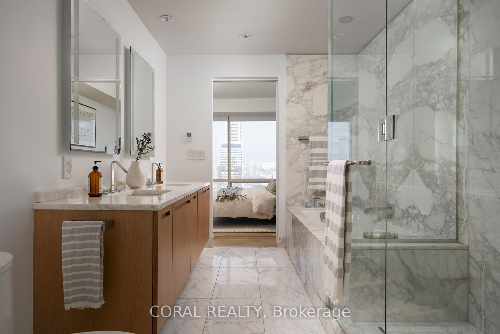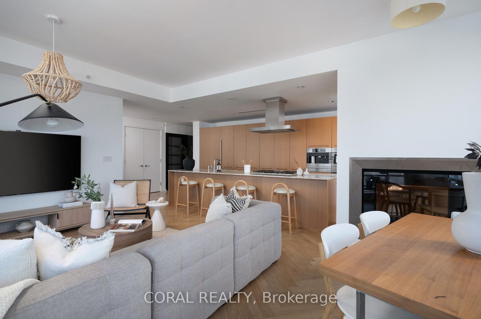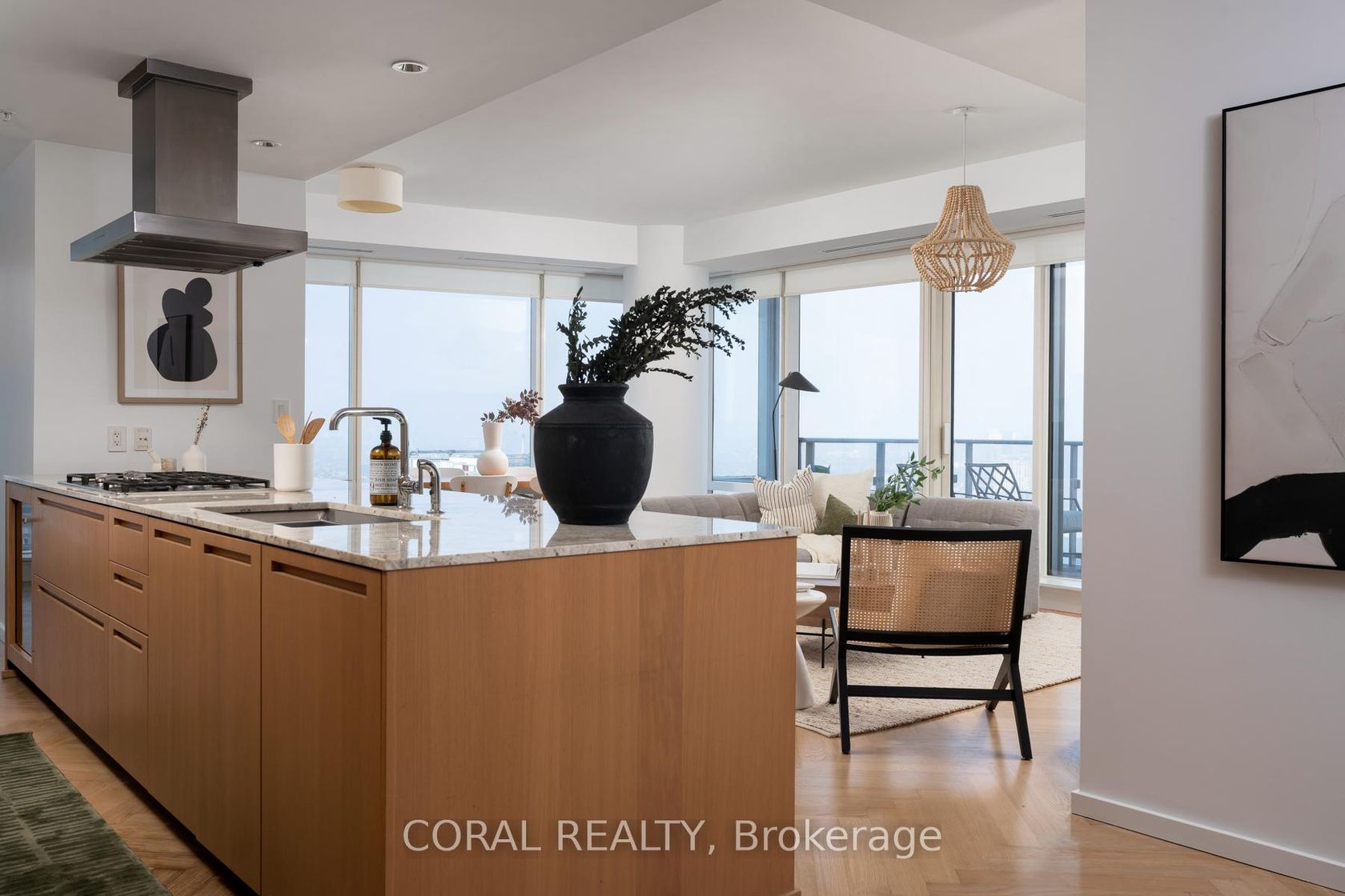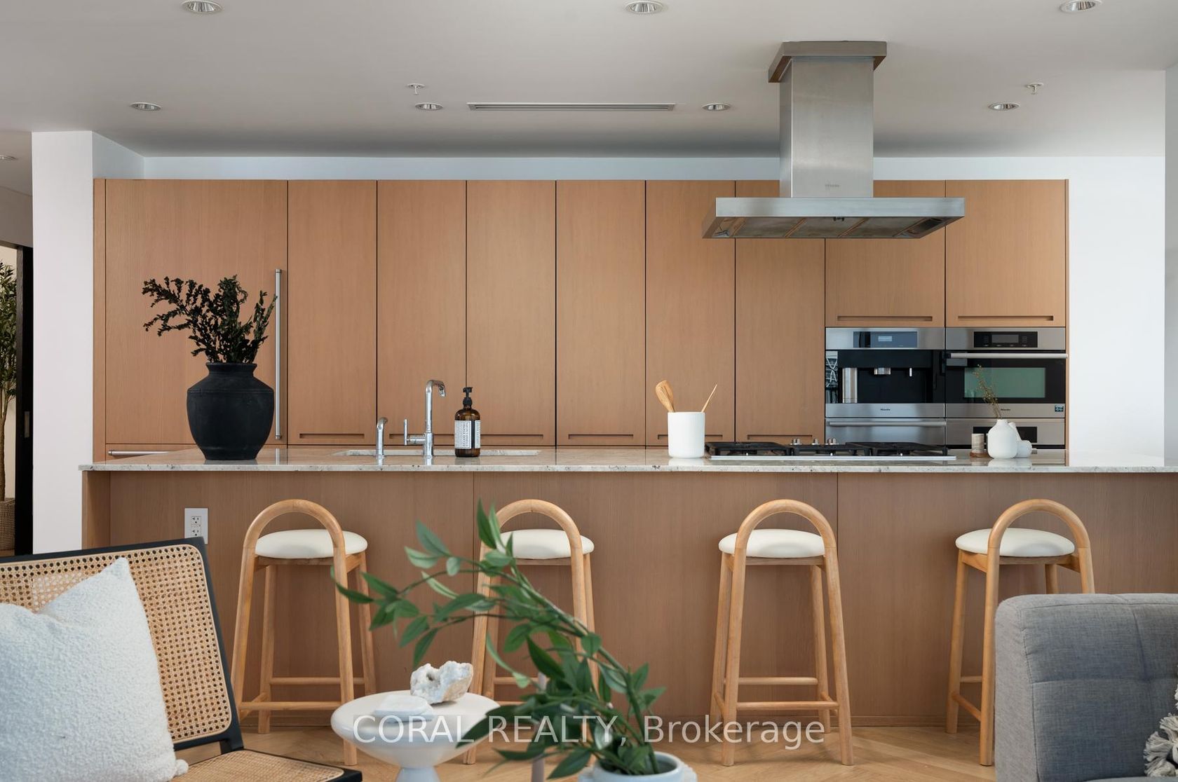 Experience elevated living in this beautifully appointed residence with sought-after NW exposure, offering abundant natural light and stunning sunset views. Freshly painted and professionally deep cleaned, this suite is truly move-in ready. Designed with refined taste, the home features elegant herringbone hardwood floors and a chef-inspired Boffi kitchen complete with an integrated Sub-Zero fridge, Miele built-in appliances, and a gas cooktop-perfect for both everyday living and entertaining. A sleek wine/beverage cooler adds an extra touch of sophistication. Unwind in luxurious Carrara marble-clad bathrooms and enjoy the convenience of custom walk-in closets in both bedrooms and hallway storage, along with a spacious walk-in closet in the primary suite. A dedicated laundry room provides added functionality and ease. Indulge in a hotel-inspired lifestyle with full-service amenities including a 24-hour concierge and doorman, spa access, and full access to the Miraj Hammam Spa (all on 5th floor). Wellness offerings include a 24-hour fitness center, yoga studio with scheduled classes, and a 20-metre indoor lap pool, hot tub, infrared sauna, and steam rooms. Enjoy in-building access to several high-end dining options, including The Lobby Lounge, Bosk Restaurant, and Mott32, along with hotel bar & lounge service and room service at your convenience.Complete with 1 parking space and 1 locker. Ace Carwash & detailing conveniently located in P1. A rare opportunity to own a sophisticated home that seamlessly blends luxury, comfort, and five-star living.