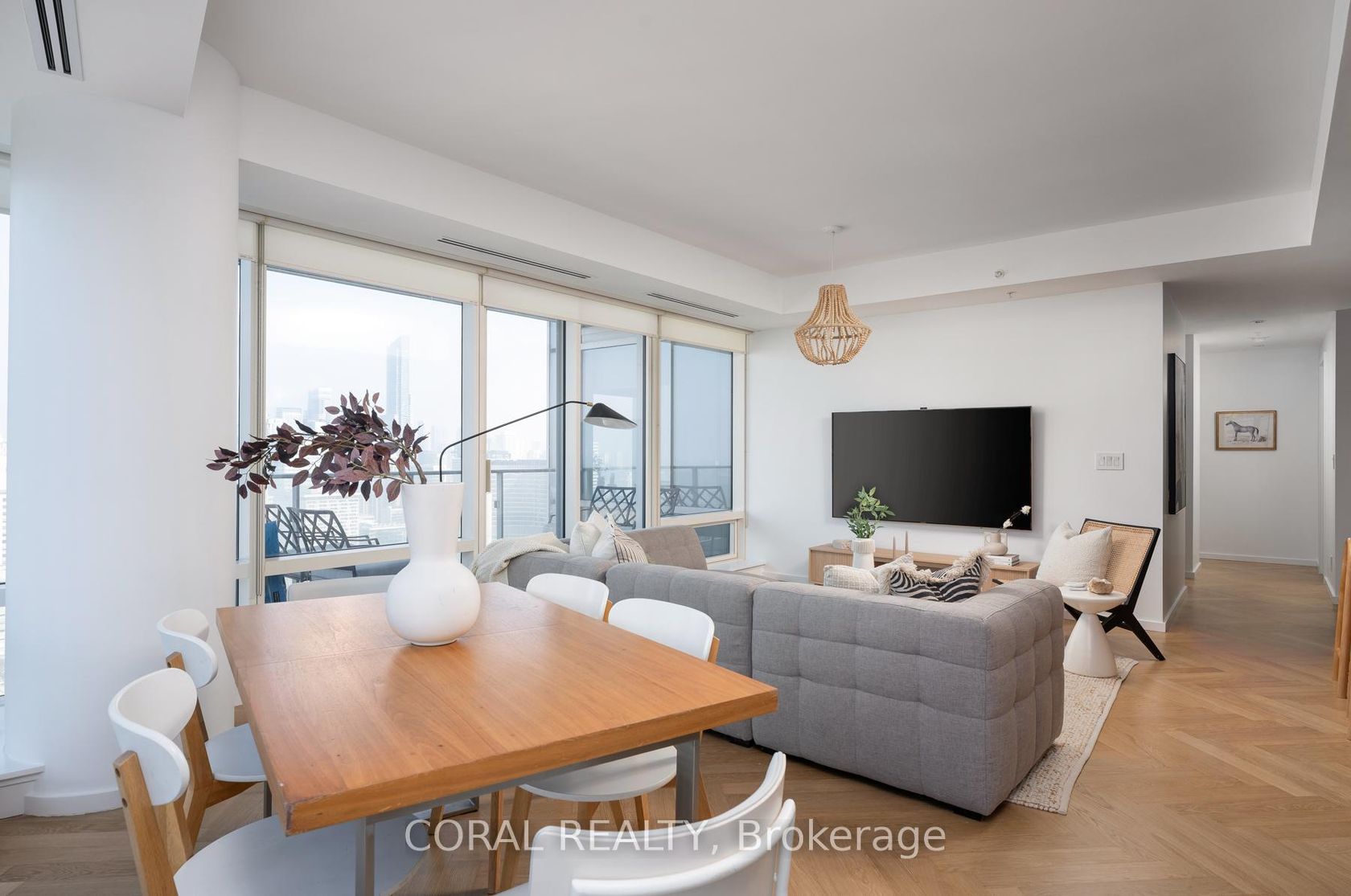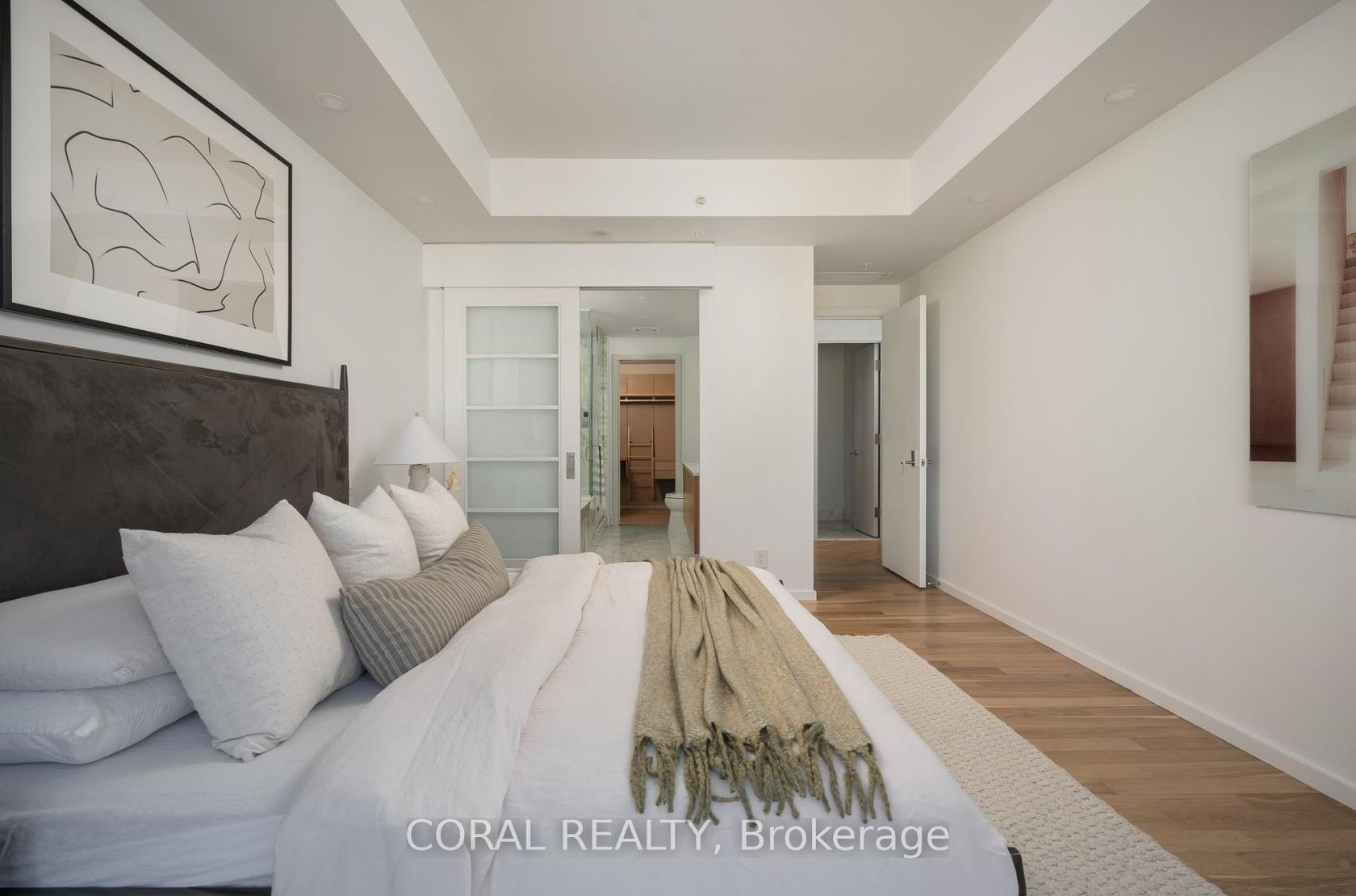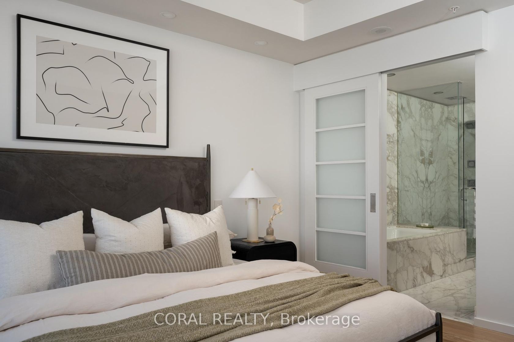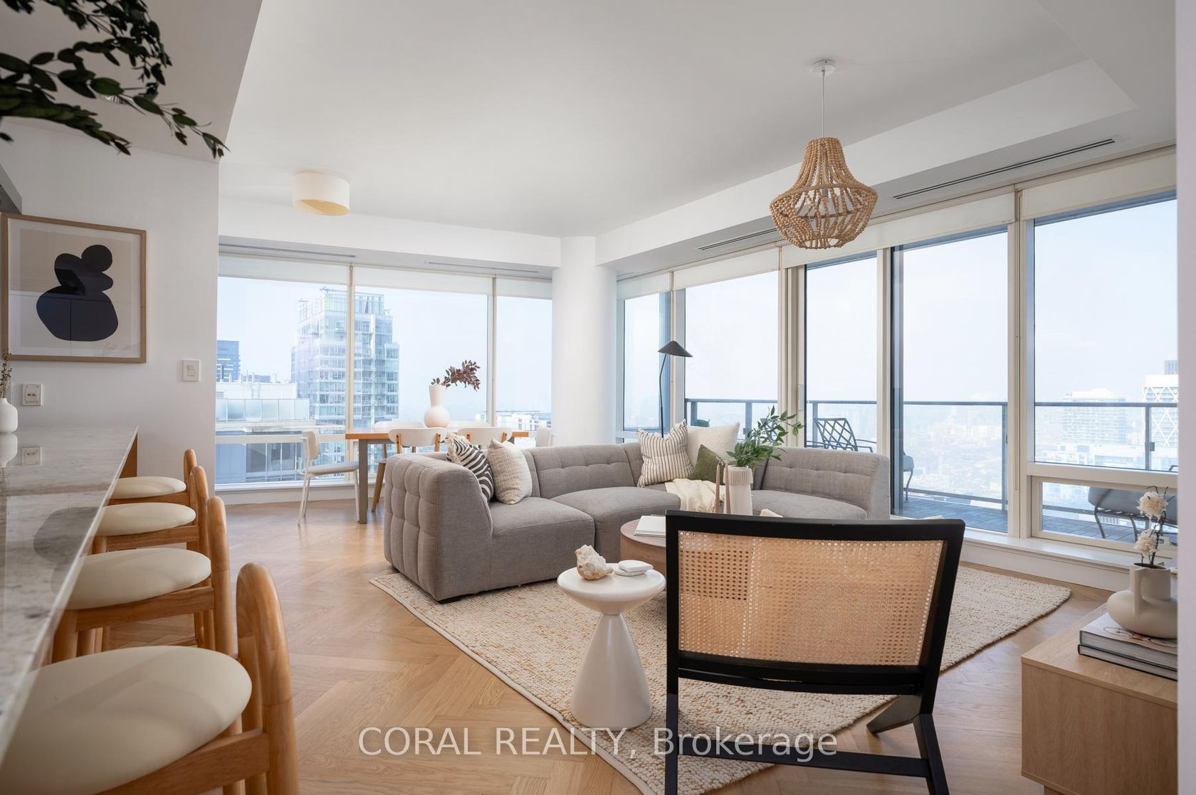 Experience elevated living in this beautifully appointed residence with sought-after NW exposure, offering abundant natural light and stunning sunset views. Freshly painted and professionally deep cleaned, this suite is truly move-in ready. Designed with refined taste, the home features elegant herringbone hardwood floors and a chef-inspired Boffi kitchen complete with an integrated Sub-Zero fridge, Miele built-in appliances, and a gas cooktop-perfect for both everyday living and entertaining. A sleek wine/beverage cooler adds an extra touch of sophistication. Unwind in luxurious Carrara marble-clad bathrooms and enjoy the convenience of custom walk-in closets in both bedrooms and hallway storage, along with a spacious walk-in closet in the primary suite. A dedicated laundry room provides added functionality and ease. Indulge in a hotel-inspired lifestyle with full-service amenities including a 24-hour concierge and doorman, spa access, and full access to the Miraj Hammam Spa (all on 5th floor). Wellness offerings include a 24-hour fitness center, yoga studio with scheduled classes, and a 20-metre indoor lap pool, hot tub, infrared sauna, and steam rooms. Enjoy in-building access to several high-end dining options, including The Lobby Lounge, Bosk Restaurant, and Mott32, along with hotel bar & lounge service and room service at your convenience.Complete with 1 parking space and 1 locker. Ace Carwash & detailing conveniently located in P1. A rare opportunity to own a sophisticated home that seamlessly blends luxury, comfort, and five-star living.