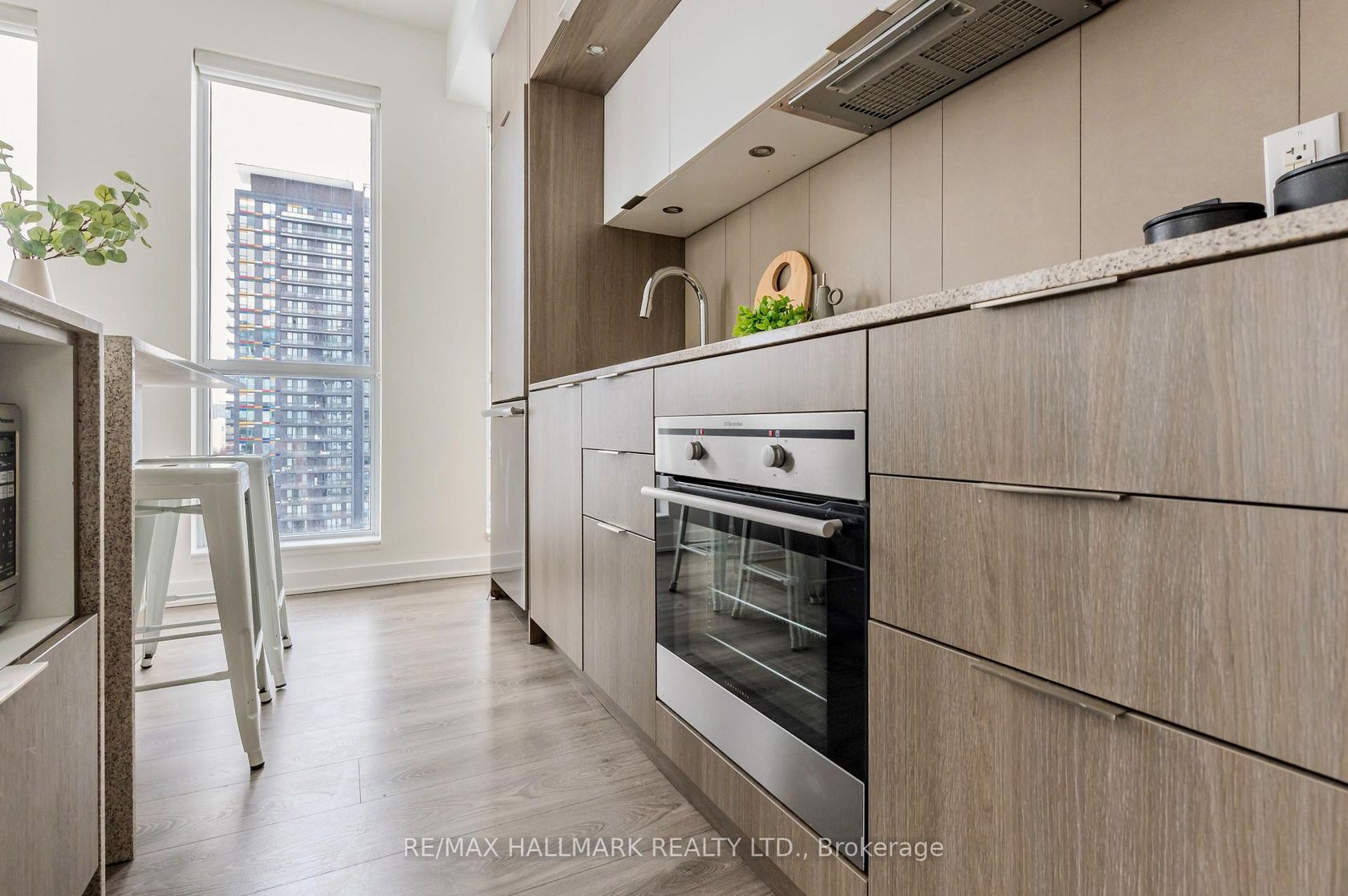 This thoughtfully designed 1 bedroom, 1 bathroom bright corner suite on the 14th floor, offers 691 sq ft plus a 59 sq ft balcony, with floor to ceiling windows that flood the space with natural light throughout the day and stunning city views. Functional open concept layout featuring a modern kitchen with island, granite countertops, stainless steel appliances, and engineered wood floors. The living and dining areas connect seamlessly, creating a comfortable space for everyday living and entertaining. Spacious bedroom, full bathroom, and a welcoming foyer with storage and coat closet add to the suite's practicality.Well maintained and move in ready with in suite stacked washer and dryer, window blinds, all existing light fixtures, one parking space, and one locker included.Located at One Park Place, residents enjoy exceptional amenities including a large fitness centre, yoga and pilates studio, squash courts, half court basketball gym, party room, billiards room, media room, rooftop terrace with BBQ areas and gardening plots, guest suites, visitor parking, bike storage, 24 hour concierge, and security.Prime Regent Park location steps to parks, cafes, community spaces, groceries, TTC, and easy access to downtown. Ideal opportunity for first time buyers, investors, or anyone seeking a bright, efficient condo in a vibrant and connected neighbourhood.Maintenance fees include water, gas for heating, building insurance, and common elements.