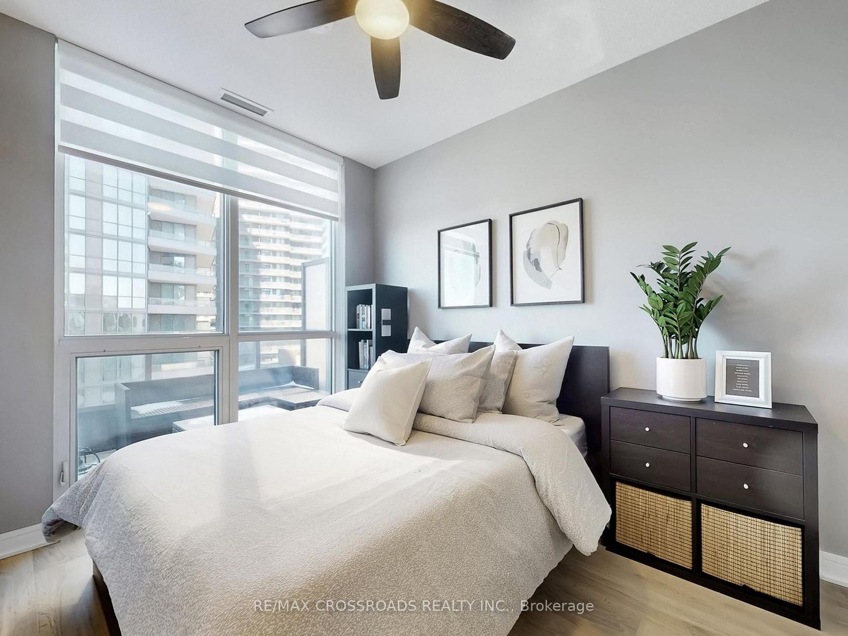 Welcome to elevated urban living in the heart of North York. This modern 2 bedroom 2 bathroom suite features a functional open concept layout with stainless steel appliances, updated blinds, and ceiling fans. The primary bedroom includes a 4 pc ensuite, large double closet, and floor to ceiling windows. Enjoy outdoor living on the 157 sqft balcony. Unbeatable location just minutes to highway 404/DVP and 401, steps Fairview Mall, shopping, restaurants, and convenient underground access to supermarket Fresco. 1 parking included.