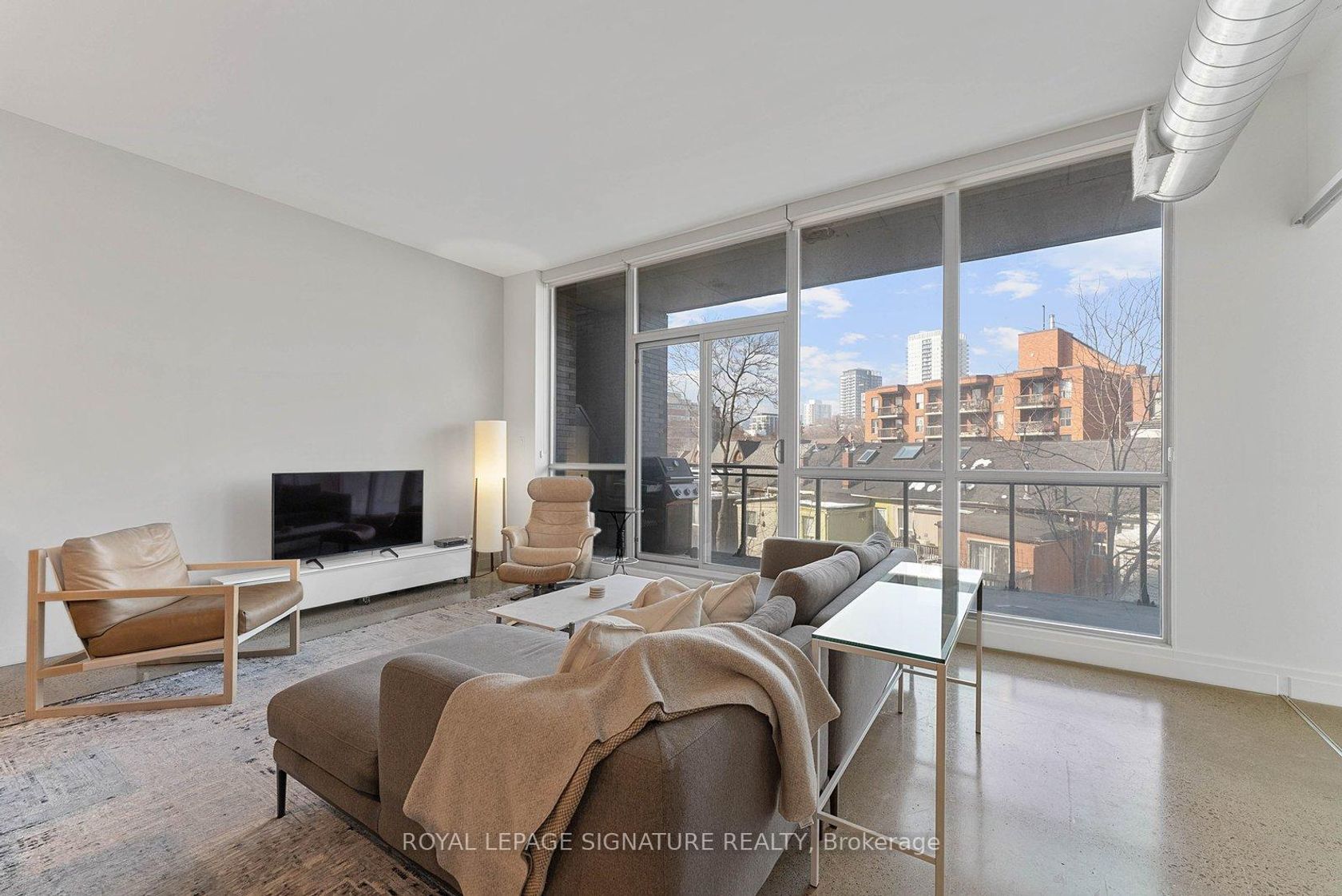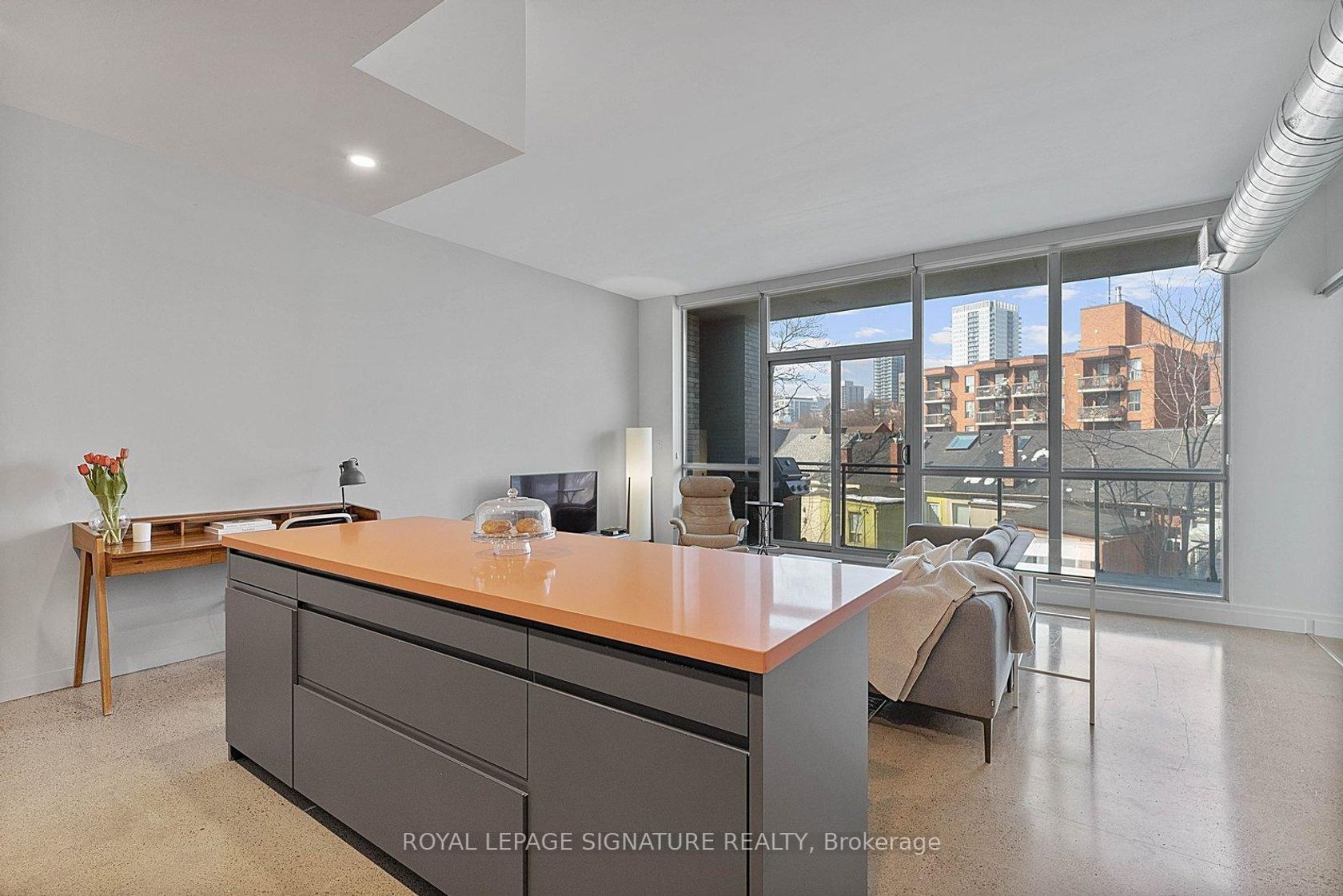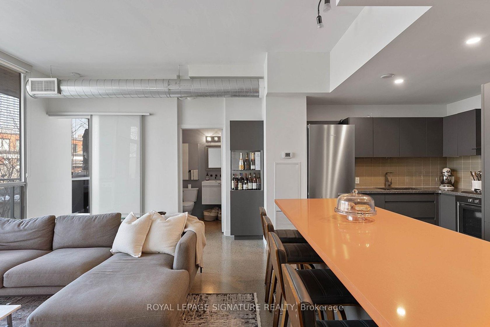 Set in historic Corktown, this modern 1-bedroom loft features 10-ft ceilings and a bright, open layout. The kitchen is finished with custom cabinetry, Miele stainless steel appliances, a backsplash, and a Ceasarstone centre island with seating and pot lights overhead. The spacious bedroom includes built-in closet organizers, while the upgraded corner unit offers a large private balcony. Steps to the Distillery District with easy access to the DVP and Gardiner for convenient commuting.