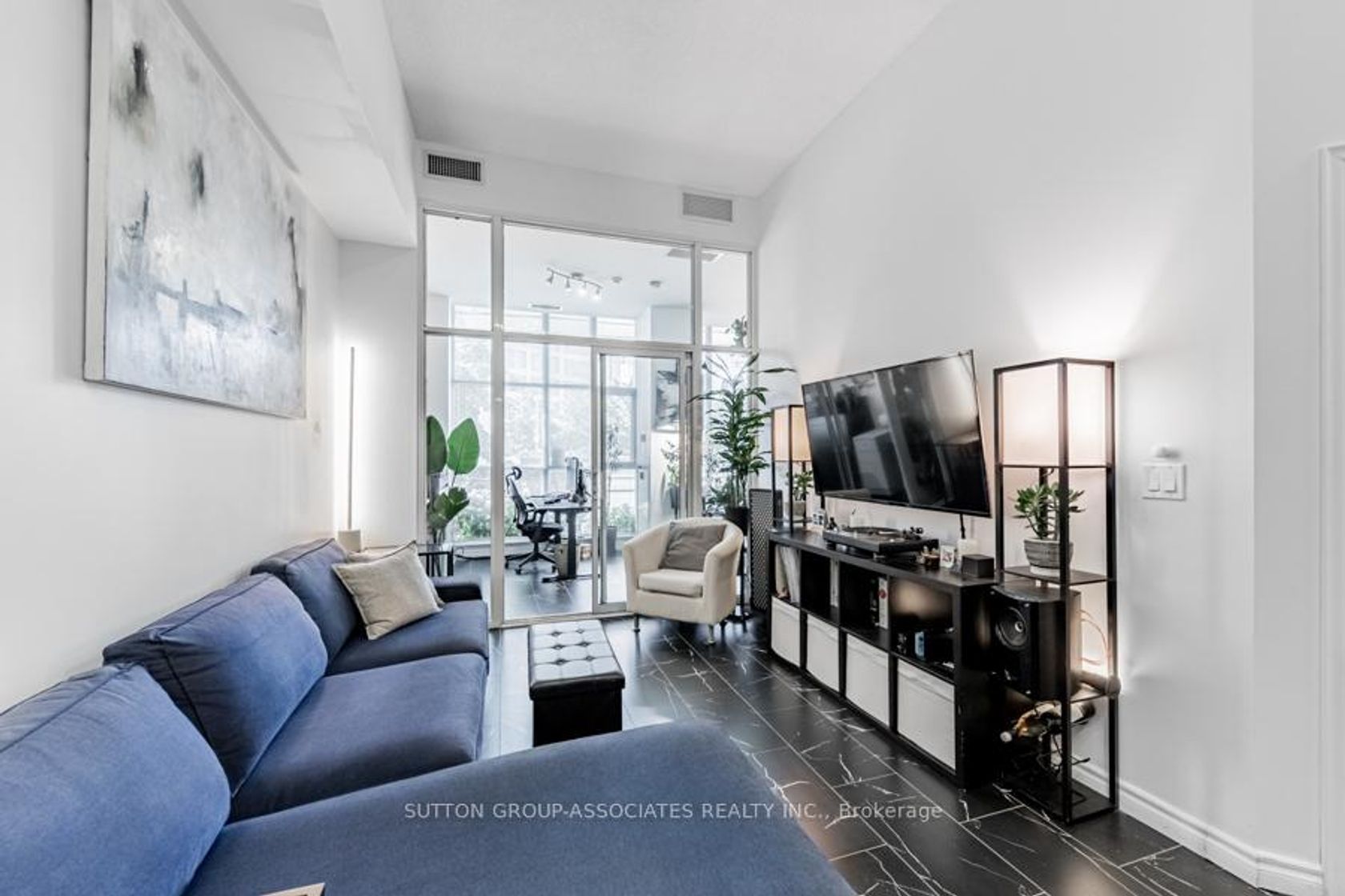 Live/work street front condominium facing Fleet Street. This unit offers easy access and excellent visibility for a business. It is dual-zoned, making it ideal for a small business or office, or as a lovely 1+1 condo unit. Welcome to West Harbour City! This rarely available south-facing unit is a charming and well-appointed 1-bedroom plus office space condo that truly feels like home. The spectacular floor plan boasts a bright and spacious open-concept layout with soaring 11-foot ceilings and two separate walk-outs, one to Fleet Street and the other to the condo building. The functional kitchen is equipped with a built-in breakfast bar and stainless steel appliances, while the front office is generously sized. The building offers excellent amenities, including an indoor pool, fitness center, sauna, rooftop patio, and more! Ideally situated in a highly desirable neighborhood in the heart of downtown Toronto, this unit is 814 sq. ft. as per the floor plan. Extras include being just steps away from the lake, Farm Boy, Loblaws, TTC, schools, shops, restaurants, parks, Harbourfront, and quick access to the highway. The unit features brand new Italian porcelain tile installed throughout recently.