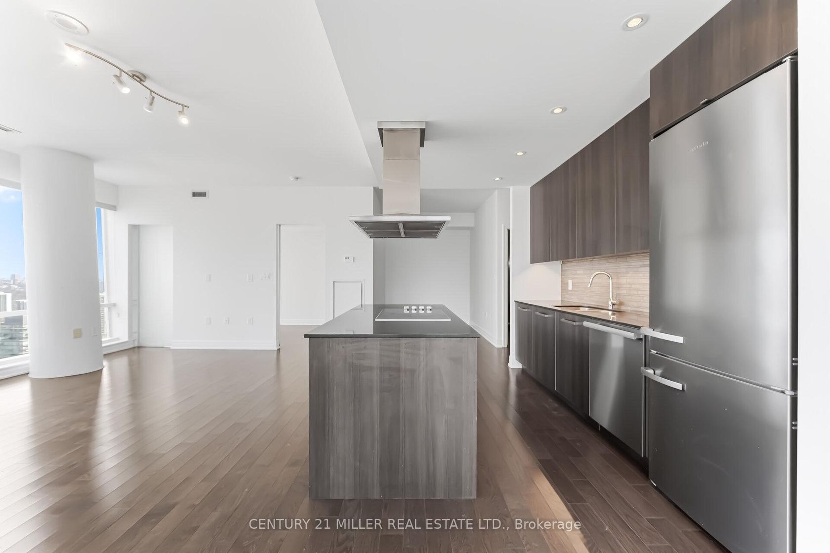 Breathtaking corner unit in the iconic L Tower , designed by world-renowned architect Daniel Libeskind ,The building is known for its iconic, slightly curved shape and its high-end, urban lifestyle in the heart of Toronto, located at 8 The Esplanade in the heart of downtown Toronto. This bright 2-bedroom + large den suite features a desirable split-bedroom layout, smooth ceilings, dark hardwood floors, and floor-to-ceiling windows with breathtaking views of the CN Tower and Lake Ontario.Modern chef's kitchen with Miele stainless steel appliances, large island, separate breakfast area, pot lights, custom closet organizers, and roller blinds throughout.Luxury building amenities include 24-hour concierge, indoor pool, spa, fitness centre, theatre room, guest suites, library, games room, rooftop garden, and visitor parking.Steps to the PATH system,Union Station , the Financial District, St. Lawrence Market ,Sony Centre for the Performing Arts (now Meridian Hall). the waterfront, restaurants, shopping, and transit. Underground parking .