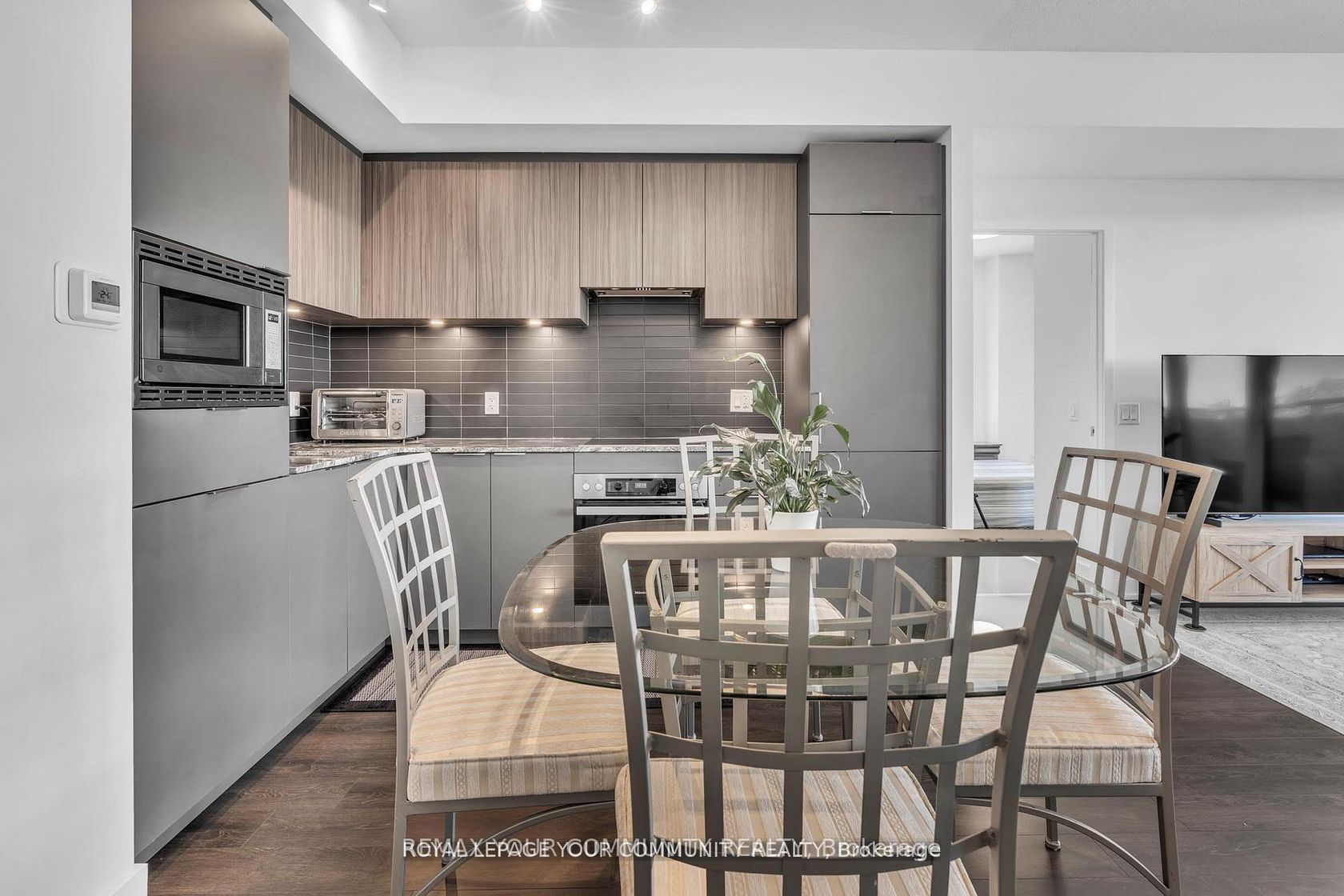 Welcome to Unit 317 at Rodeo Drive Condos, 50 O'Neil Rd, a bright northwest corner suite located in the heart of the vibrant Shops at Don Mills, one of Toronto's premier lifestyle destinations. Built by Lanterra, this sought-after residence places boutique shopping, top restaurants, cafés, and entertainment right at your doorstep. This beautifully upgraded suite features a modern kitchen equipped with premium Miele appliances (oven, cooktop, fridge & dishwasher), GE microwave, Kohler faucets, and under-cabinet pot lights, along with upgraded LED lighting throughout, top-quality zebra blinds on all windows, and his & hers rechargeable LED sensor lighting in the closets. Large northwest-facing windows fill the open-concept living space with natural light while offering pleasant city views, and the thoughtfully designed layout seamlessly connects the kitchen, dining, and living areas, creating an inviting space ideal for both everyday living and entertaining. Residents enjoy exceptional amenities including a fitness studio, indoor & outdoor swimming pools with cabanas, party lounge, and landscaped terraces. Conveniently located two bus stops from the Eglinton LRT, this home offers excellent connectivity while enjoying the walkable lifestyle of Shops at Don Mills. Includes two premium parking spaces and one locker a rare and valuable offering in the building.881 sqft of interior living and 189 balcony but in a wording you find suitsble.