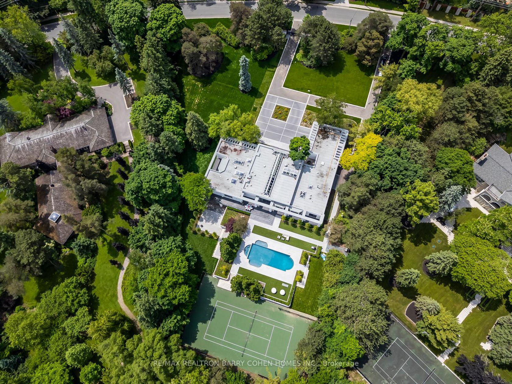 Welcome To An Exceptional Private Gated Modern Estate, Extensively And Exquisitely Remodeled And Nestled Within The Iconic Bridle Path Neighbourhood. Sprawling Across 2 Acres And Boasting A 300-Foot Wide Frontage, This LA-Style Estate Offers An Unparalleled Level Of Sophistication With Over 14,000 Square Feet Of Living Space. Designed By Award-Winning Architect Tina Barooti Of Tiarch Architecture, Recipient Of The American Canadian Property Awards. The Renovation Was Executed By HCRA-Approved General Contractor Motif Build. Renovation Included Repair Of Drywalls, Plumbing, Electrical, And Heating & Cooling Systems, Replacement Of The Old Windows And Doors With New High-Quality Windows And Doors, New Custom Cabinetry Throughout, And Significant Exterior Repairs Including The Driveway, Swimming Pool, And Tennis Court. Enjoy An Outdoor Oasis With A Private Tennis Court, A Swimming Pool, And A Jacuzzi. The Ultra-Premium Concrete, Steel, Glass, And Stone Build Is Adorned With Skylights Featuring Shades, Illuminating The Space With Natural Light And Highlighting Magnificent Architectural Embellishments. Additional Amenities Include Glass Elevators, A Theatre Room, A Fully Equipped Gym, A Spa With A Steam Room, A Bar, And A Wine Cellar. The Estate Features Engineered Hardwood Imported From Europe. Practical Luxury Meets Timeless Elegance With A Heated Driveway And Impeccable Finishes Throughout The Property.