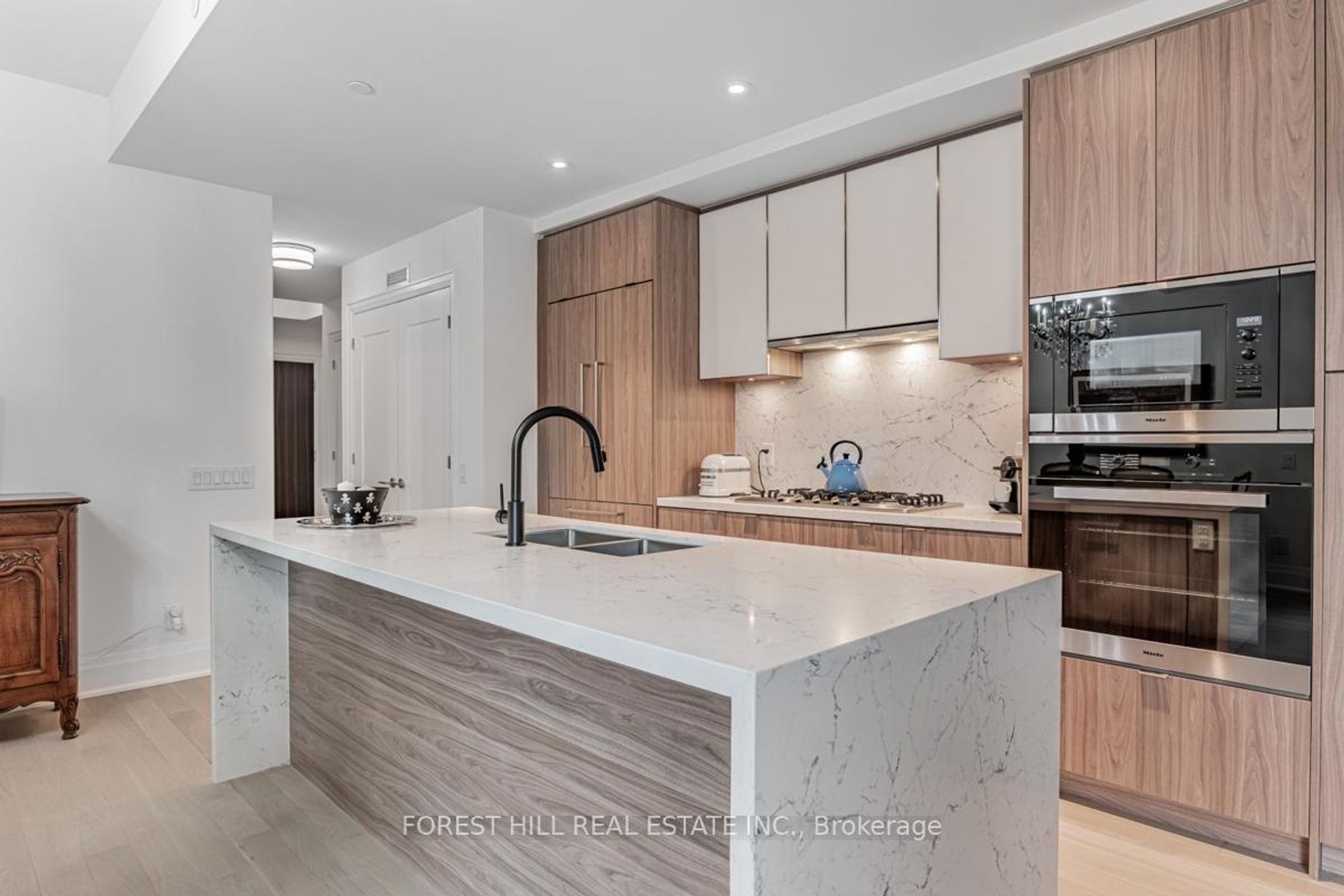 Exceptional 1172 sq.ft. suite with exquisite layout in desired striking, beautiful "Bianca" Condo by Tridel. Walk-out to tranquil terrace with gas BBQ hook-up and waterline overlooking serene lush garden with mature trees, shrubbery and hydrangeas. Upgraded suite. Kitchen with huge island with waterfall, pantry and quartz countertops. Laundry with sink; 2 ensuite bathrooms and a powder room. Primary ensuite & powder room have all marble walls, counter & floor; wired for motorized blinds in every window; all closets with California closet organizers, hardwood engineered floors, keyless locks. Resort like roof top outdoor pool & patio with BBQ area, outdoor fire side lounge. Excellent amenities include party room w/DR, fitness centre, Yoga studio. Parking & locker included. Amazing location in the Annex close to all conveniences, TTC, shops, Restaurants, easy access to U of T.