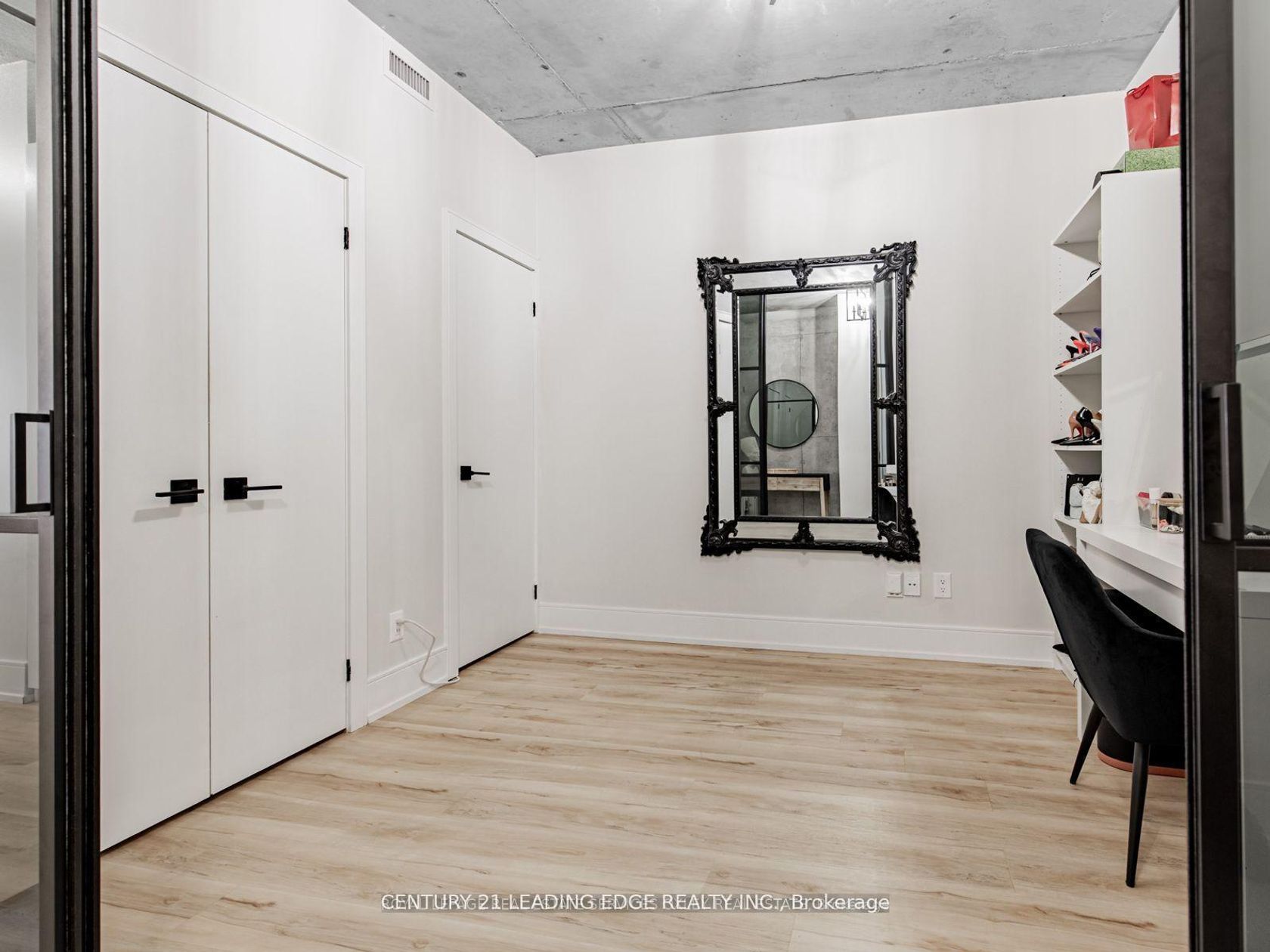 Welcome To East Lofts!This spacious and immaculate 1+1 suite offers nearly 1,000 sqft of luxury living, checking off all your boxes. Nestled in a beautiful boutique building just steps from St. Lawrence Market, this condo boasts concrete high ceilings with exposed ducts, giving it a lofty feel.The large functional second bedroom can easily serve as an office to your versatile lifestyle needs. The newly renovated and redesigned kitchen, complete with a beautiful wine cellar, ensures you will have plenty of space to cook and entertain. The primary bedroom offers a serene retreat with an ensuite bathroom and walk-in closet.